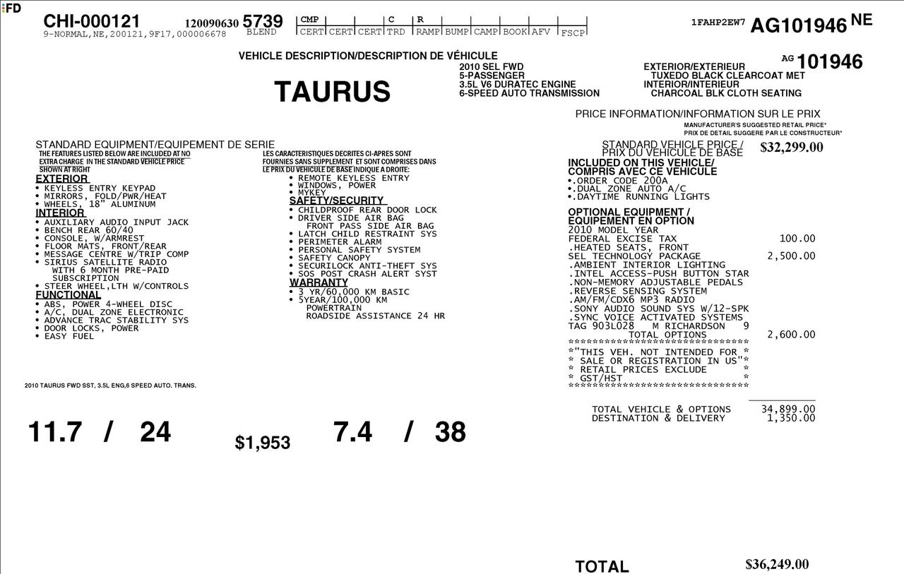 2010 Ford Taurus SEL 3.5 V6|SEL TECH PK|NO ACCIDENTS 3.5 V6|SEL TECH PK|NO ACCIDENTS 4D Sedan Duratec 3.5L V6 24V 6-Speed Automatic with Select-Shift FWD