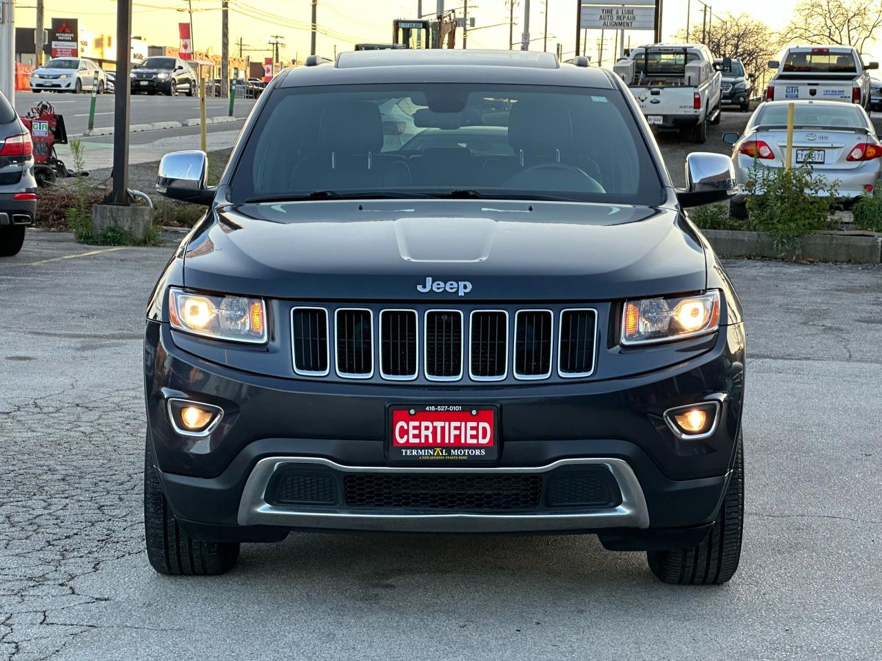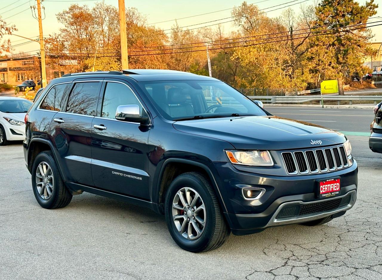 2014 JEEP GRAND CHEROKEE LIMTED EQUIPPED WITH A POTENT V6 ENGINE DELIVERING A DYNAMIC DRIVING EXPERIENCE, ALL-WHEEL DRIVE CAPABILITY TO MAINTAIN OPTIMAL TRACTION IN VARIOUS DRIVING CONDITIONS, LUXURIOUS COMFORT WITH LEATHER SEATS THAT INCLUDE HEAT AND A HEATED STEERING WHEEL, PANORAMIC SUNROOF, AND REVERSE PARKING ASSISTANCE. Â