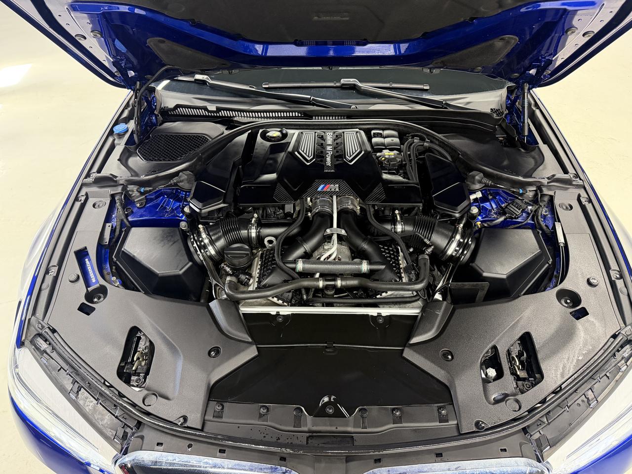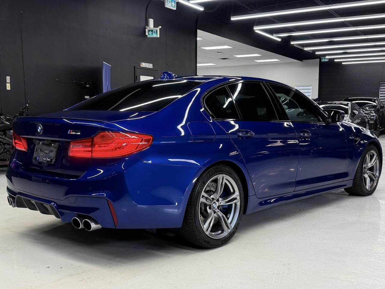 2018 BMW M5 HAS LANDED.  4.4L TWIN TURBOCHARGED V8 PRODUCING OVER 600HP AND 553LB/FT OF TORQUE.  SANTA MARINO BLUE EXTERIOR ON ARAGON BROWN INTERIOR.  FULLY LOADED WITH NAVIGATION, 360 CAMERA, 360 PARKING SENSORS, BLINDSPOT ASSIST, LANE DEPARTURE ASSIST, FRONTAL COLLISION WARNING, ACTIVE PEDESTRIAN WARNING, PARK ASSIST, ADAPTIVE CRUISE CONTROL, ADAPTIVE STEERING ASSIST, HEADSUP DISPLAY, WIRELESS APPLE CARPLAY/ANDROID AUTO, WIRELESS CHARGING PAD, SOFT CLOSING DOORS, DRIVER ATTENTION ASSIST, HAND GESTURE CONTROL, POWER REAR SUNSHADE, BMW ADAPTIVE LED HEADLIGHTS, FULL DIGITAL DASH, AUTO HOLD BRAKES, HEATED STEERING, HEATED SEATS (FRONT AND REAR), COOLED SEATS, MASSAGE SEATS, PREMIUM HARMAN KARDON SOUND SYSTEM, MULTI-COLOUR INTERIOR AMBIENT LIGHTING, EXECUTIVE PACKAGE, PREMIUM 19 INCH M WHEELS, PREMIUM POWER ADJUSTABLE BUCKET SEATS, POWER TRUNK, PUSH BUTTON START, BLUETOOTH, KEYLESS COMFORT ACCESS, INTERCHANGEABLE MXDRIVE ALL WHEEL & REAR WHEEL DRIVE SYSTEM AND MUCH MORE.