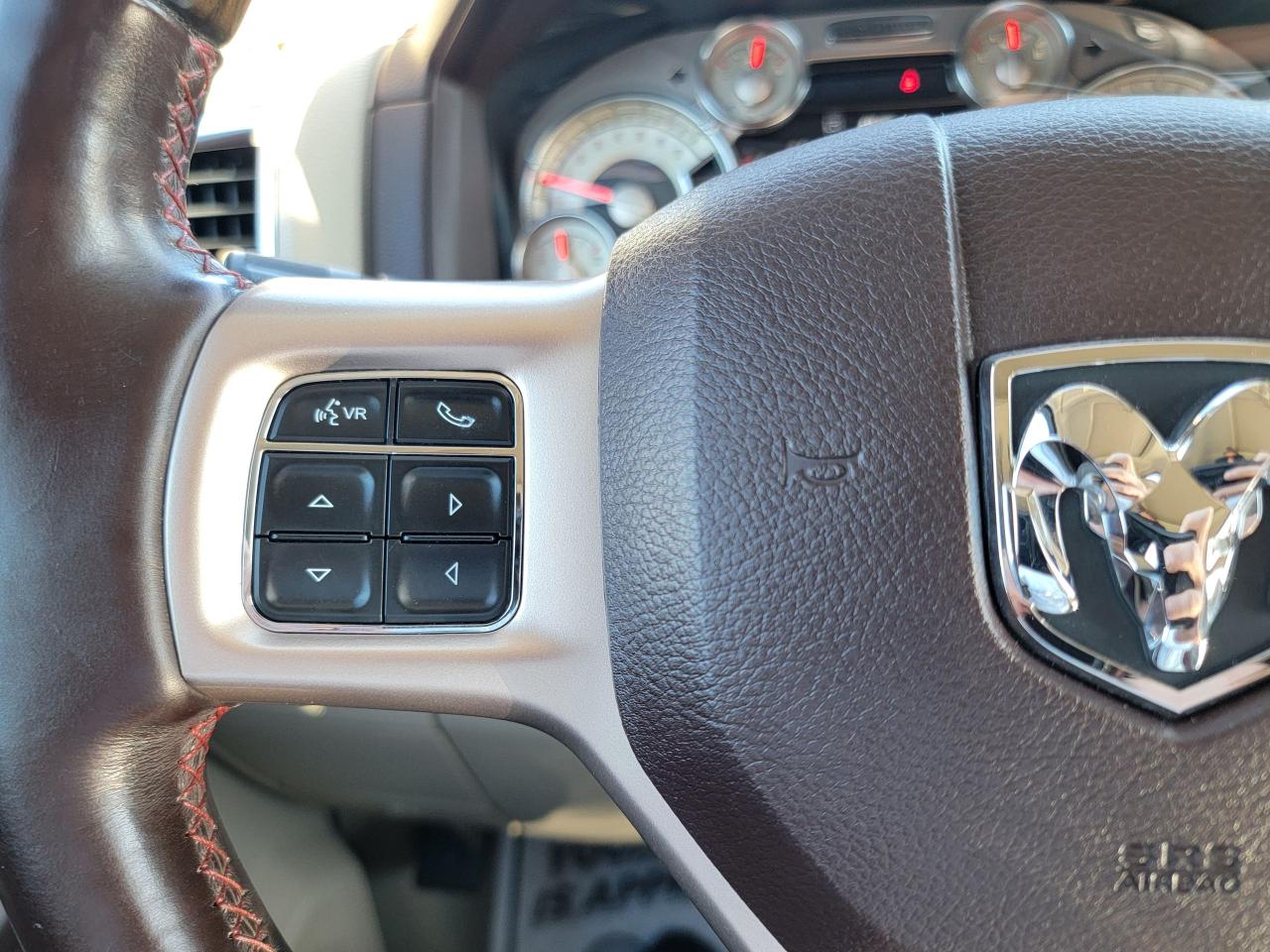 Heated, leather-wrapped steering wheel with audio and cruise controls