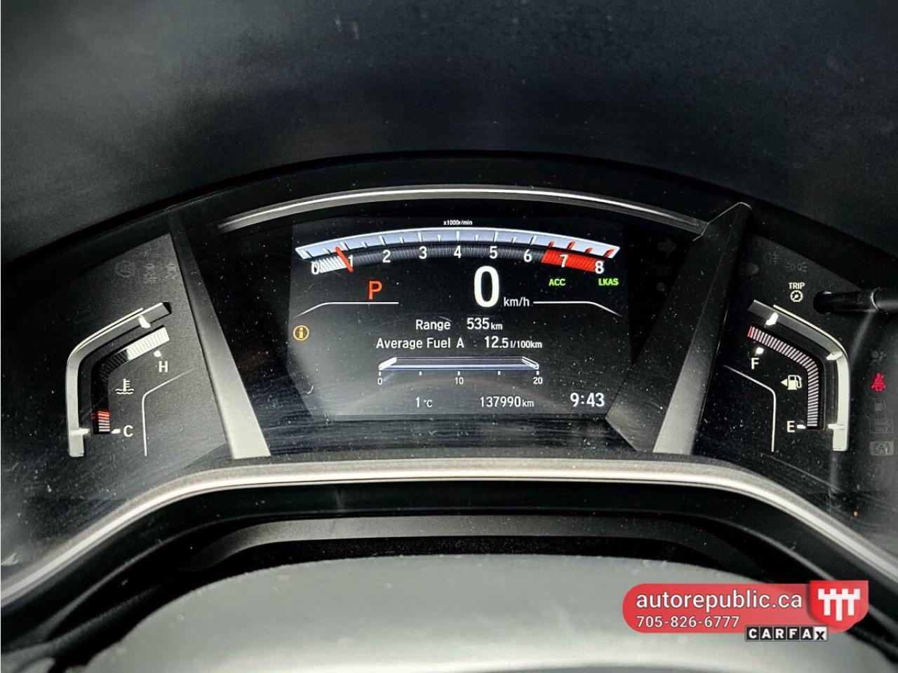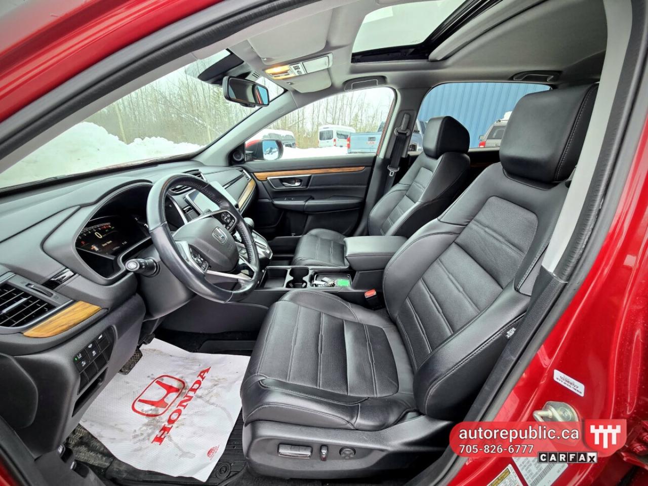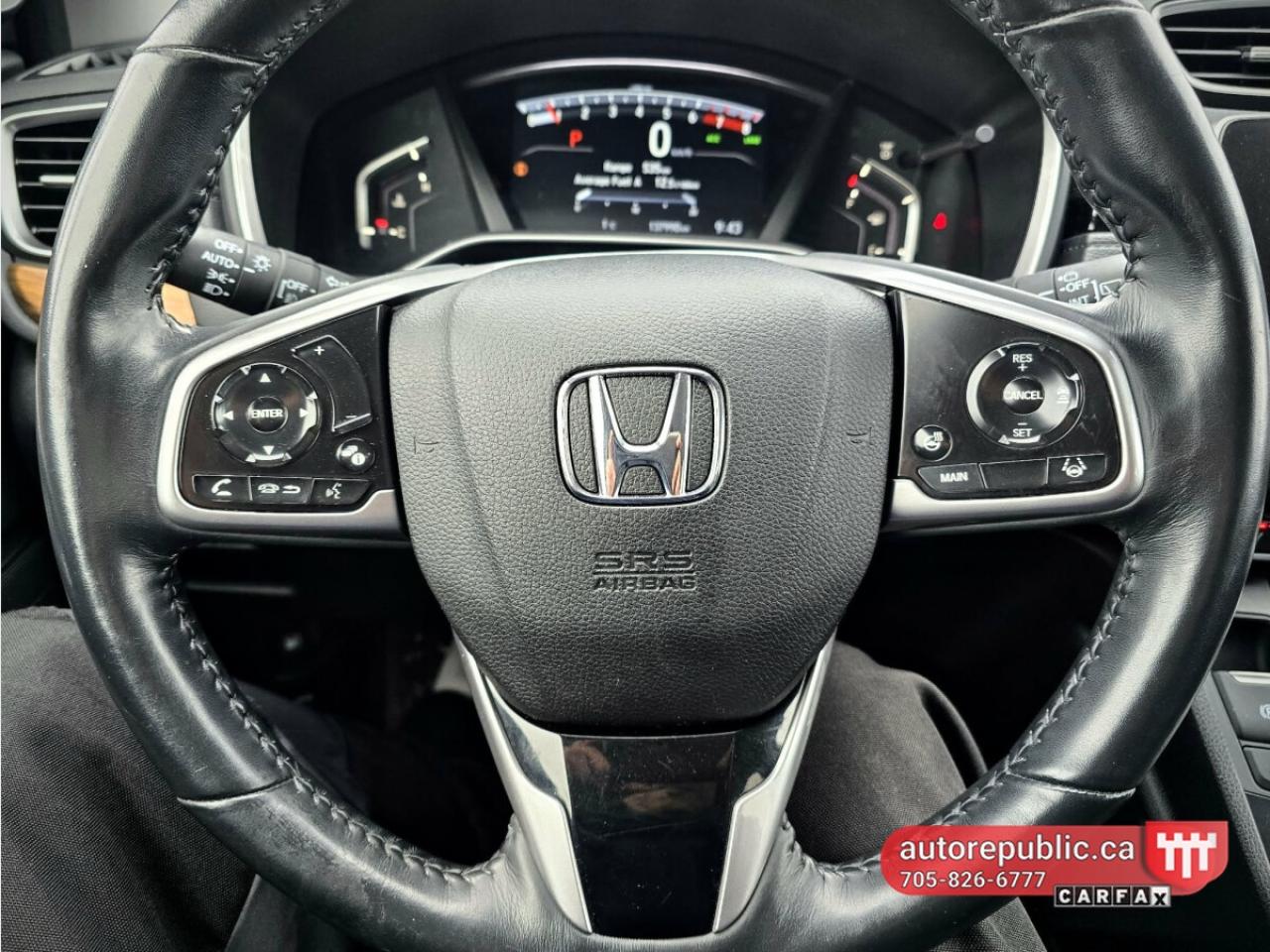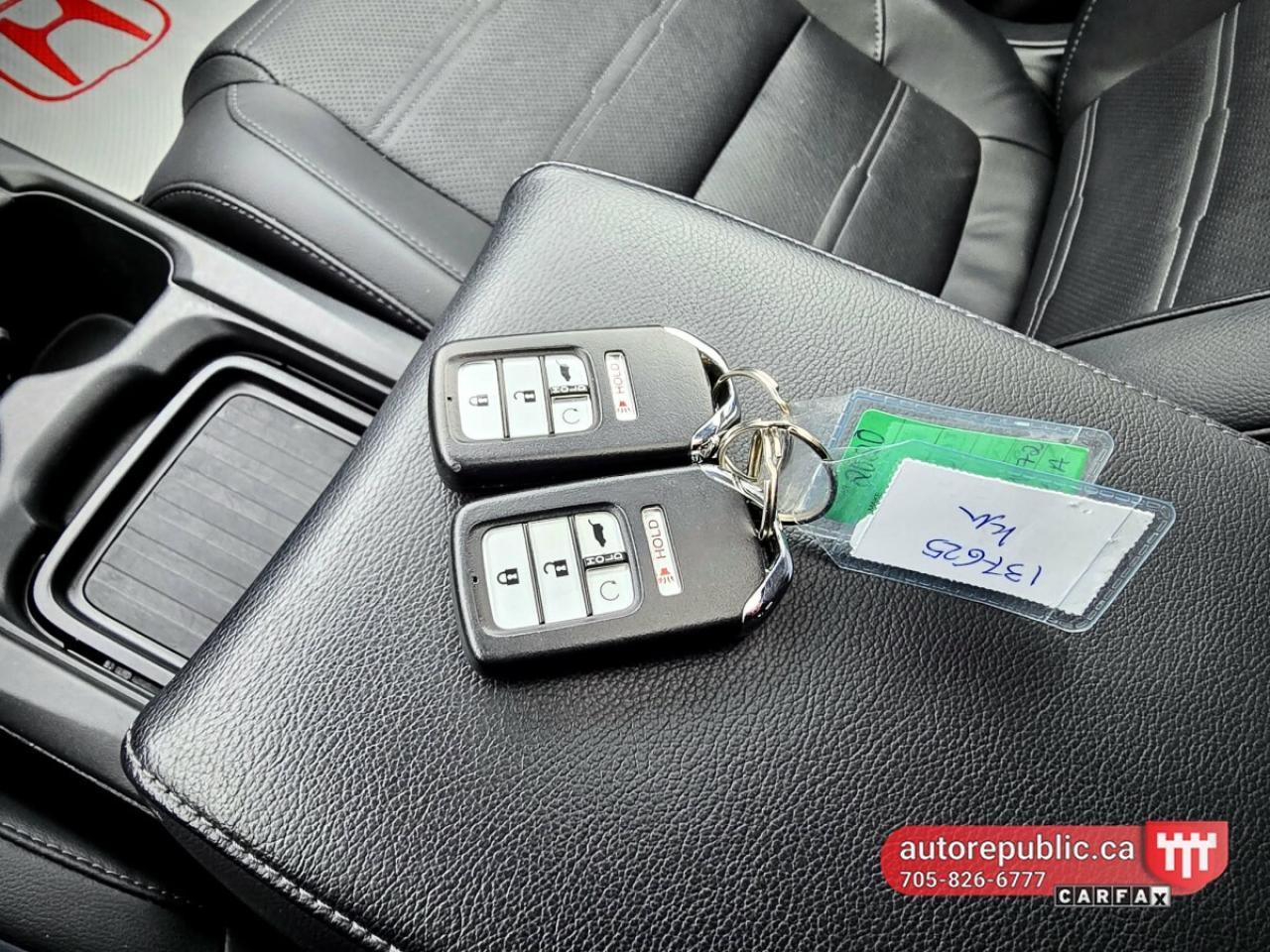 Loaded with leather seats, heated seats, power seats with memory, sunroof, remote start, power tailgate, heated steering wheel, Honda Sensing technology with blind spot assist, line assist, collision avoidance system and adaptive cruise control. Also has push to start, auto start/stop, alloy rims, fog lights, roof rails, two sets of keys, backup and side cameras, power ebrake, ECO mode, dual zone climate control.