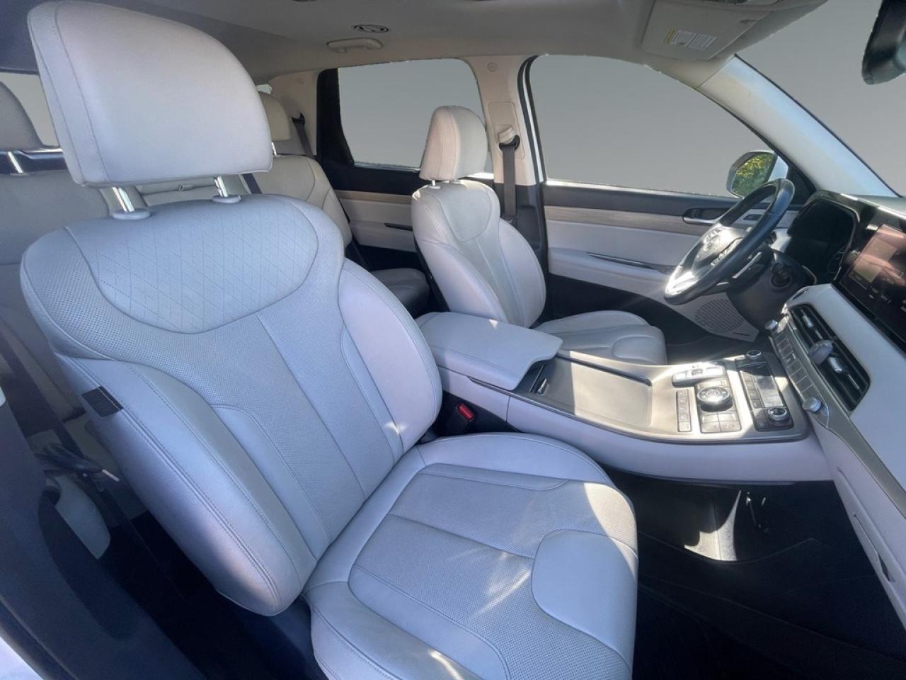 The 2020 Hyundai Palisade Luxury in white is a sophisticated AWD SUV designed to handle the diverse Canadian landscape with ease. With a 3.8L 6-cylinder engine pumping 291 horsepower at 6000 RPM, its Automatic transmission ensures a smooth and powerful drive, whether navigating city streets or country roads. On the outside, the white exterior is complemented by stylish alloy wheels, while the sunroof/moonroof adds a touch of elegance and allows you to enjoy scenic views. Step inside to experience the refined interior, where leather seats, a leather steering wheel, and leatherette door trim inserts elevate your driving experience. The spacious eight-passenger capacity ensures ample room for everyone, while heated front and rear seats and cooled front seats provide year-round comfort. Stay connected and safe with technology features such as a cutting-edge navigation system, Bluetooth connectivity, and smart device integration. A backup camera and parking sensors add a layer of security when maneuvering, while lane assist, brake assist, and adaptive cruise control offer confidence on every journey. The inclusion of a heated steering wheel and keyless entry ensures maximum convenience and ease of use. This vehicle is ideally suited for families and adventurers alike who prioritize comfort, safety, and technology in their travels. To learn more about how the 2020 Hyundai Palisade Luxury can fit into your lifestyle, contact our dealership today for more information! **ADVERTISED SALE PRICE IS BASED ON FINANCE PURCHASE**
