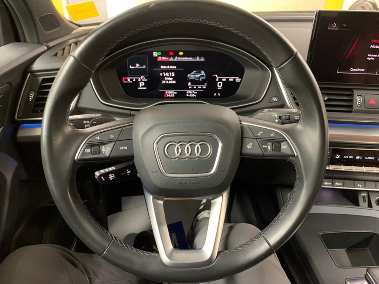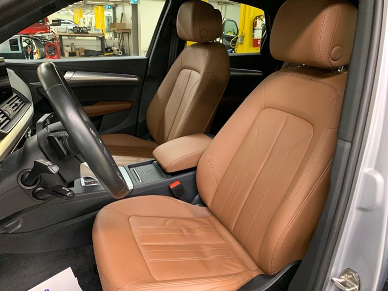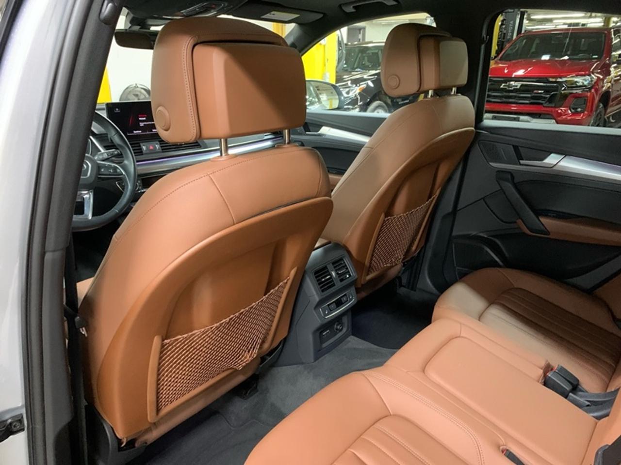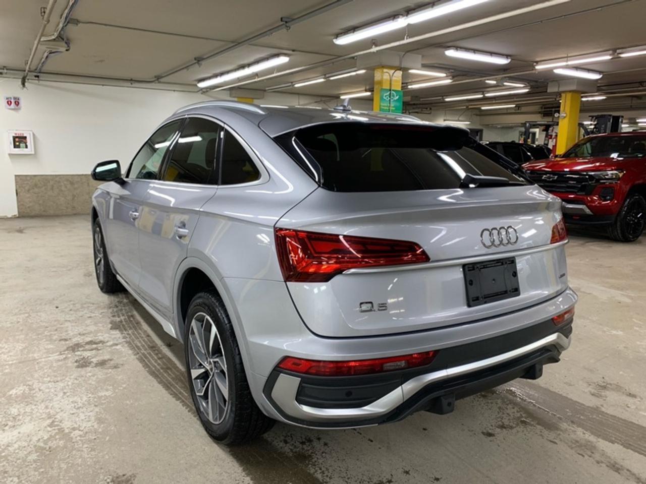 Our Q5 Sportback's trim level is Technik. This Technik trim adds a lot of luxury and tech with a heated and cooled front cupholder, lane keep assist, distance pacing with traffic stop and go, an aerial view camera, a dual row sunroof, navigation, a heated leather steering wheel, driver memory settings, aluminum interior trim, automatic high beams, and front and rear parking sensors. This SUV is more than a simple family vehicle with luxury features like heated leather bucket seats with contrast stitching, a leather steering wheel, proximity key with push button start, proximity cargo access, and voice activated LCD touchscreen infotainment with wireless Apple CarPlay. The style continues on the exterior with a dual tailpipe, aluminum alloy wheels, programmable LED lighting, fog lamps, and perimeter lights. Drive in confident safety with lane departure warning, blind spot monitor, and a back up camera. This vehicle has been upgraded with the following features: Premium Audio, Wireless Charging, Adaptive Cruise Control, 360 Camera, Sunroof, Navigation, Leather Seats.