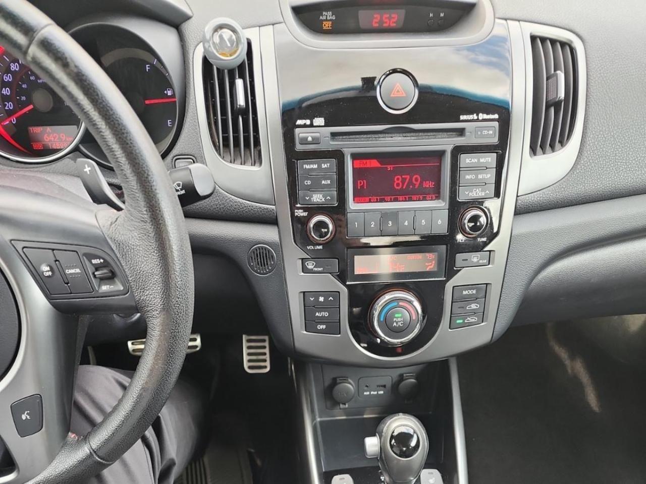 Step inside and enjoy the luxurious amenities this car has to offer. Relax in the heated leather seats while you listen to your favorite tunes through the CD player. The sunroof lets you soak up the sun, while the heated mirrors ensure visibility in any weather. With features like automatic headlights, cruise control, and power windows, this Kia Forte Koup sx Luxury offers a comfortable and enjoyable driving experience. The anti-theft system provides peace of mind, while the traction control ensures you maintain a firm grip on the road.