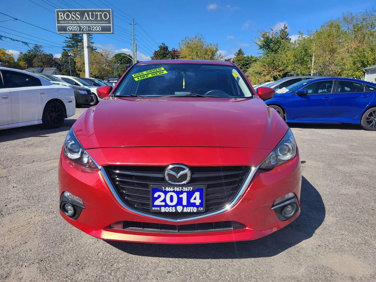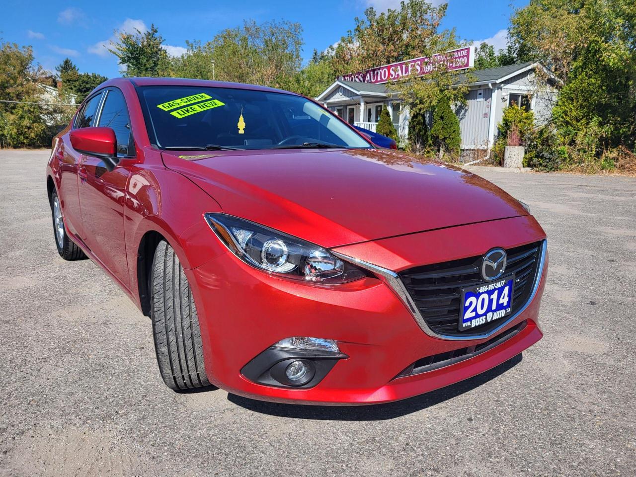 ***SITTING ON FOUR BRAND NEW ALL-SEASON TIRES AND BRAND NEW PADS AND ROTORS ALL AROUND*** BEAUTIFUL SOUL RED MAZDA3 TOURING SEDAN W/ TINTED WINDOWS AND GREAT MILEAGE, EQUIPPED W/ THE VERY FUEL EFFICIENT 4 CYLINDER 2.0L DOHC ENGINE, LOADED W/ 4 BRAND NEW ALL SEASON TIRES ON ALLOY RIMS AND BRAND NEW BREAKS ALL AROUND, POWER MOONROOF, BLUETOOTH CONNECTION, TINTED WINDOWS, HEATED SEATS, REAR-VIEW CAMERA, PUSH BUTTON START, AUTOMATIC HEADLIGHTS, KEYLESS ENTRY, AIR CONDITIONING, CRUISE CONTROL, POWER LOCKS, WINDOWS AND MIRRORS, WARRANTY AND MORE! This vehicle comes certified with all-in pricing excluding HST tax and licensing. Also included is a complimentary 36 days complete coverage safety and powertrain warranty, and one year limited powertrain warranty. Please visit our website at bossauto.ca today!