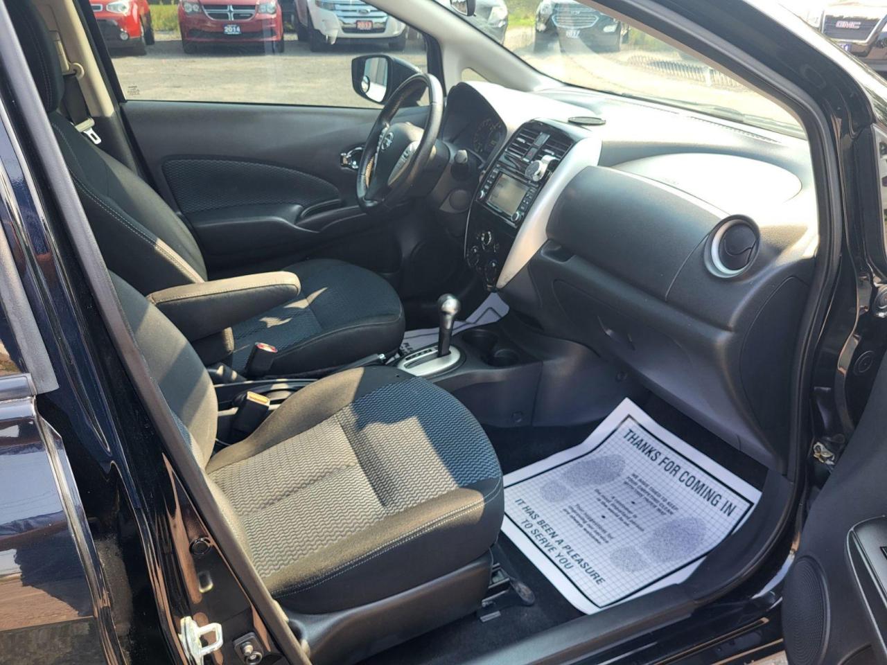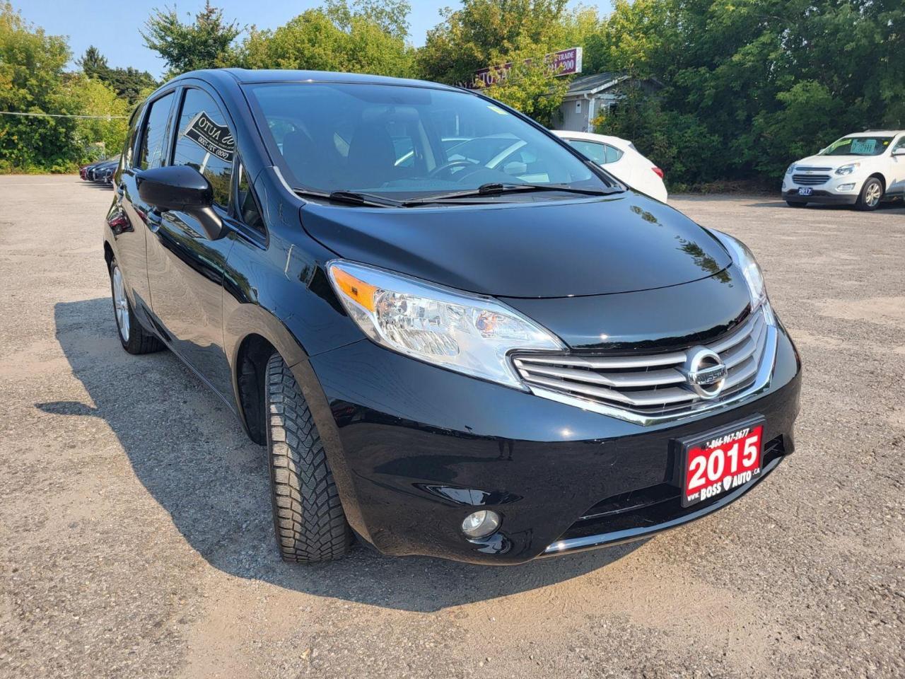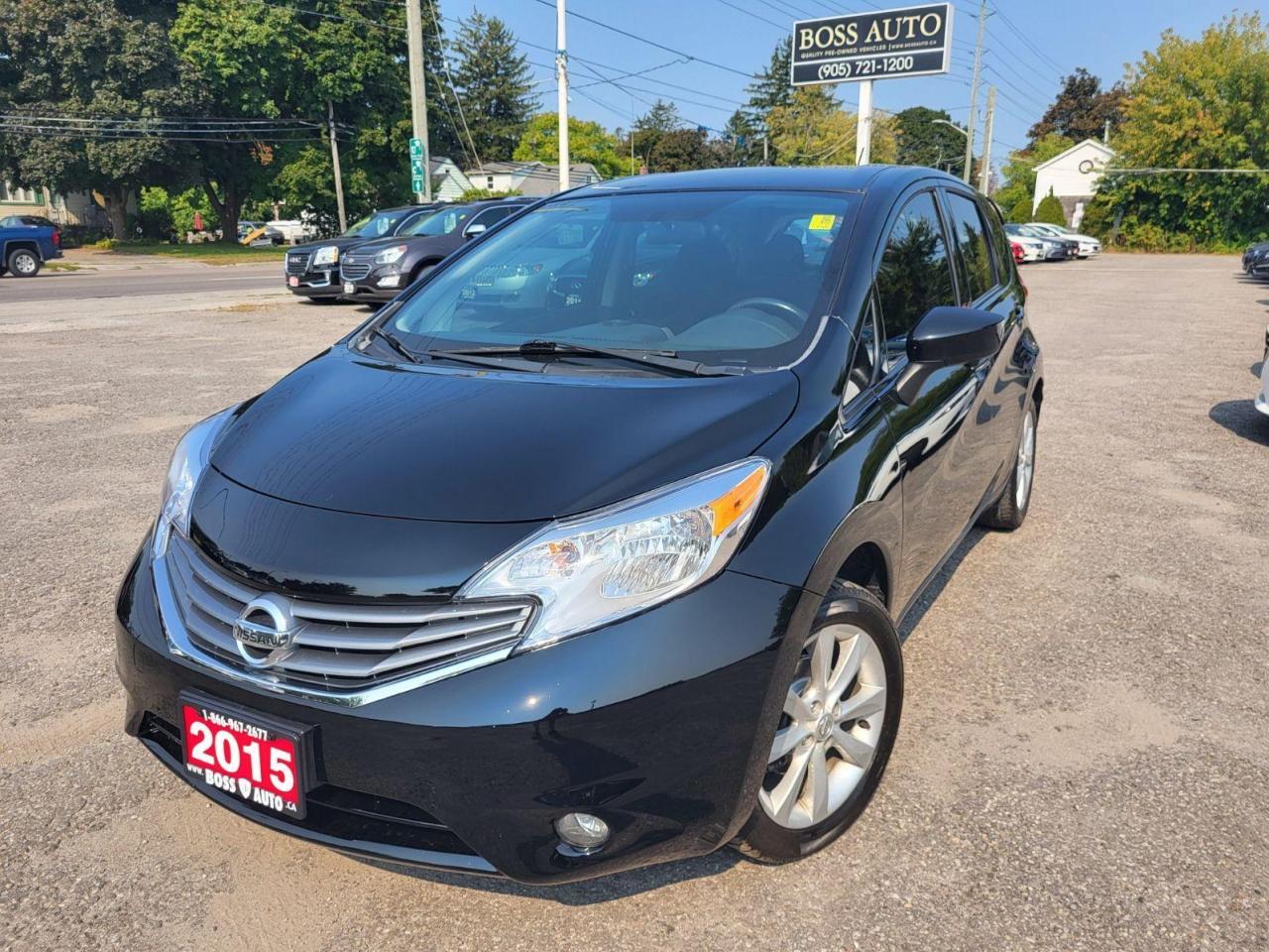 EXCELLENT DRIVING BLACK ON BLACK NISSAN HATCHBACK W/ GREAT MILEAGE, EQUIPPED W/ THE SUPER FUEL EFFICIENT 4 CYLINDER 1.6L DOHC ENGINE, LOADED W/ GPS NAVIGATION, POWER LOCKS/WINDOWS AND MIRRORS, PANORAMIC PARK ASSIST CAMERA, HEATED SEATS, AIR CONDITIONING, KEYLESS/PROXIMITY ENTRY, BLUETOOTH CONNECTION, PUSH BUTTON START, AM/FM/XM/CD/AUX RADIO, WARRANTY AND MORE! This vehicle comes certified with all-in pricing excluding HST tax and licensing. Also included is a complimentary 36 days complete coverage safety and powertrain warranty, and one year limited powertrain warranty. Please visit our website at www.bossauto.ca today!