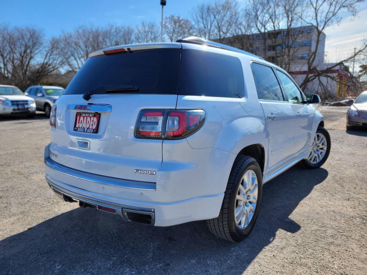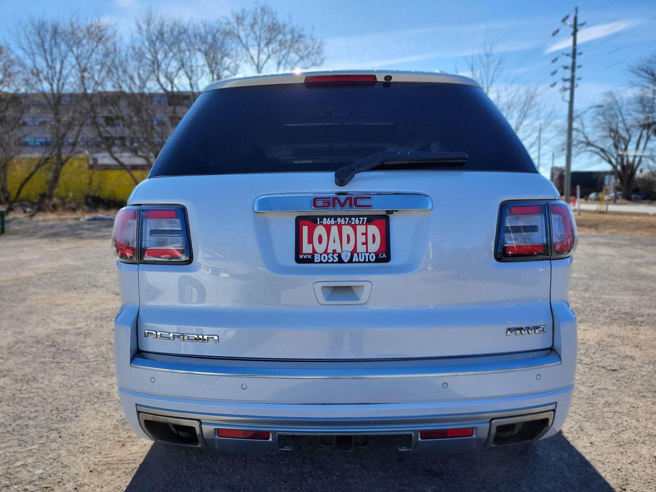 ***DENALI EDITION***FULLY LOADED SUPER SHARP WHITE PEARL ON BLACK SEVEN PASSENGER GMC SPORTS-UTILITY VEHICLE W/ THIRD ROW SEATING W/ GREAT MILEAGE, EQUIPPED W/ THE EVER RELIABLE 6 CYLINDER 3.6L VVT ENGINE, LOADED W/ THE LUXURIOUS DENALI AWD TRIM PACKAGE, POWER LIFTGATE, REAR-VIEW CAMERA, ON-STAR ASSIST, BLIND SIDE MONITORING SYSTEM, LANE DEPARTURE ASSIST, COLLISION WARNING SYSTEM, UPGRADED BOSE PREMIUM SOUND SYSTEM, LEATHER/POWER/HEATED/COOLED SEATS, DUAL POWER MOONROOF, GPS NAVIGATION, FACTORY REMOTE CAR START, MULTI-ZONE TEMPERATURE CONTROL, TINTED WINDOWS, HEATED/POWER SIDE VIEW MIRRORS, BLUETOOTH CONNECTION, CRUISE CONTROL, KEYLESS ENTRY, POWER LOCKS/WINDOWS, AIR CONDITIONING, WARRANTY AND MUCH MORE! This vehicle comes certified with all-in pricing excluding HST tax and licensing. Also included is a complimentary 36 days complete coverage safety. Please visit www.bossauto.ca for more details!