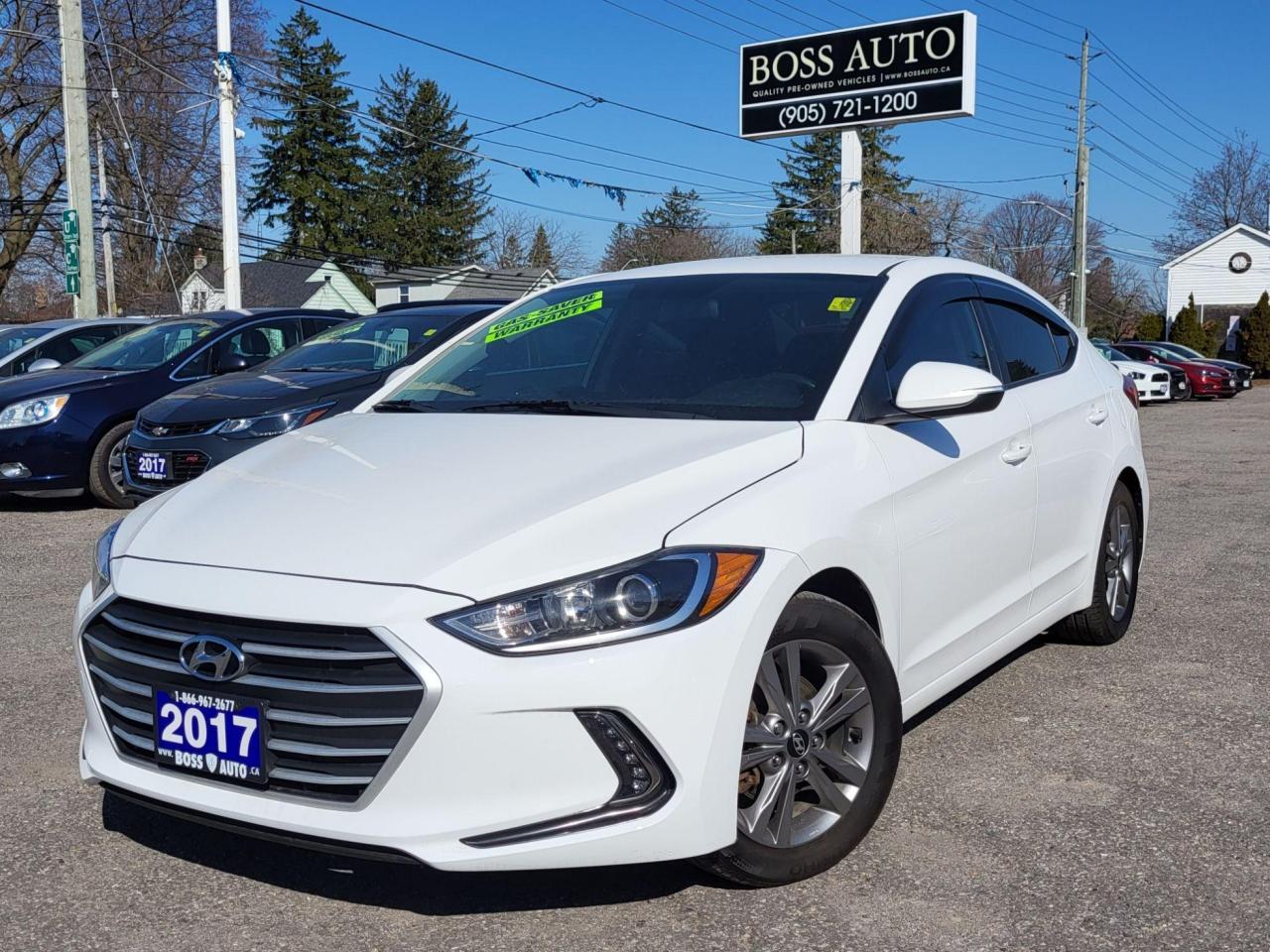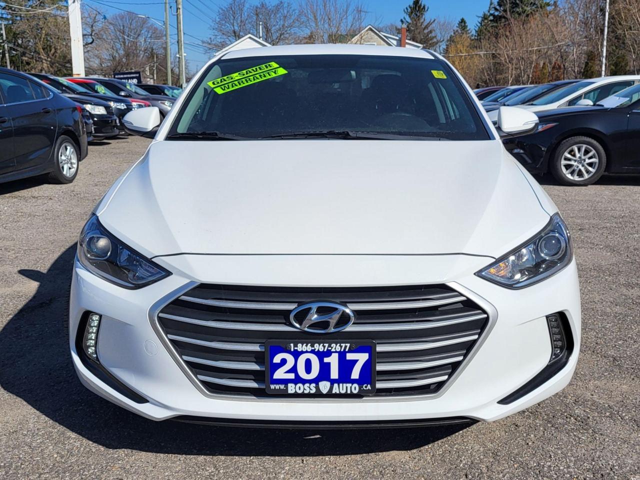 SUPER SHARP POLAR WHITE ON BLACK HYUNDAI SEDAN IN EXCELLENT CONDITION, EQUIPPED W/ THE EVER RELIABLE ECO FRIENDLY 4 CYLINDER 2.0L DOHC ENGINE, LOADED W/ HEATED SEATS, BLUETOOTH CONNECTION, APPLE AND ANDROID CAR PLAY, TINTED WINDOW W/ WEATHER KIT, REAR-VIEW CAMERA, HEATED STEERING WHEEL, KEYLESS ENTRY, POWER LOCKS/WINDOWS AND MIRRORS, BLIND SIDE MONITORING SYSTEM, AIR CONDITIONING, CRUISE CONTROL, AUTOMATIC HEADLIGHTS, AUX AND USB INPUT, CD/AM/FM/XM RADIO, CERTIFIED W/ WARRANTIES AND MORE! This vehicle comes certified with all-in pricing excluding HST tax and licensing. Also included is a complimentary 36 days complete coverage safety and powertrain warranty, and one year limited powertrain warranty. Please visit our website at bossauto.ca today!
