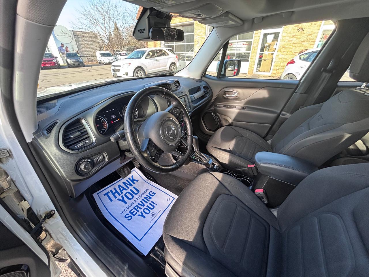 Looking for adventure? This 2017 Jeep Renegade 4WD at R.E.R. Automobiles Ltd. is ready to take you there. This compact SUV, boasting a striking white exterior and a sleek black interior, is the perfect blend of rugged capability and city-friendly practicality. With 173,900km on the odometer, this Renegade has proven its reliability and is eager for its next chapter with you. Its 2.4L 4-cylinder engine and automatic transmission offer a smooth and efficient driving experience, while the four-wheel-drive system ensures you can confidently tackle any road condition.