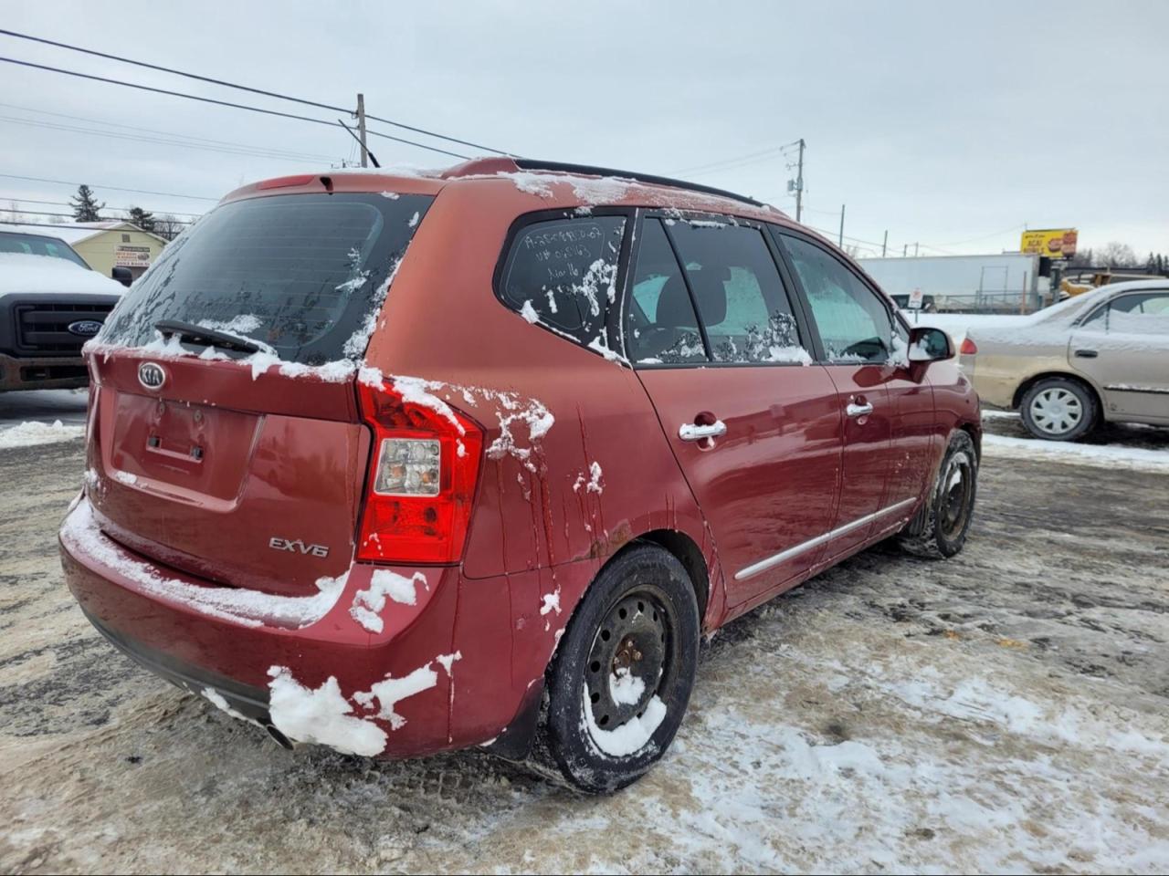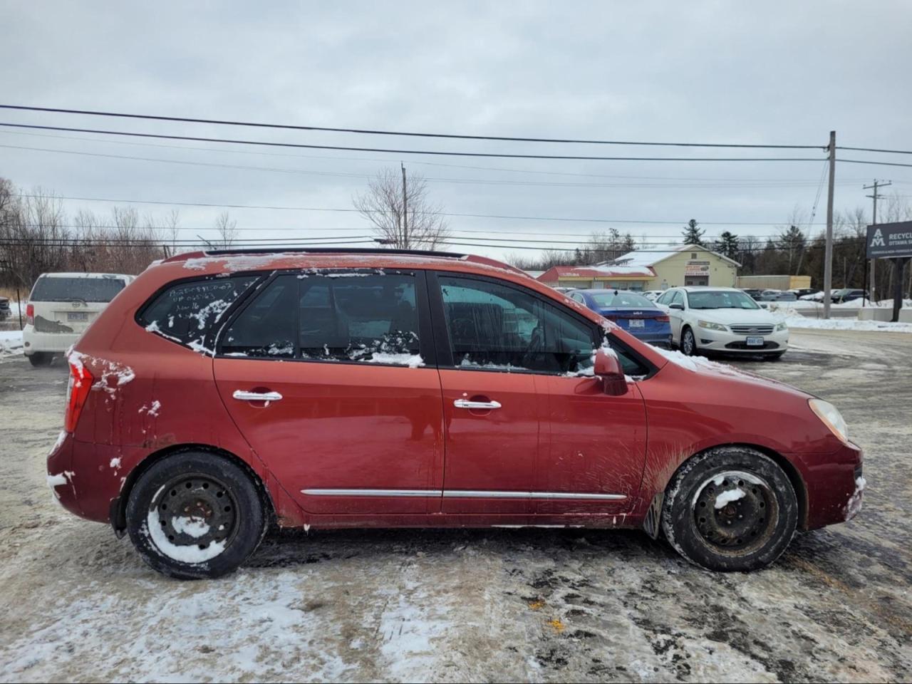2007 Kia Rondo in Volcanic Red.The vehicle has 132,342km. Runs and drives ok. The body is in fair shape for the age. Some rust spots found mainly on the rockers and other parts of the car. No check engine light. Slight vibrations felt in the cabin. The rear suspension/rotors needs some work. We don't perform any mechanical/safety inspections. The vehicle is sold as is and might need some work.