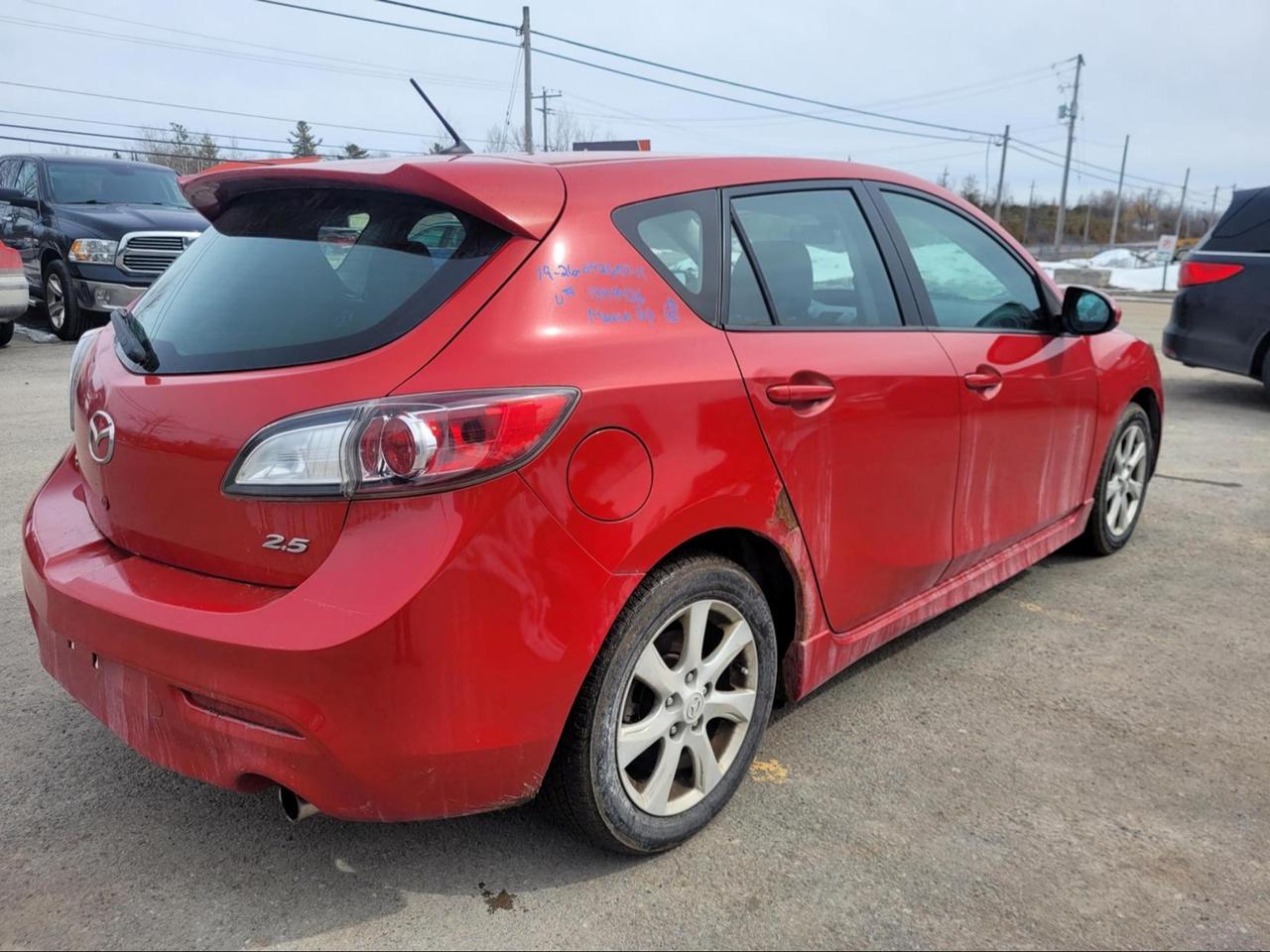 2011 Mazda 3 in Red. The vehicle has 275,236km. The vehicle runs and drives ok. No check engine light. The Rear brake needs to be inspected. We don't perform any mechanical/safety inspections. The vehicle is sold as is and might need some work.