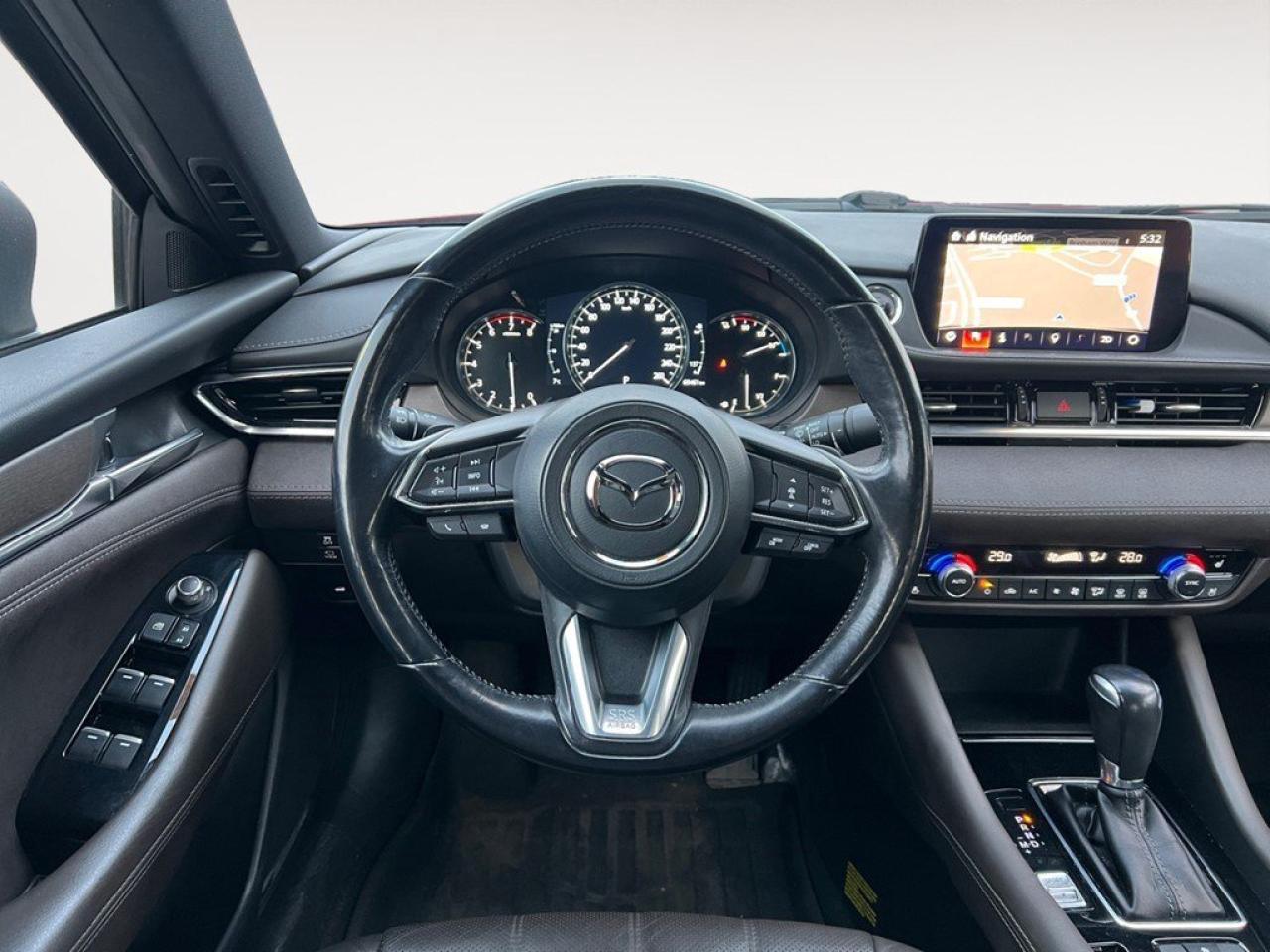 Experience driving pleasure with this elegant 2018 Mazda Mazda6 Signature in a striking red finish, equipped with a smooth automatic transmission and front-wheel drive. Perfectly balancing performance with handling, this sedan is powered by a 2.5L 4-cylinder engine delivering impressive RPM, making it an ideal choice for those who appreciate a spirited yet refined drive. The Mazda6 Signature's exterior radiates sophistication with its alloy wheels and red color that turns heads at every corner. Step inside, and you are greeted by an interior that exudes luxury with leather seats and a leather steering wheel offering ultimate comfort. The sunroof or moonroof connects you to the sky above, adding to the premium feel of this vehicle. Stay seamlessly connected with the smart device integration, satellite radio, and a state-of-the-art navigation system for those long journeys. With technology that safeguards where it matters most, benefit from features such as a backup camera, parking sensors, lane assist, and a heads-up display. Relax knowing safety is a priority with brake assist and adaptive cruise control easing the strain on lengthy drives. If you are someone who values both style and cutting-edge technology, this 2018 Mazda Mazda6 Signature should undoubtedly be at the top of your list. Whether for daily commutes or weekend getaways, this sedan checks all the boxes. Contact us today to learn more and to arrange a test drive.