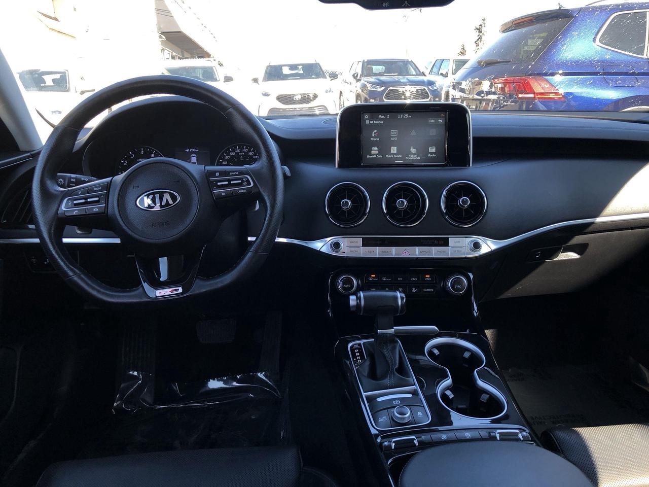 *** OTTAWAS ORIGINAL IMPORT DEALER!! SINGLE OWNER * NO ACCIDENTS * SMETANA APPROVED *** A fresh trade in and represents truly fantastic value for your hard earned dollar!! Finished in Snow White Pearl with gorgeous contrasting black leather seating surfaces, 255 horses under the hood, all wheel drive handling, 18 alloy wheels, high performance shocks, automatic headlamps, dual function LED headlamps, LED positioning light, heated sideview mirrors, automatic power folding mirrors, electronic stability control, vehicle stability management, hill assist control, blind spot detection, rear parking sensors, rear cross traffic alert, backup camera, dual climate control system, 9 speaker audio system, Bluetooth, Apple Car Play, Android auto, wireless phone charger, smart key with push start system, ambient mood lighting, power seats, heated front seats, heated steering wheels, sport steering wheel, piano black interior trim, only 46,000kms all compliment this stunning and low kms 2019 Kia Stinger GT Line AWD. Perfection and beyond!! Home of the Platinum up to 240,000kms warranty and financing is always available O.A.C Import Car Centre, proudly serving the Ottawa and surrounding area for over 45 years. Come down and experience Import Car Centre for yourself and see just why our customers are so happy!