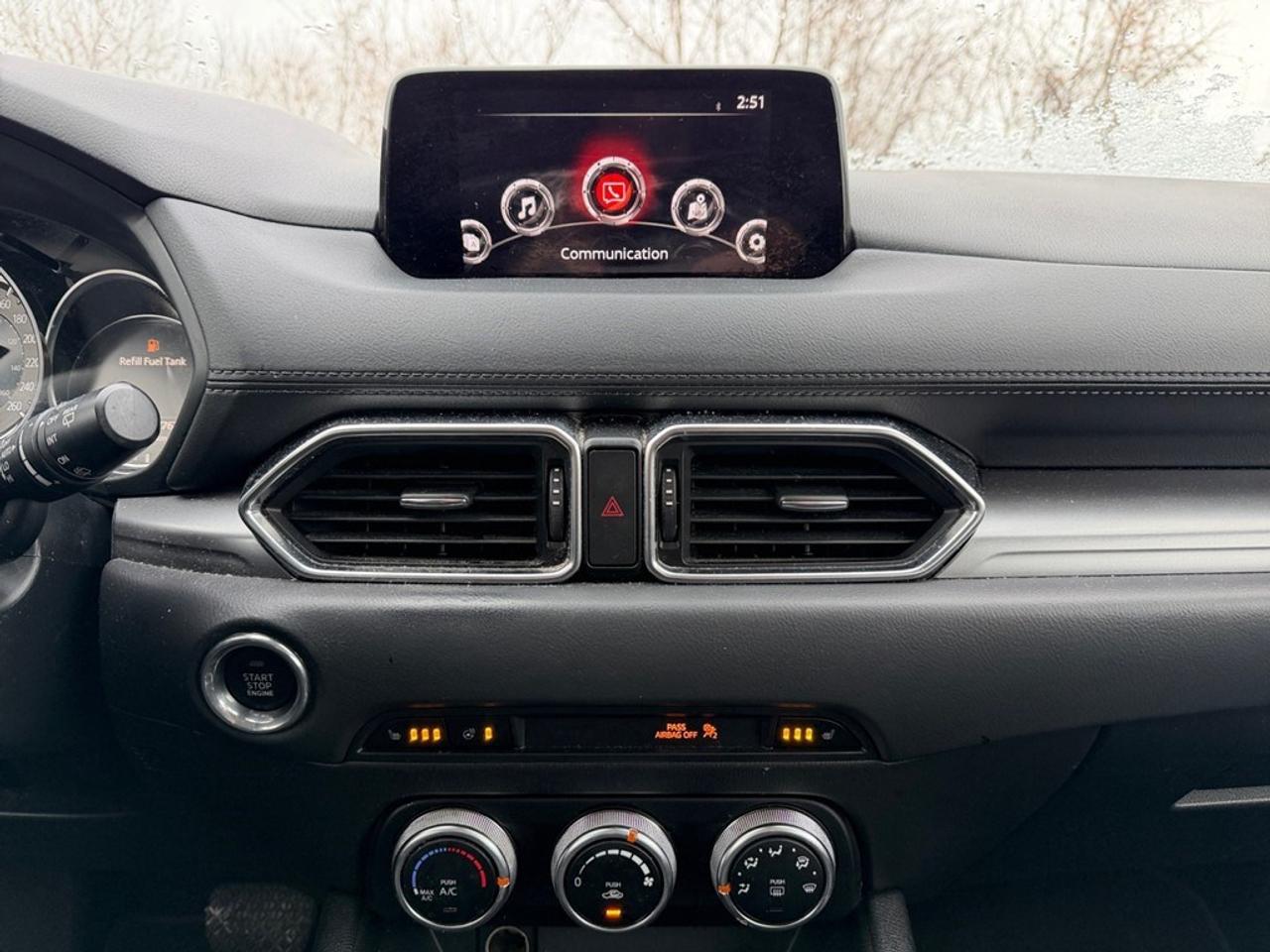 The 2020 Mazda CX-5 GS in a sleek body, combined with its AWD drivetrain, offers superb handling for drivers who crave both style and performance. Its stunning SUV profile is complemented by stylish alloy wheels and heated mirrors. Step inside and you'll find a harmonious interior that features a leather steering wheel and leatherette door trim insert, enhancing the sophisticated ambiance. Enjoy the convenience of power seats and power windows, as well as the added luxury of heated front seats and a heated steering wheel, perfect for Canadian winters. Stay connected and entertained on the go with smart device integration and Bluetooth connection accessible through the user-friendly infotainment system. Safety takes center stage with advanced features like a backup camera, brake assist, and lane assist technology. Adaptive cruise control is also at your service for easy long-distance drives. This Mazda CX-5 GS model caters to individuals and families seeking a reliable, stylish, and feature-rich vehicle. Dont miss the chance to own this extraordinary SUV contact our dealership today to schedule a test drive and explore your financing options.