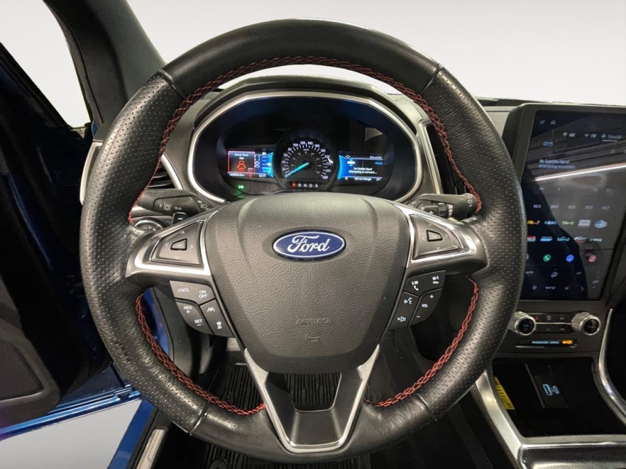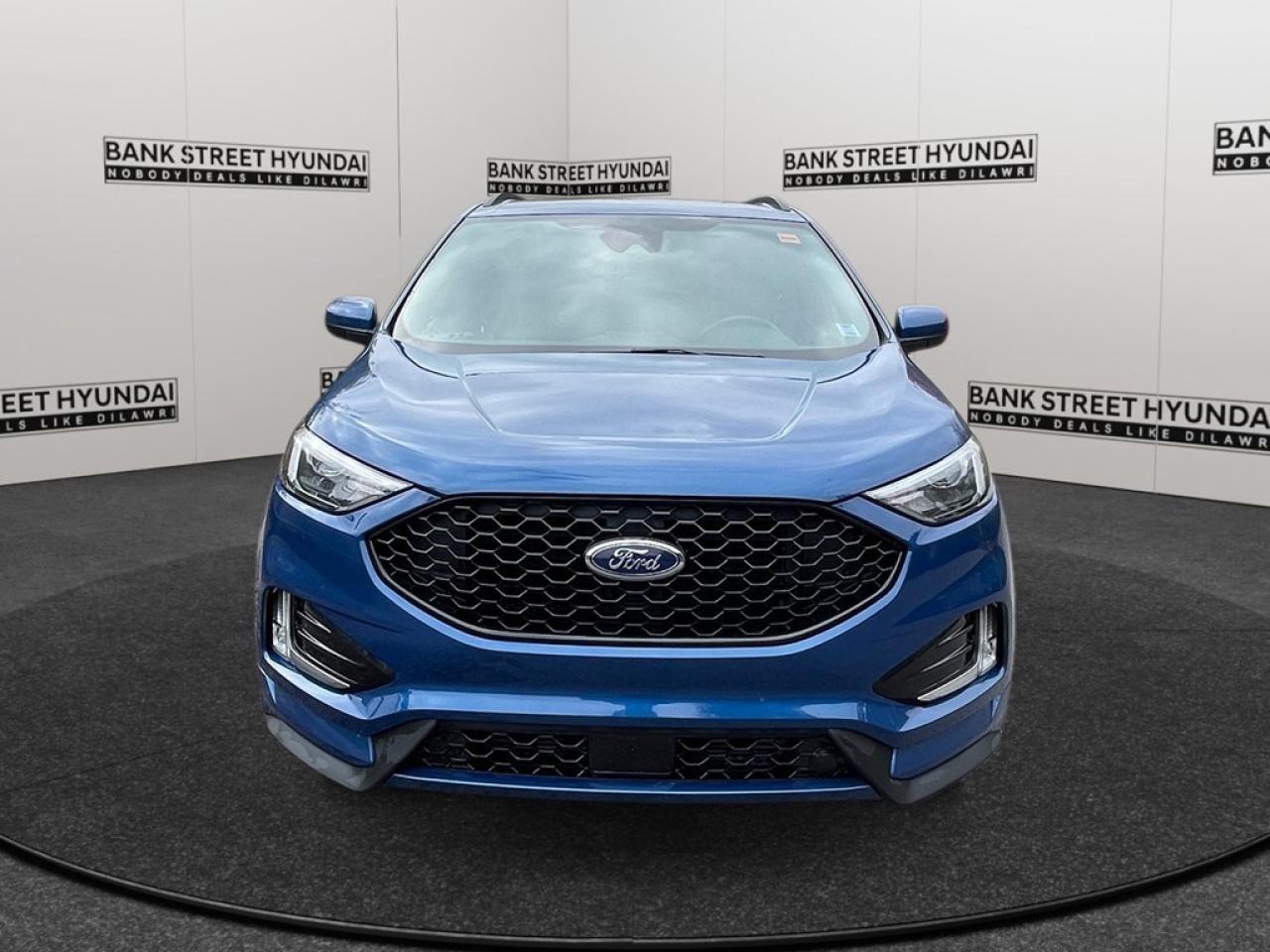 The 2021 Ford Edge ST Line AWD, with its striking blue exterior and all-wheel drive capability, promises an exhilarating driving experience. This SUVs handling is robust and responsive, perfect for any Canadian road conditions. The thoughtfully designed exterior features stylish alloy wheels and an aerodynamic silhouette that is both functional and attractive. Inside, you'll appreciate the comfort of heated seats and the convenience of keyless entry and power-adjustable seats. Stay entertained and connected with the available smart device integration, satellite radio, and a Wi-Fi hotspot. Modern technology is at the cutting edge with features like a high-resolution backup camera, Bluetooth connection, and a powerful suite of safety options including lane assist and brake assist. Parking sensors add an extra layer of peace of mind in tight spots. This vehicle is perfect for families and adventure-seekers who value performance, comfort, and innovation. Contact our dealership today to learn more about the Ford Edge ST Line AWD and plan your perfect test drive.