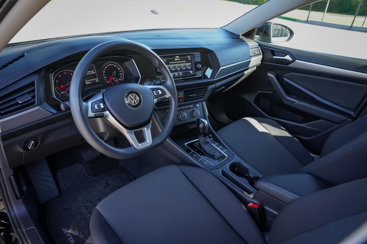Black exterior | Black interior S Trim | 4-Door Sedan | Clean German Styling | LED Headlights | 16-Inch Steel Wheels with Covers 1.4L Turbocharged Inline-4 Engine | Gasoline | 147 Horsepower | 184 lb-ft Torque 8-Speed Automatic Transmission | Front-Wheel Drive Fuel Consumption: 8.11 L/100km City | 6.03 L/100km Highway Keyless Access | Manual Climate Control | Heated Front Seats | Cloth Upholstery Volkswagen Infotainment System | Bluetooth Connectivity | Touchscreen Display | USB-C Ports Safety Features | ABS | Electronic Stability Control | Rearview Camera | Multiple Airbags Spacious Cabin | 60/40 Split-Folding Rear Seats | Ample Trunk Space | Power Windows & Locks