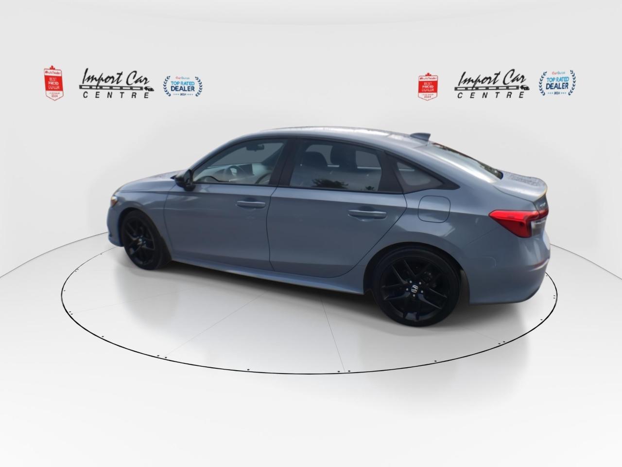 *** 2024 AUTOTRADER BEST PRICED DEALER AWARD 2024 * CARGURUS TOP RATED DEALER 2024 * SINGLE OWNER * NO ACCIDENTS * SMETANA APPROVED *** The Honda Civic has been gracing Canadian roadways for decades and has been doing so with amazing fuel efficiencies, bulletproof reliability and incredible resale value!! Finished in Sonic Grey Pearl with contrasting black fabric seating surfaces, 18 black alloy wheels, sport pedals, deck lip spoiler, fog lights, paddle shifters, dual zone climate control, power driver's seat, forward collision warning system, collision mitigation system, hill start assist, lane departure warning, road departure mitigation, traffic sign recognition, vehicle stability assist, adaptive cruise control, blind spot information, lane keeping assistant, traffic jam assist, LED fog lights, LED headlamps, speed sensing wipers, dual zone climate control, backup camera, proximity key with push start button, remote engine starter, heated front seats, heated leather wrapped steering wheel, moonroof, only 22,000kms all compliment this stunning 2022 Honda Civic Sport. Perfection and beyond!! Home of the Platinum up to 240,000kms warranty and financing is always available O.A.C Import Car Centre, proudly serving the Ottawa and surrounding area for over 45 years. Come down and experience Import Car Centre for yourself and see just why our customers are so happy! Advertised price includes $22 OMVIC fee and $40 Carproof. Excludes taxes and licensing.<