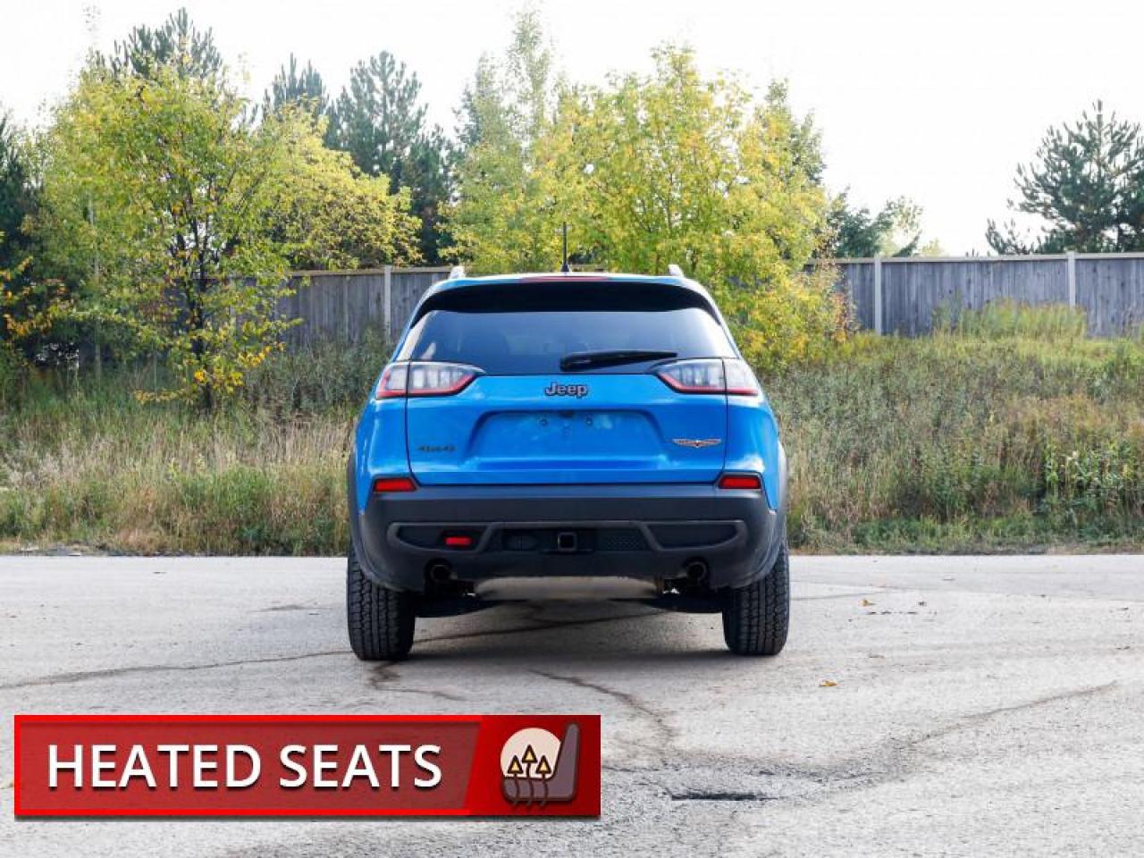 Our Cherokee's trim level is Trailhawk. This Cherokee Trailhawk edition adds skid plates, tow hooks, and off road suspension so you can build new roads no matter the conditions. This rugged and ready Cherokee offers heated front seats, a power liftgate, heated steering wheel, proximity keys, blind spot detection, parking sensors, remote start, and LED headlights for comfort and convenience. Stay connected on the commute or the trail with a 4G Wi-Fi hotspot, Apple CarPlay, Android Auto, and wireless streaming Audio. This vehicle has been upgraded with the following features: Android Auto, Apple Carplay, Power Liftgate, Off-road Suspension, Heated Seats, Heated Steering Wheel, Blind Spot Detection.