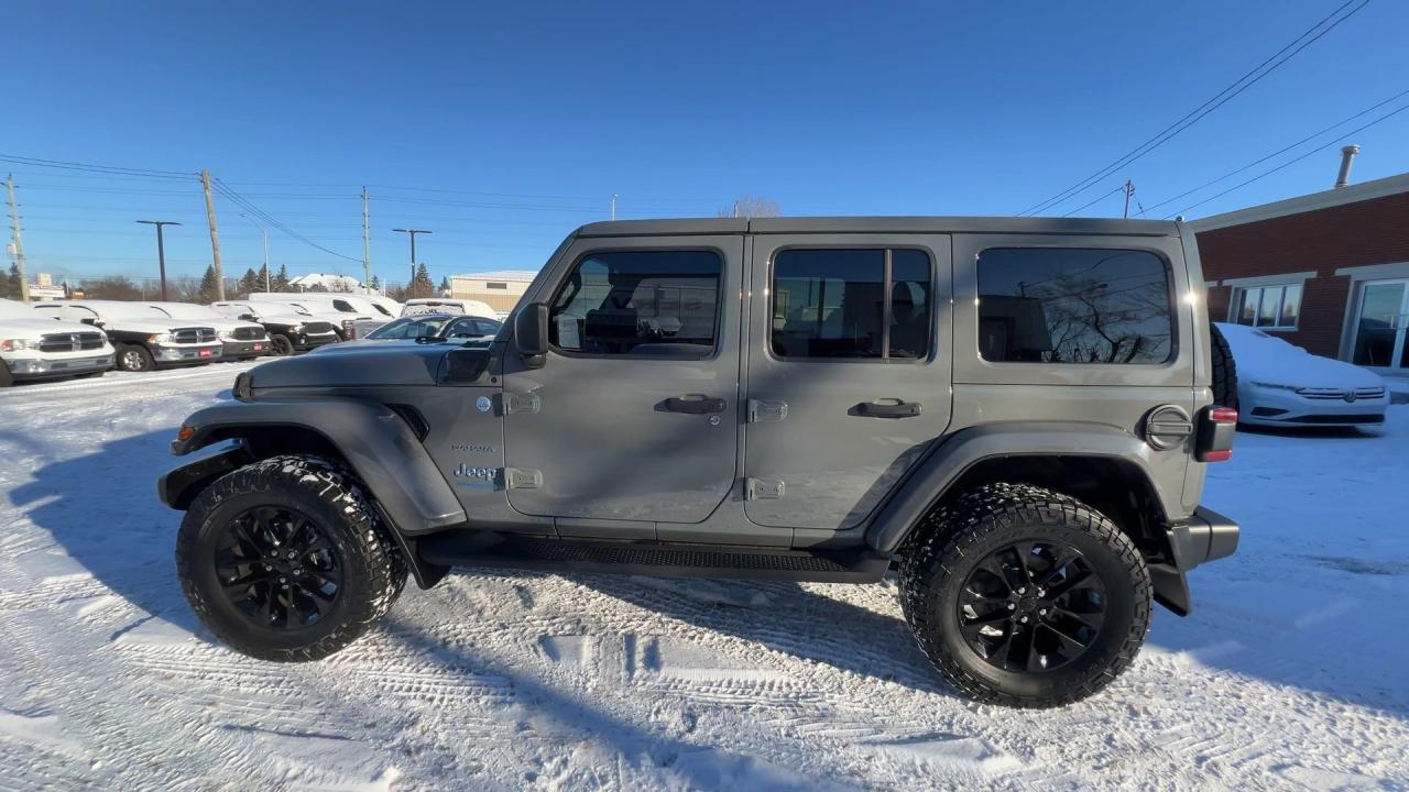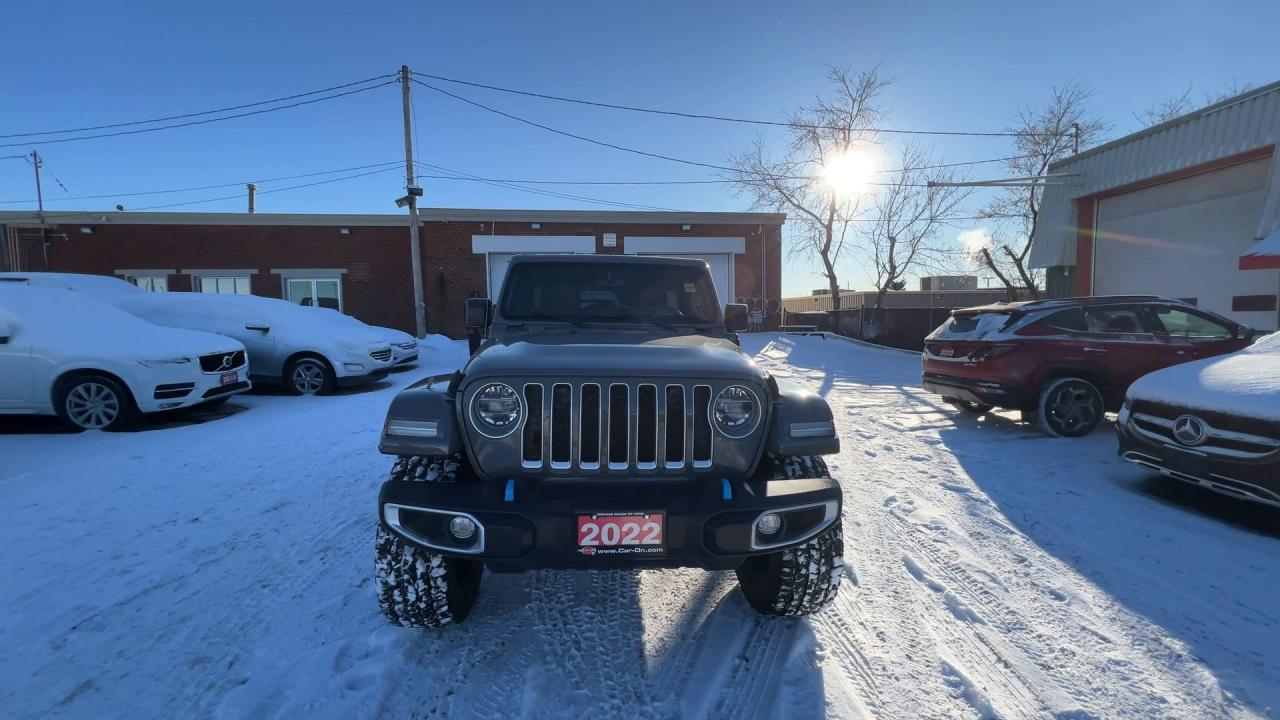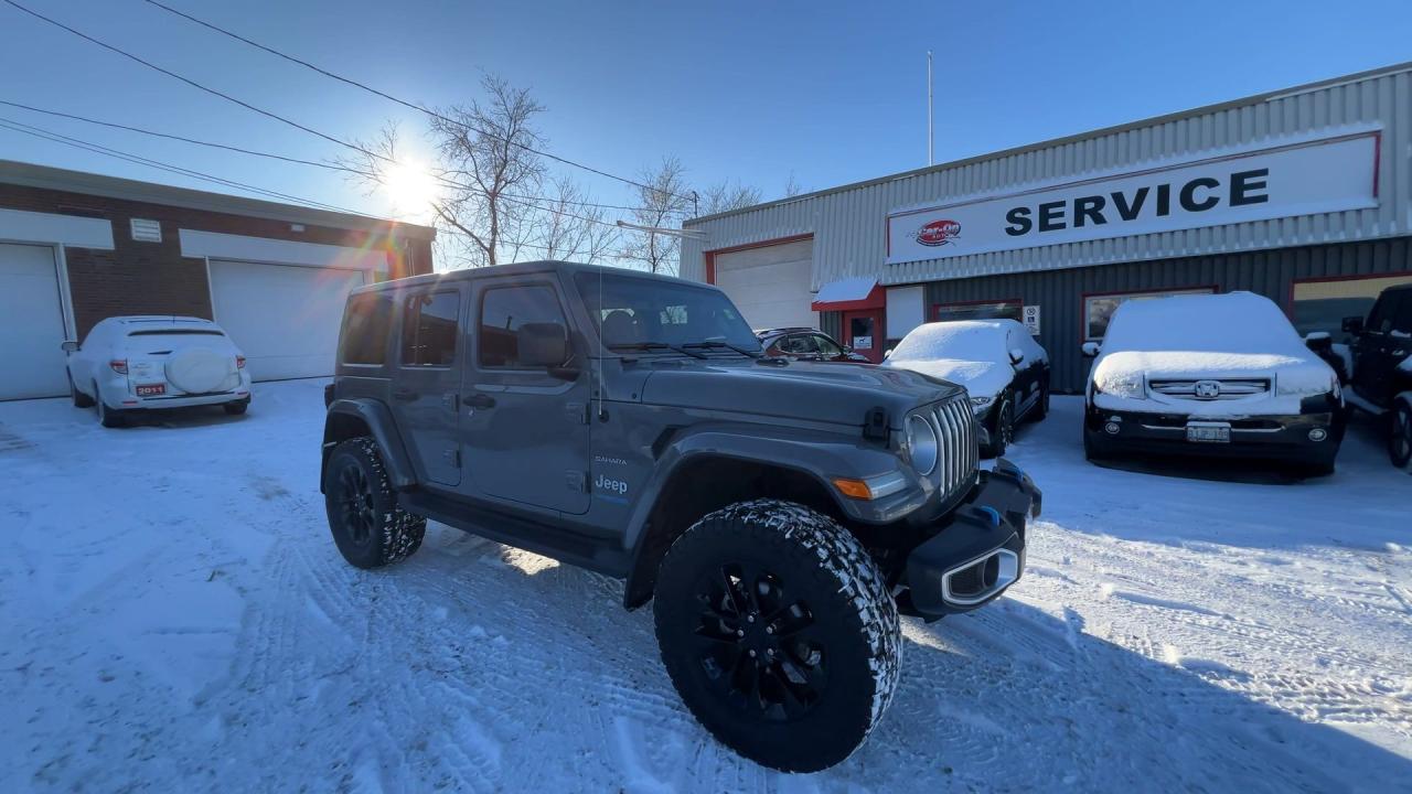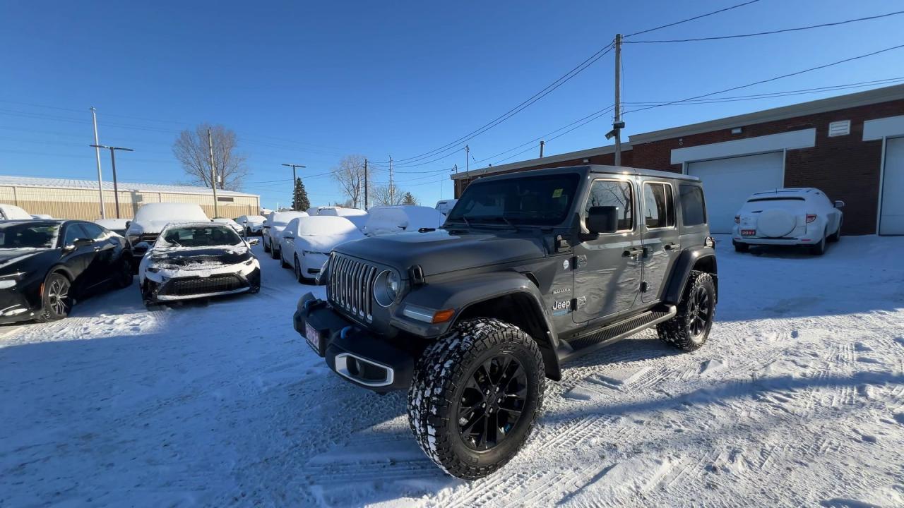 LOADED SAHARA 4XE PLUG-IN HYBRID 4X4!! Heated seats & steering, Android Auto/ Apple CarPlay remote start, navigation, 20-inch alloys, backup camera, color matching freedom hard top, off-road pages, dual-zone climate control, keyless entry w/ push start, power locks, power windows, power mirrors, cruise control, Bluetooth and more!!This vehicle just landed and is awaiting a full detail and photo shoot. Contact us and book your road test today!
