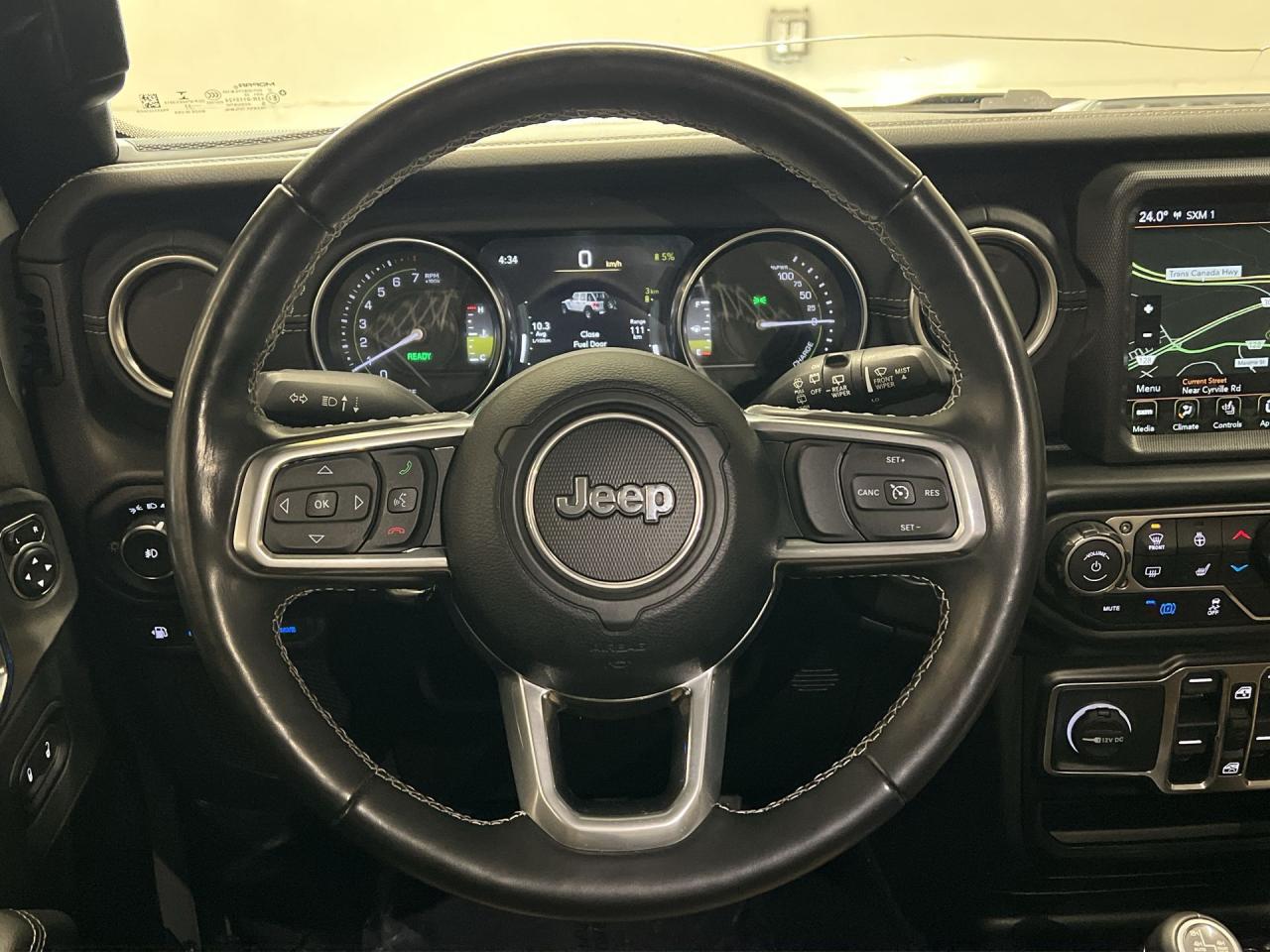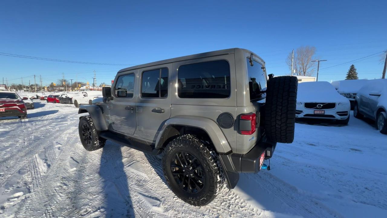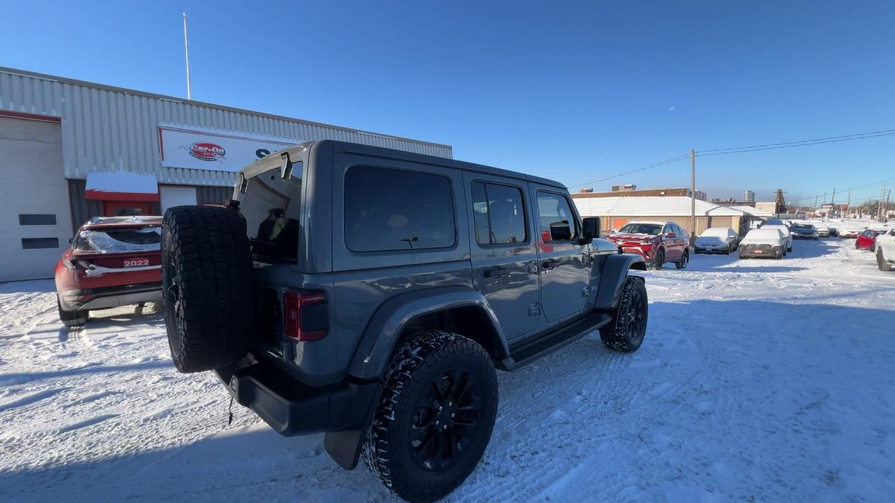 LOADED SAHARA 4XE PLUG-IN HYBRID 4X4!! Heated seats & steering, Android Auto/ Apple CarPlay remote start, navigation, 20-inch alloys, backup camera, color matching freedom hard top, off-road pages, dual-zone climate control, keyless entry w/ push start, power locks, power windows, power mirrors, cruise control, Bluetooth and more!!This vehicle just landed and is awaiting a full detail and photo shoot. Contact us and book your road test today!