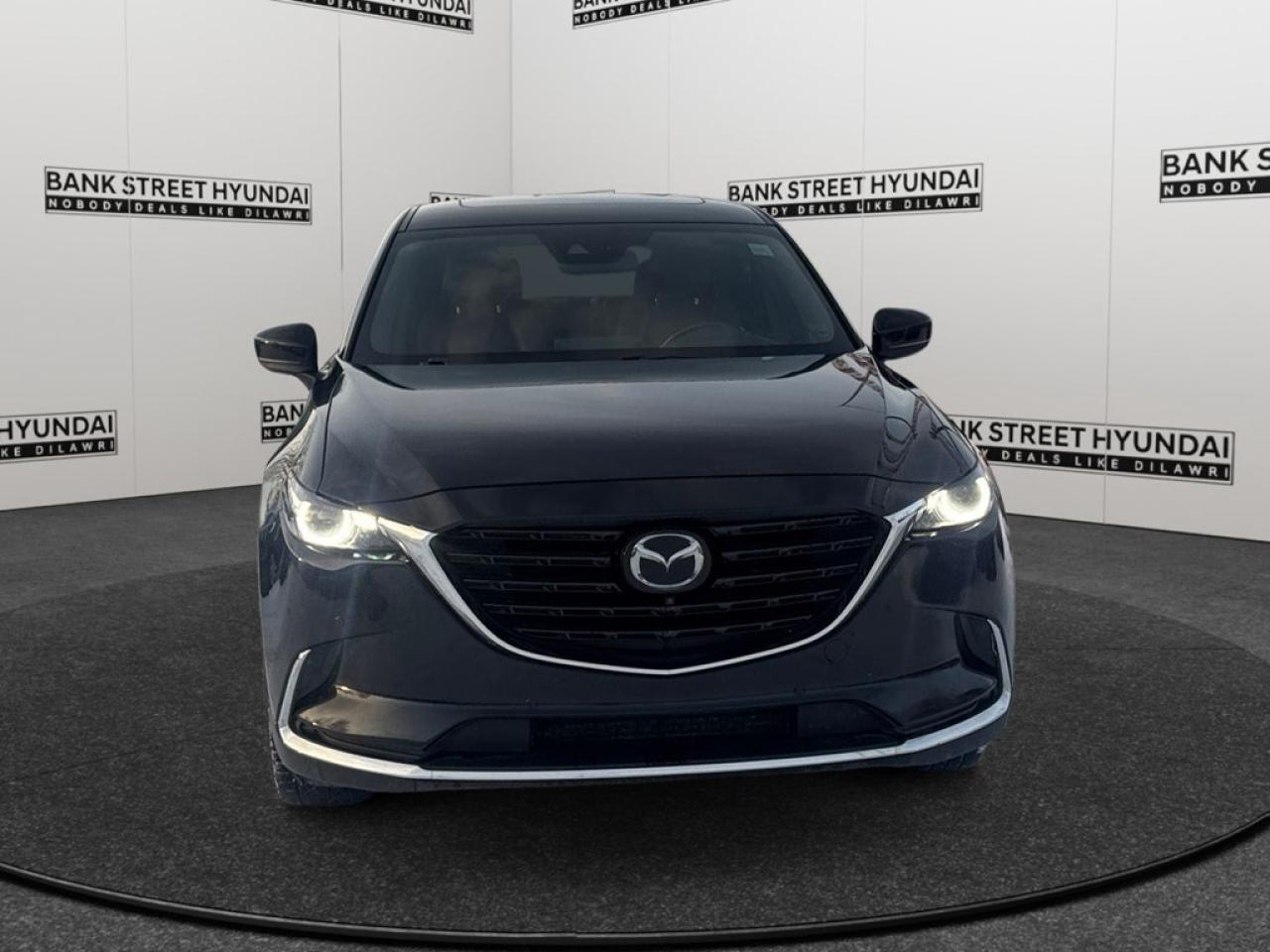 Experience the elegance of the 2022 Mazda CX-9 Kuro Edition AWD, dressed in a striking black finish. This SUV offers an impressive all-wheel-drive system, promising a smooth and confident handling for all your journeys. The exterior showcases sleek lines and stylish alloy wheels, capturing the essence of sophistication. Inside, the cabin welcomes you with luxurious leather seats that are heated and cooled for your comfort. The spacious interior perfectly blends style with functionality, featuring power seats and a sunroof to elevate your driving experience. Stay connected and secure with advanced technology offerings such as a navigation system, heads-up display, and Bluetooth connection. Safety is paramount, with features like a backup camera, parking sensors, and lane assist ensuring peace of mind on every ride. This vehicle is ideal for families or individuals seeking a reliable SUV with luxury touches and state-of-the-art technology. Contact us today to learn more about the Mazda CX-9 Kuro Edition and take it for a test drive. Don't miss the opportunity to make this stunning vehicle yours!