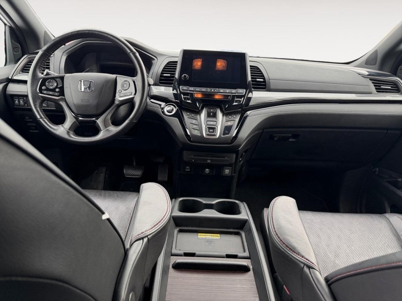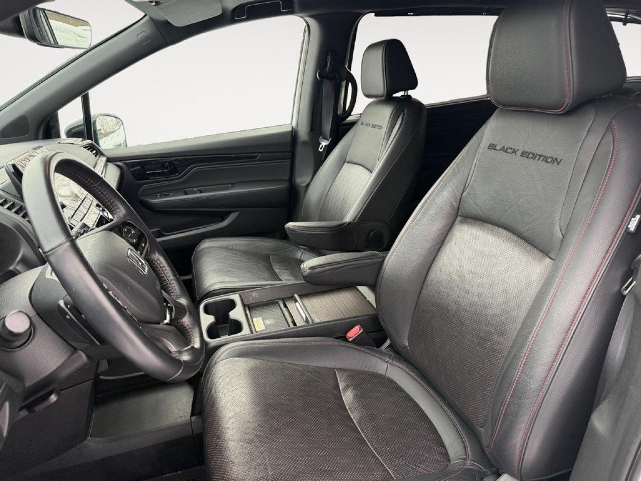 The 2023 Honda Odyssey Black Edition in White with FWD offers handling that combines both comfort and precision perfect for family adventures or simply cruising through the city in style. Its striking white exterior is complemented by sleek, alloy wheels, creating a striking impression that stands out on the road. Inside, the elegant leather seats and leatherette door trim exude luxury, while the heated and cooled front seats and heated steering wheel ensure maximum comfort, regardless of the season. This van is decked with cutting-edge technology from front to back. The intuitive navigation system and Bluetooth connection keep you connected and on course. Safety and convenience are top priorities with features such as a backup camera, brake assist, lane assist, and adaptive cruise control. Smart device integration, a sunroof/moonroof, and a DVD/entertainment system cater to both entertainment and convenience, making long journeys feel short. The 2023 Honda Odyssey Black Edition is an exceptional choice for families and individuals who value comfort, luxury, and advanced features. Contact our dealership for more information and let us help you experience it firsthand.