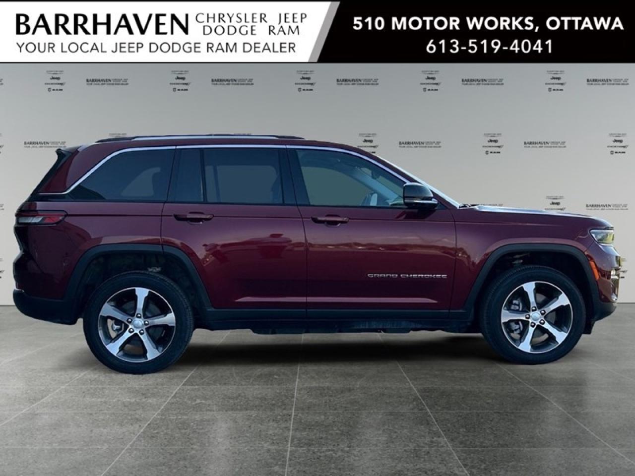 The stunning red Jeep Grand Cherokee 4xe 4x4 is ready to tackle any terrain with its robust 4x4 drivetrain and agile automatic transmission. This SUV delivers both power and efficiency with its 2.0L 4-cylinder engine, providing an exhilarating driving experience with 375 RPM at 5250. The exterior is both bold and stylish, featuring alloy wheels that complement its powerful stance. Inside, you'll find a suite of modern conveniences and luxurious touches that cater to your comfort and connectivity. Enjoy the comfort of heated front and rear seats and a heated steering wheel, all while cruising with confidence thanks to adaptive cruise control. Stay connected with the advanced technology embedded within, including Bluetooth connection, a backup camera, navigation system, and a smart device integration system that ensures seamless connectivity. Safety features such as lane assist, parking sensors, and brake assist are available to enhance driver assistance and offer peace of mind. This remarkable SUV is perfect for adventurers and families looking for a reliable, feature-packed vehicle that's as versatile as your lifestyle demands. Contact us today to learn more about the exceptional capabilities of the Jeep Grand Cherokee 4xe 4x4 and schedule a test drive. *Advertised Price Based on Finance Purchase*
