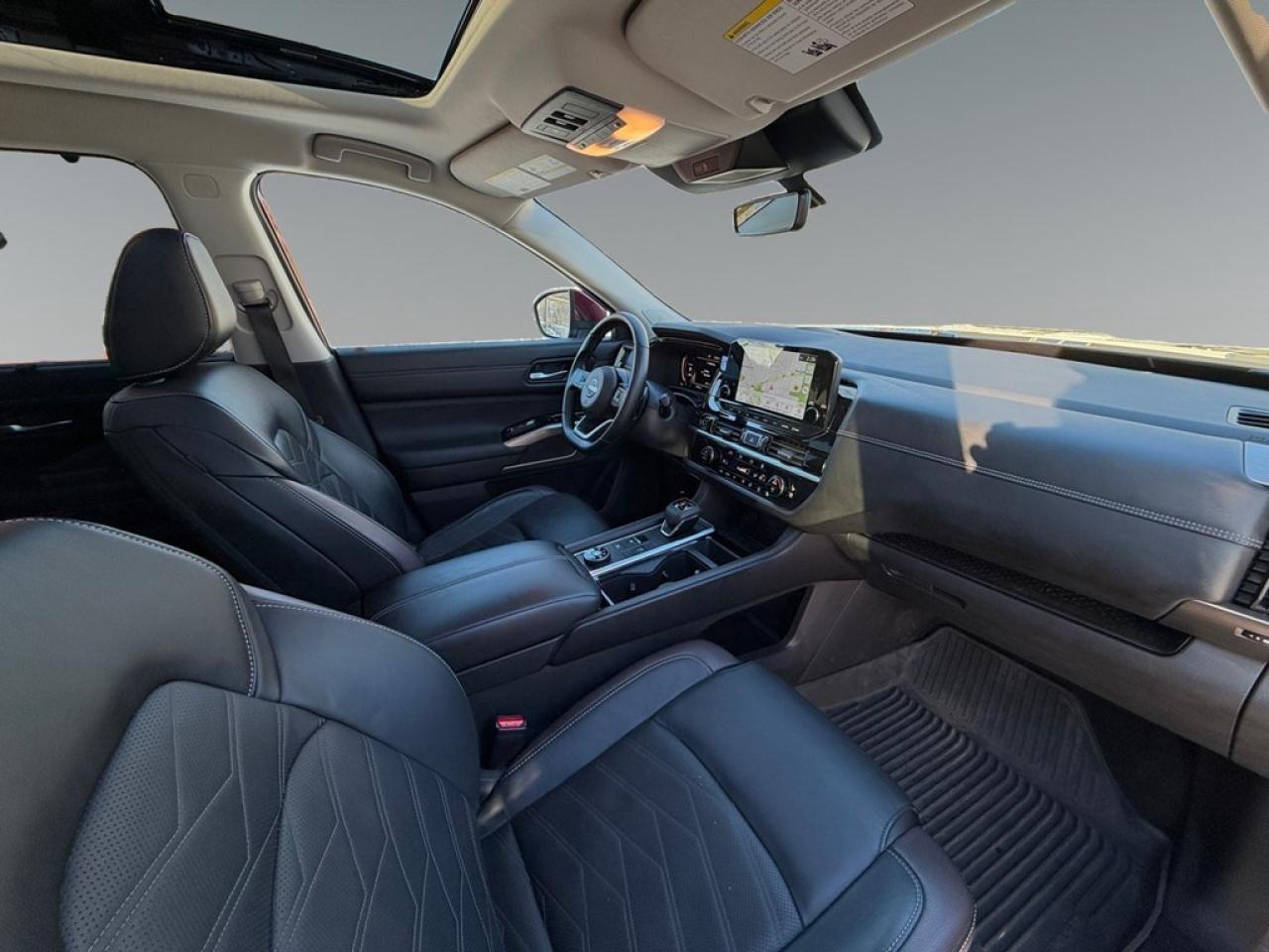 Explore the 2023 Nissan Pathfinder Platinum in a stunning Red finish and 4×4 drivetrain designed for exceptional handling. This SUV combines rugged capability with refined elegance, making every drive an experience to remember. The exterior highlights include sleek alloy wheels and a sophisticated sunroof, while the interior boasts luxurious leather seats that are both heated and cooled for ultimate comfort. You'll appreciate the upscale leather steering wheel and door trim that add a touch of class to your driving experience. The Pathfinder is packed with cutting-edge technology. Stay connected with Bluetooth and smart device integration, while the navigation system and heads-up display guide your adventure seamlessly. Safety is paramount with features like lane assist, adaptive cruise control, and a backup camera ensuring peace of mind for you and your passengers. Ideal for those seeking luxury on and off the road, this SUV is perfect for families and adventurers alike. Contact us today to learn more about the 2023 Nissan Pathfinder Platinum and take it for a test drive. Don't miss out on the opportunity to own this exceptional vehicle.