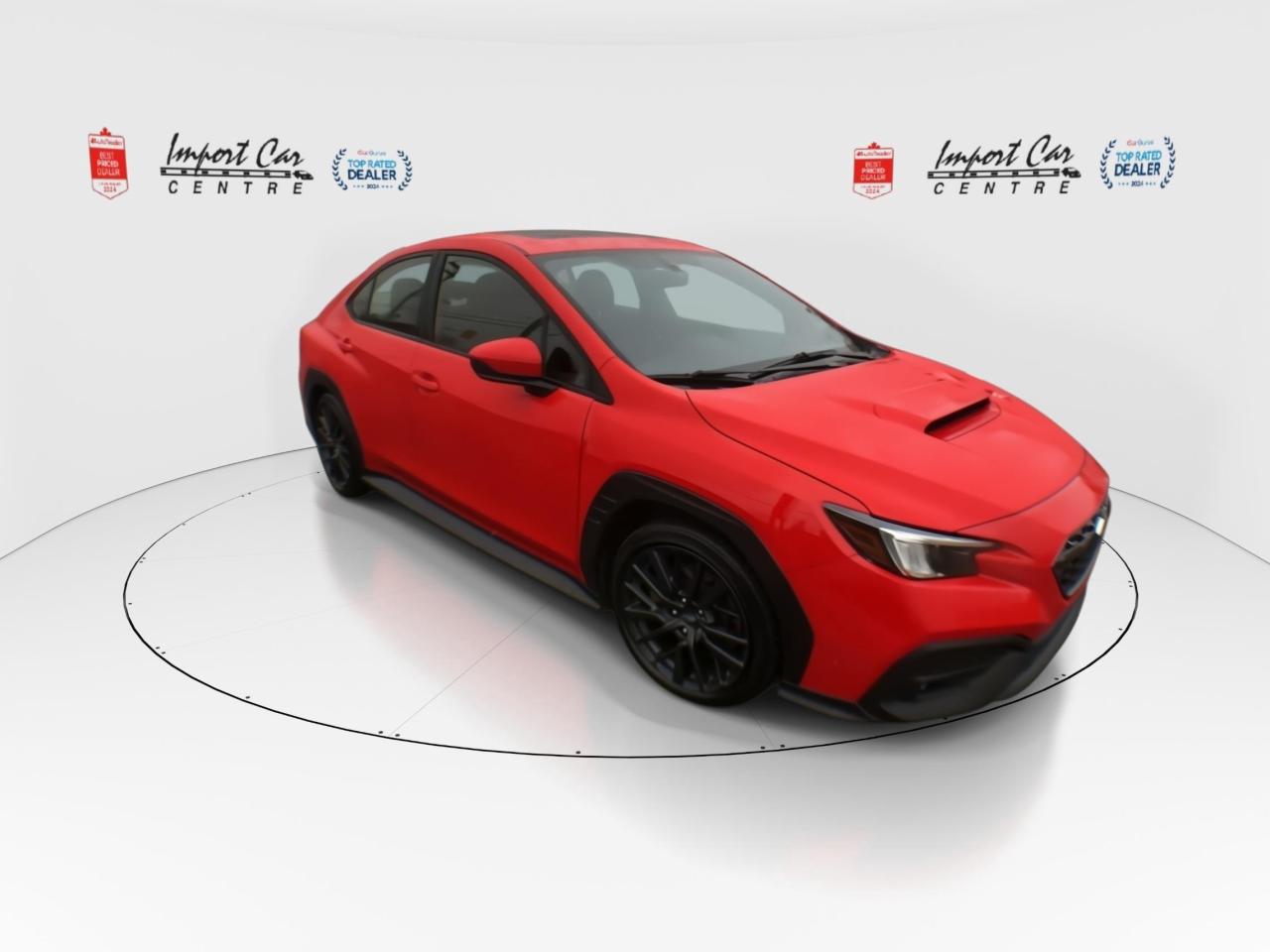 *** 2024 AUTOTRADER BEST PRICED DEALER AWARD 2024 * CARGURUS TOP RATED DEALER 2024 * SMETANA APPROVED *** Pound for pound, this is truly the most fun you will have in a 4 door sedan spending this little amount of money!! Finished in Pure Red with contrasting black premium fabric seating surfaces, 271 horses under the hood, incredible Subaru symmetrical all wheel drive handling, heated seats, navigation, Harman Kardon sound system, Android Auto, Apple Car Play, Bluetooth streaming audio, SiriusXM radio, 18 dark grey alloy wheels, trunk lip spoiler, Subaru side/rear vehicle detection, proximity key, push start button, sunroof, dual zone climate control, sport tuned suspension, flat bottom sport steering wheel, windshield wiper deicer, heated side mirrors, backup camera, only 49,000kms all compliment this stunning and like new 2023 Subaru WRX Sport. Perfection and beyond!! Home of the Platinum up to 240,000kms warranty and financing is always available O.A.C Import Car Centre, proudly serving the Ottawa and surrounding area for over 42 years. Come down and experience Import Car Centre for yourself and see just why our customers are so happy!