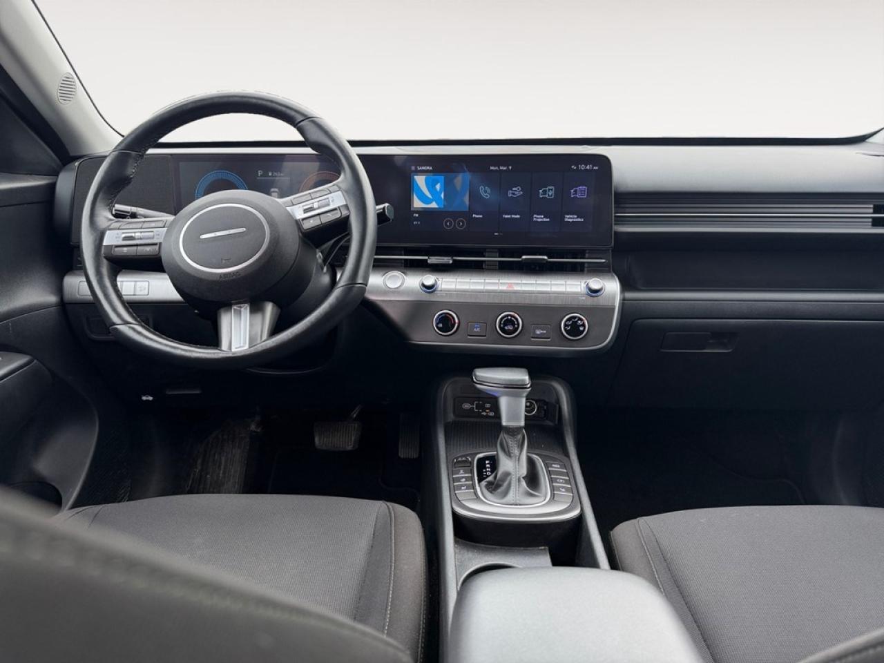 The 2024 Hyundai Kona 2.0L Preferred AWD is now available in an elegant Gray finish, combining advanced handling with the convenience of AWD, making it perfect for those looking for confidence in various driving conditions. This SUV's exterior is accentuated by stylish alloy wheels that complement its modern design. The interior offers a range of comforts including leather steering wheel, heated steering wheel, and heated front seats, ensuring a pleasurable experience regardless of the season. Keyless entry and power windows add to the overall ease and accessibility. The Kona comes equipped with a host of technological features to enhance your driving experience. From the backup camera to brake assist, every ride is safer and more enjoyable. Stay connected with smart device integration and enjoy the entertainment options on satellite radio. Advanced features such as lane assist and adaptive cruise control provide an extra layer of safety and convenience, whether on a long highway cruise or a daily city drive. Perfect for tech-savvy families and urban adventurers, this 2024 Hyundai Kona is equipped to meet your lifestyle needs. Contact us today to learn more about how you can own this feature-rich SUV.