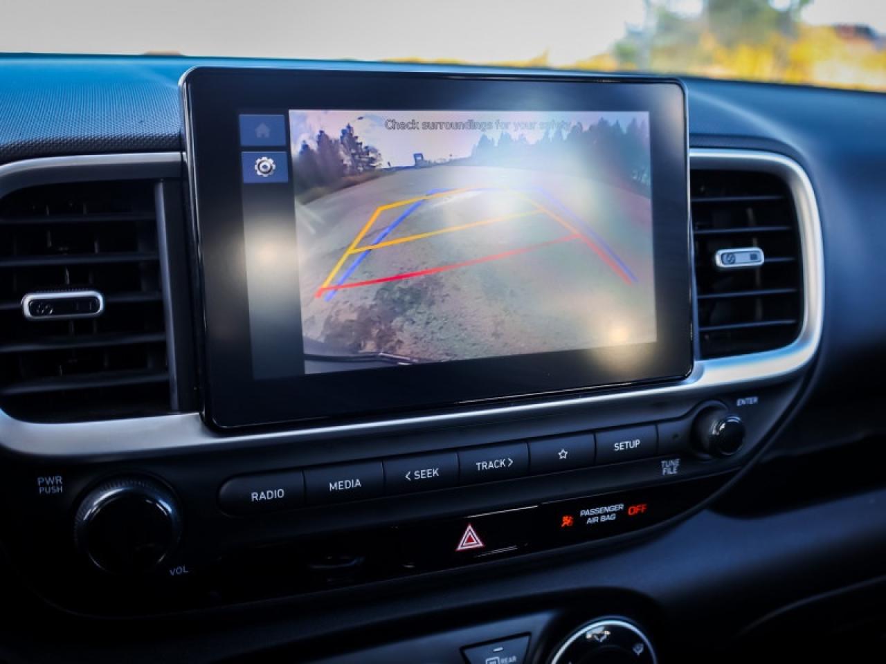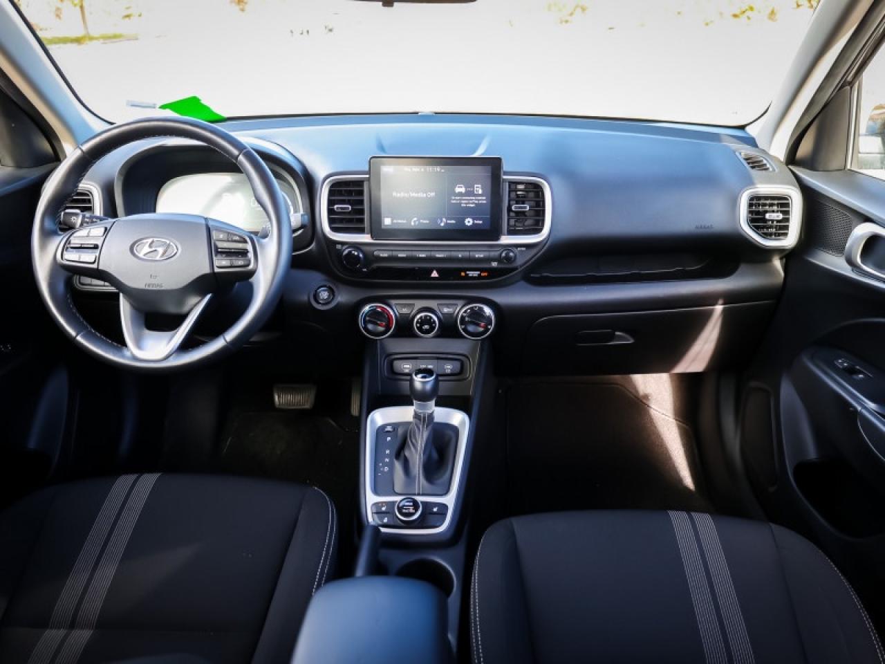 Our Venue's trim level is Preferred. This Venue Preferred steps it up with blind spot detection, remote engine start, roof rack rails, and a heated steering wheel, along with heated front seats, 60-40 folding rear seats, remote keyless entry, power heated side mirrors, automatic high beams, front and rear cupholders, and an 8-inch touchscreen with wireless Apple CarPlay and Android Auto. Safety features include lane keeping assist, lane departure warning, forward collision avoidance, driver monitoring alert, and a rear view camera.