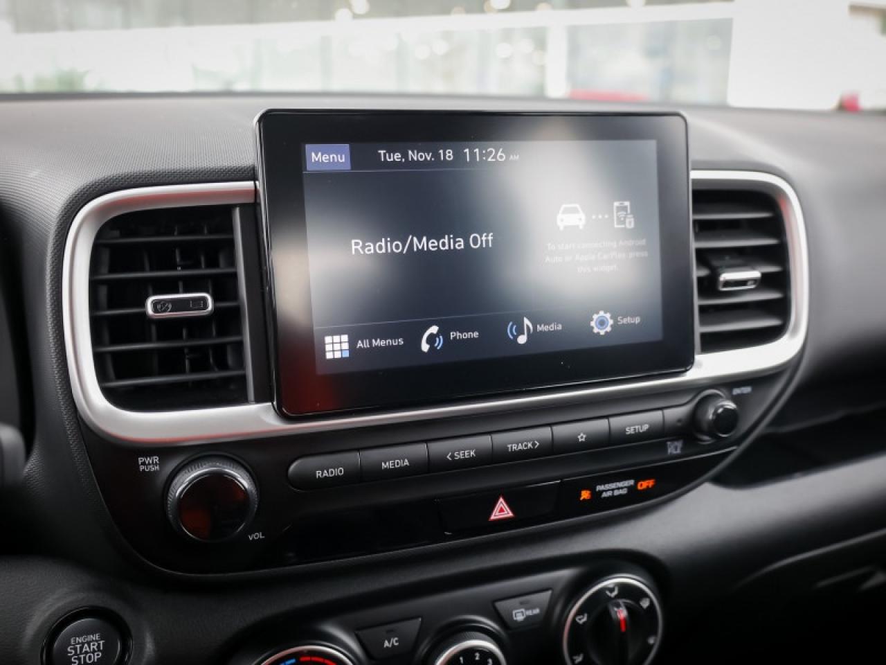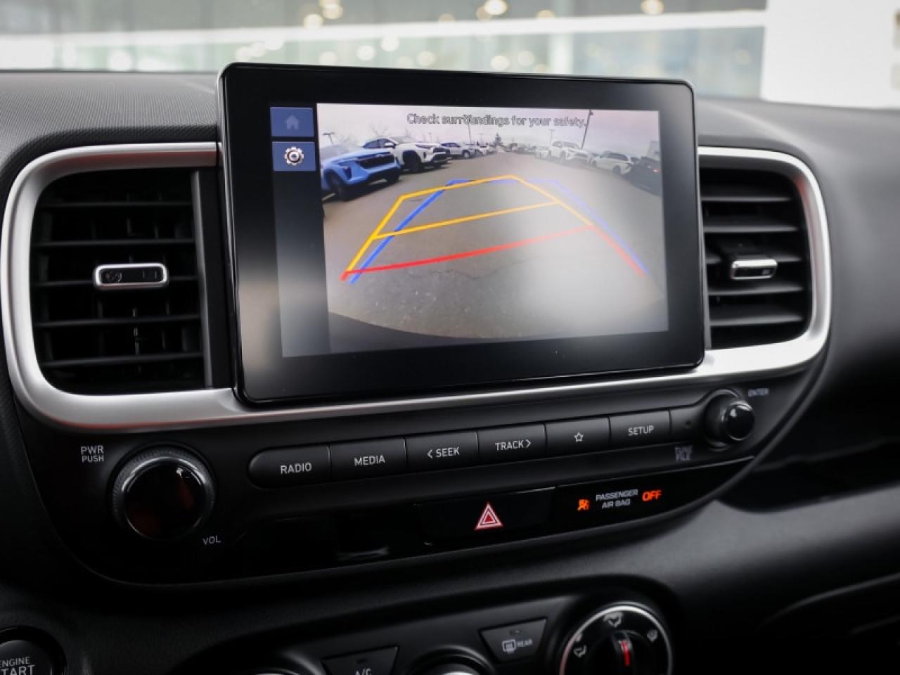 Our Venue's trim level is Preferred. This Venue Preferred steps it up with blind spot detection, remote engine start, roof rack rails, and a heated steering wheel, along with heated front seats, 60-40 folding rear seats, remote keyless entry, power heated side mirrors, automatic high beams, front and rear cupholders, and an 8-inch touchscreen with wireless Apple CarPlay and Android Auto. Safety features include lane keeping assist, lane departure warning, forward collision avoidance, driver monitoring alert, and a rear view camera.