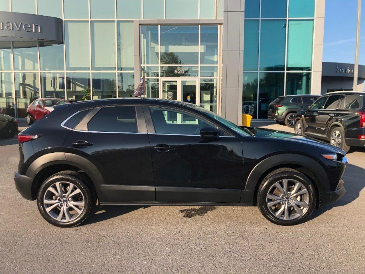 The 2024 Mazda CX-30 GS, presented in a striking black finish and equipped with an AWD drivetrain, promises exceptional handling on every drive. This SUV pairs its robust 2.5L 4-cylinder engine with an automatic transmission for a seamless driving experience, offering RPM of 191 @ 6000 for a balanced drive. The exterior boasts sophisticated alloy wheels and a refined silhouette, making a bold statement on the road. Inside, you're greeted with a stylistically designed interior that features a leather steering wheel and leatherette door trim inserts. The vehicle is structured to ensure comfort through heated front seats, dual climate control, and intuitive power windows. Advanced technology is at your fingertips with smart device integration, Bluetooth connectivity, and a user-friendly backup camera, adding to the ease of navigation and daily driving. Comprehensive safety features such as brake assist, lane assist, and adaptive cruise control keep you protected, while the heated steering wheel enhances your driving comfort during Canada's colder months. If you're an adventurous spirit or a family in need of a reliable and stylish ride, this Mazda CX-30 GS AWD is an excellent choice. Contact us today to learn more about how you can make this versatile vehicle yours!