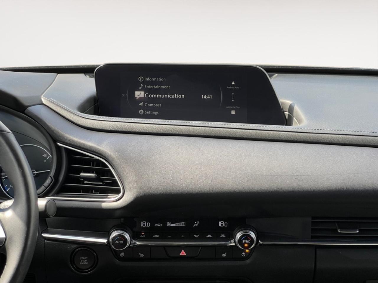The 2024 Mazda CX-30 GS in a captivating color and effective AWD drivetrain is designed for both urban sophistication and rural exploration. With its agile handling and 2.5L 4-cylinder engine providing 191 HP at 6000 RPM, this SUV ensures a responsive and enjoyable drive. The exterior showcases alloy wheels that complement its robust body structure, while inside, it blends practicality with elegance. You'll appreciate the leather steering wheel, heated seats, and leatherette door trim insert that deliver a premium feel. The smartly designed interior extends to features like power windows and keyless entry for added convenience. Equipped with modern technology, the CX-30 offers seamless connectivity through its Bluetooth connection and smart device integration. Safety is paramount, and with features like adaptive cruise control, lane assist, backup camera, and brake assist, your journeys are not only pleasant but also secure. The Mazda CX-30 GS AWD is an excellent choice for individuals or families looking for a versatile SUV that fits both city life and weekend getaways. Contact our dealership today for more information and take the first step towards owning this impressive vehicle.