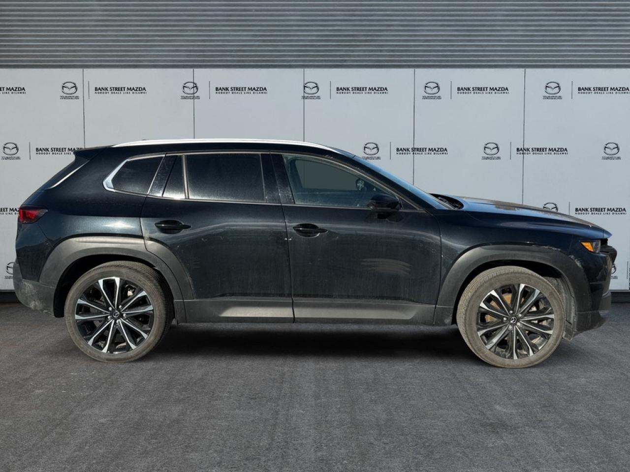 The 2024 Mazda CX-50 GT w/Turbo AWD in Black is a stunning choice for those seeking power and style in an SUV package. Its all-wheel-drive system and smooth handling ensure a dynamic driving experience, making it apt for urban and off-road adventures alike. The exterior boasts alloy wheels and a sophisticated Black finish that give it a commanding road presence. Step inside to find a luxurious interior with power seats, smart device integration, and a sunroof that elevate every journey. Comfort is assured with heated and cooled seats, ensuring you and your passengers have a delightful ride irrespective of the season. Technology enthusiasts will appreciate the advanced features such as the heads-up display, navigation system, and a crisp backup camera for stress-free parking. Safety takes centre stage with an array of driver assistance features including lane assist, brake assist, and parking sensors. This vehicle is perfect for families and adventurous individuals who value comfort, technology, and safety. Don't miss out on the opportunity to own this versatile 2024 Mazda CX-50. Contact our dealership today for more details and to schedule a test drive.