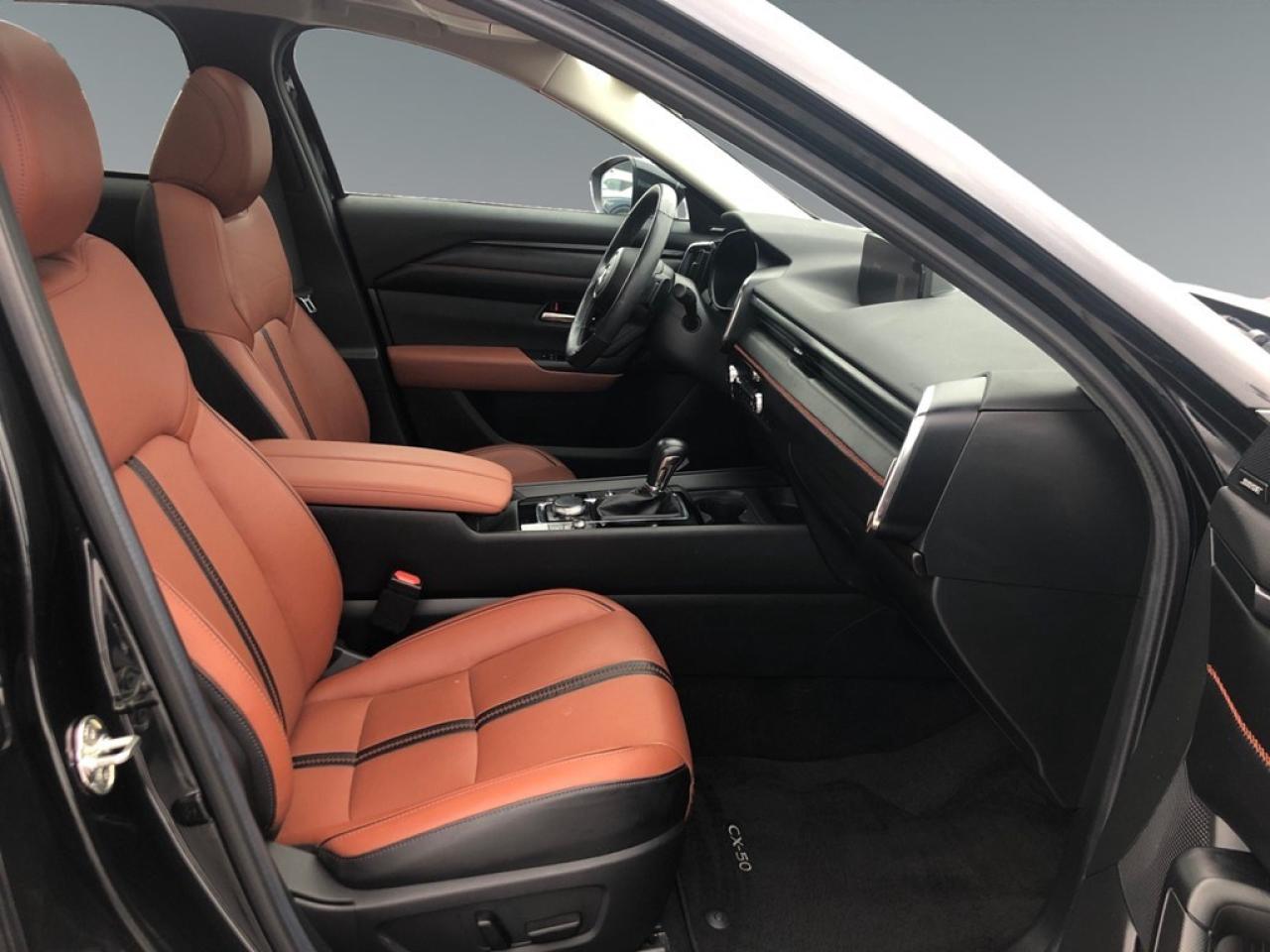 The 2024 Mazda CX-50 GT with Turbo AWD in elegant Black offers an exhilarating all-wheel-drive experience with excellent handling capabilities. This SUV is crafted to make a statement on the road while providing the versatility and comfort you need for any journey. With its stunning exterior, the Mazda CX-50 showcases its modern design and stylish alloy wheels, making it a head-turner in every sense. The luxurious Terracotta leather interior provides a comfortable and upscale environment for both driver and passengers. Equipped with power seats and a sunroof, this vehicle ensures that every ride is enjoyable. Stay connected and secure with the latest technology features, including a user-friendly heads-up display, navigation system, backup camera, and Bluetooth connectivity. Safety is paramount, with features such as lane assist, brake assist, and parking sensors all included to give you peace of mind on the road. The smart device integration and satellite radio further enhance your driving experience, making sure you're always entertained. This Mazda CX-50 is perfect for those who demand style, performance, and state-of-the-art features from their vehicles. Whether you're a family seeking a reliable SUV or a professional desiring a vehicle that reflects your lifestyle, the Mazda CX-50 is designed for you. Contact our dealership today to learn more about this exceptional vehicle and arrange a test drive.