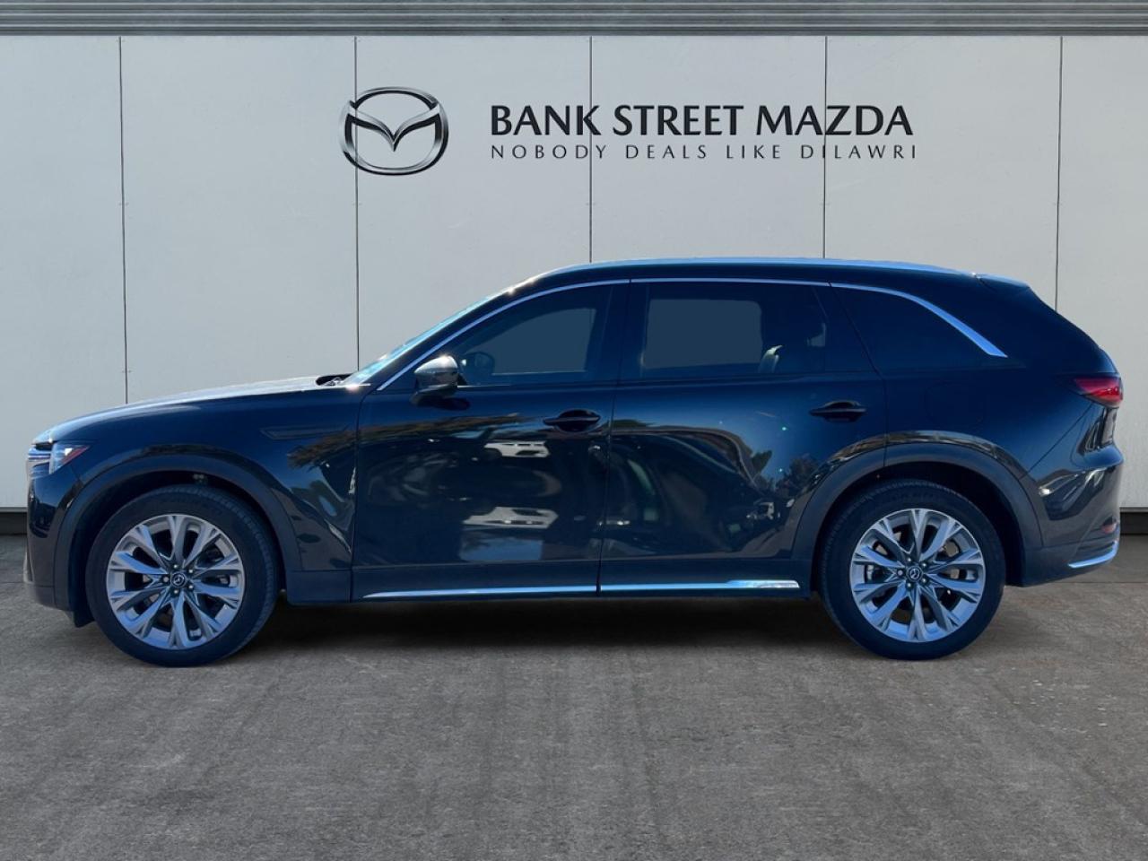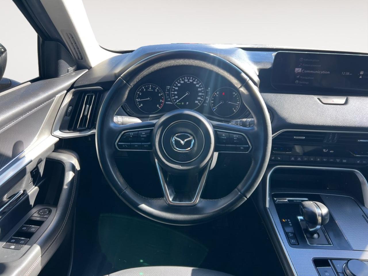 The 2024 Mazda CX-90 MHEV GT in stunning black with all-wheel drive is designed for superior handling and a dynamic driving experience. This impressive SUV features a 3.3L 6-cylinder engine with 280 RPM @ 5000, paired with an automatic transmission for seamless performance on any terrain. The exterior boasts sleek alloy wheels and a sophisticated body style that turns heads. Inside, you're enveloped in luxury with leather seats, a leather steering wheel, and leatherette door trim inserts. Comfort is unmatched with heated mirrors, heated front and rear seats, and a premium leather/metal-look gear shifter. Tech enthusiasts will appreciate the high-tech heads-up display, advanced navigation system, and intuitive smart device integration. The backup camera, parking sensors, and lane assist ensure safety is a top priority, while adaptive cruise control and brake assist enhance your driving confidence. This versatile SUV is perfect for families and adventurers craving a premium driving experience. We welcome you to contact our dealership for more details and take advantage of this exceptional opportunity to own the Mazda CX-90 MHEV GT. Unleash adventure with unmatched style and capability.