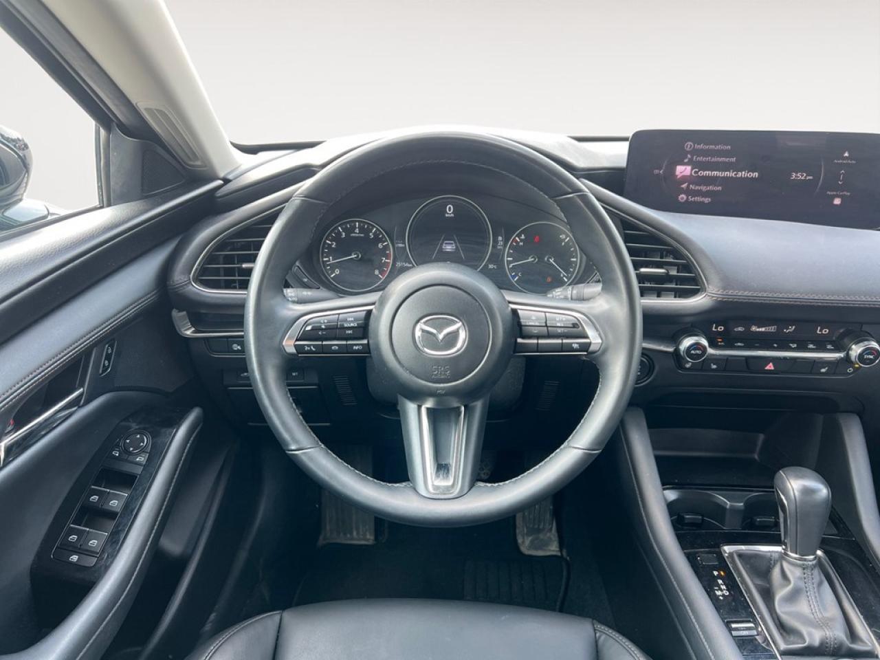 The 2024 Mazda Mazda3 GS, dressed in a stunning blue exterior, comes equipped with an efficient AWD system, promising a controlled and satisfying driving experience. Powered by a robust 2.5L 4-cylinder engine paired with an automatic transmission, this sedan stands out for its responsive handling and attractive design. The exterior of the Mazda3 features stylish alloy wheels that complement its sleek silhouette, while the sunroof/moonroof adds a touch of elegance and a glimpse of sky to every journey. Step inside to find a refined interior complete with a luxurious leather steering wheel and heated front seats offering comfort on every drive. The smart device integration ensures seamless connectivity, while the leatherette door trim and metal-look instrument panel speak to the vehicle's attention to detail and sophistication. The technological features in this Mazda3 are designed with modern driving in mind. The backup camera and Bluetooth connection are essential for today's driver, while the adaptive cruise control and lane assist systems enhance both convenience and safety. The cars air conditioning and power seats provide personalized comfort, ensuring you'll feel at home on the road regardless of the journey length. This Mazda3 GS is an ideal choice for individuals or families seeking a reliable and luxurious driving experience without compromising on modern technology and safety. For further details and a test drive opportunity, please contact our dealership. We are eager to help you make this outstanding sedan your own.
