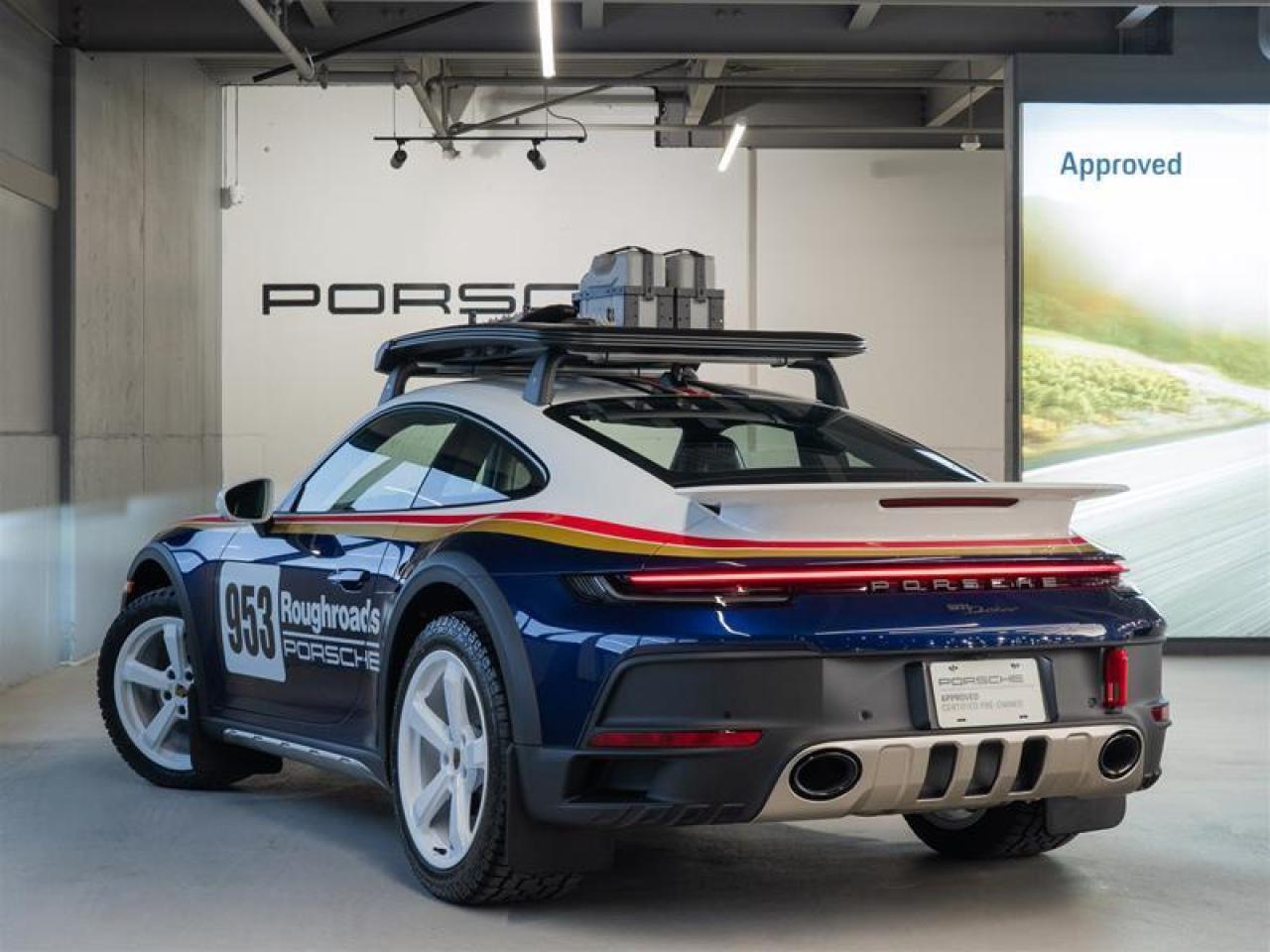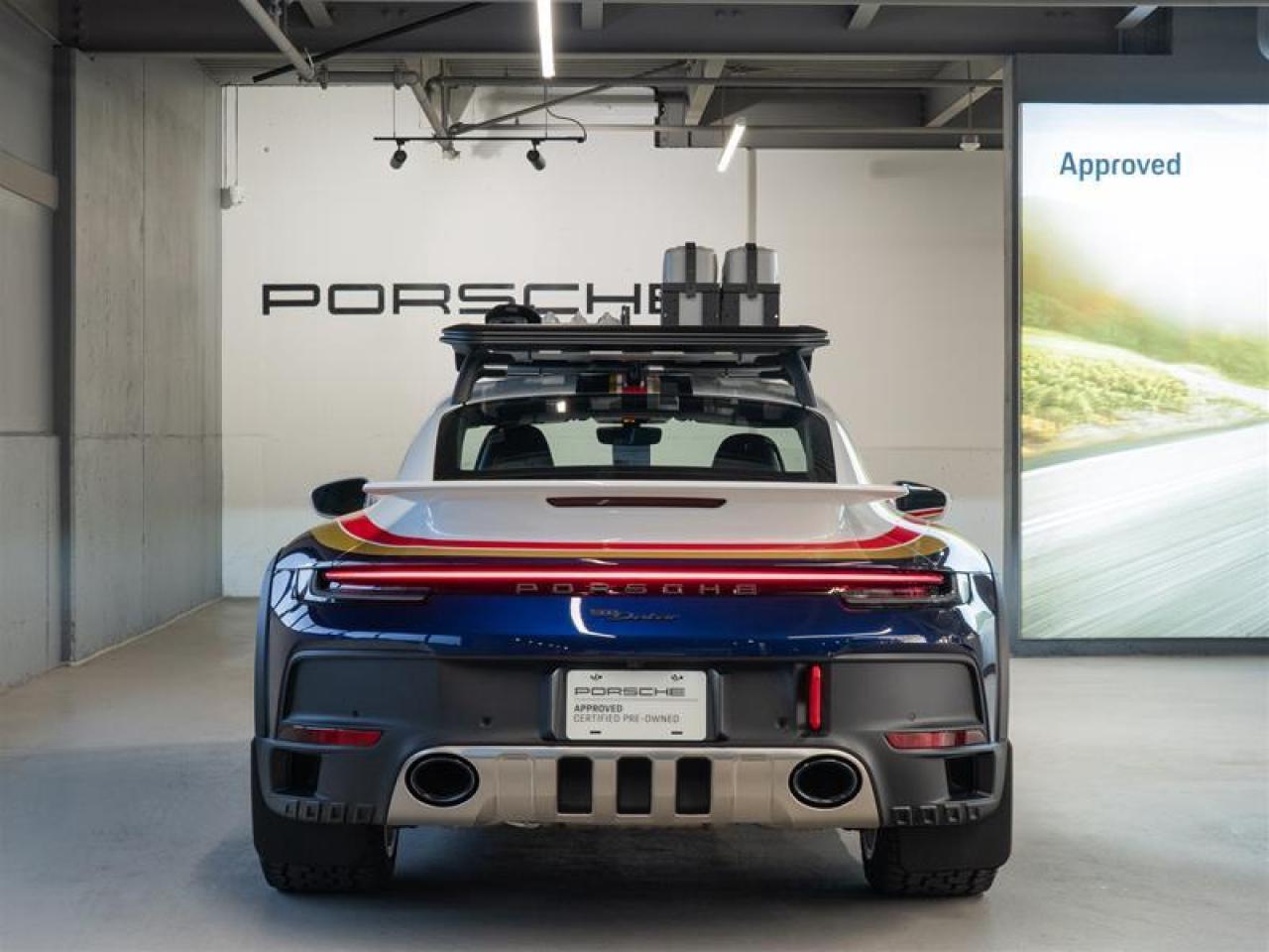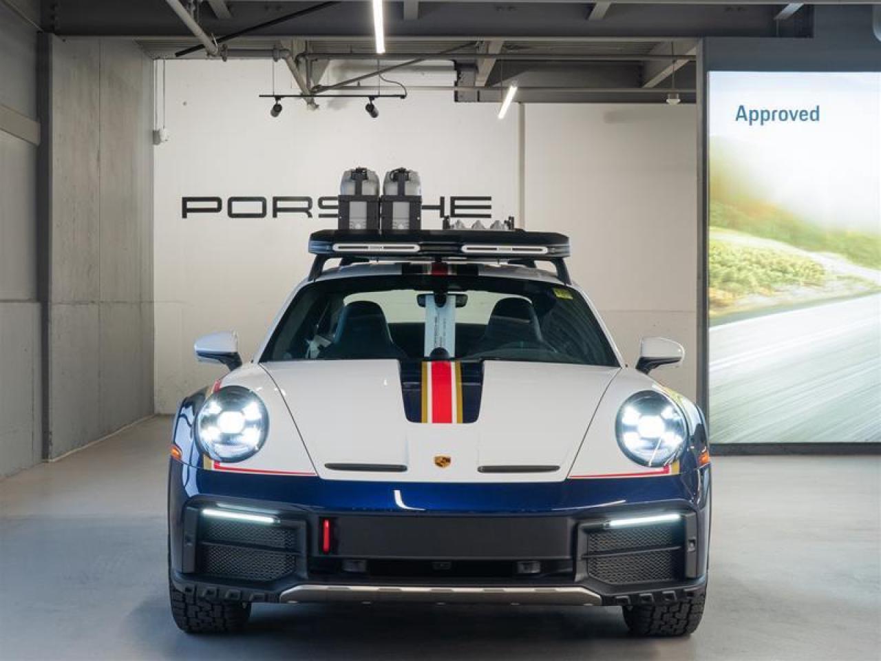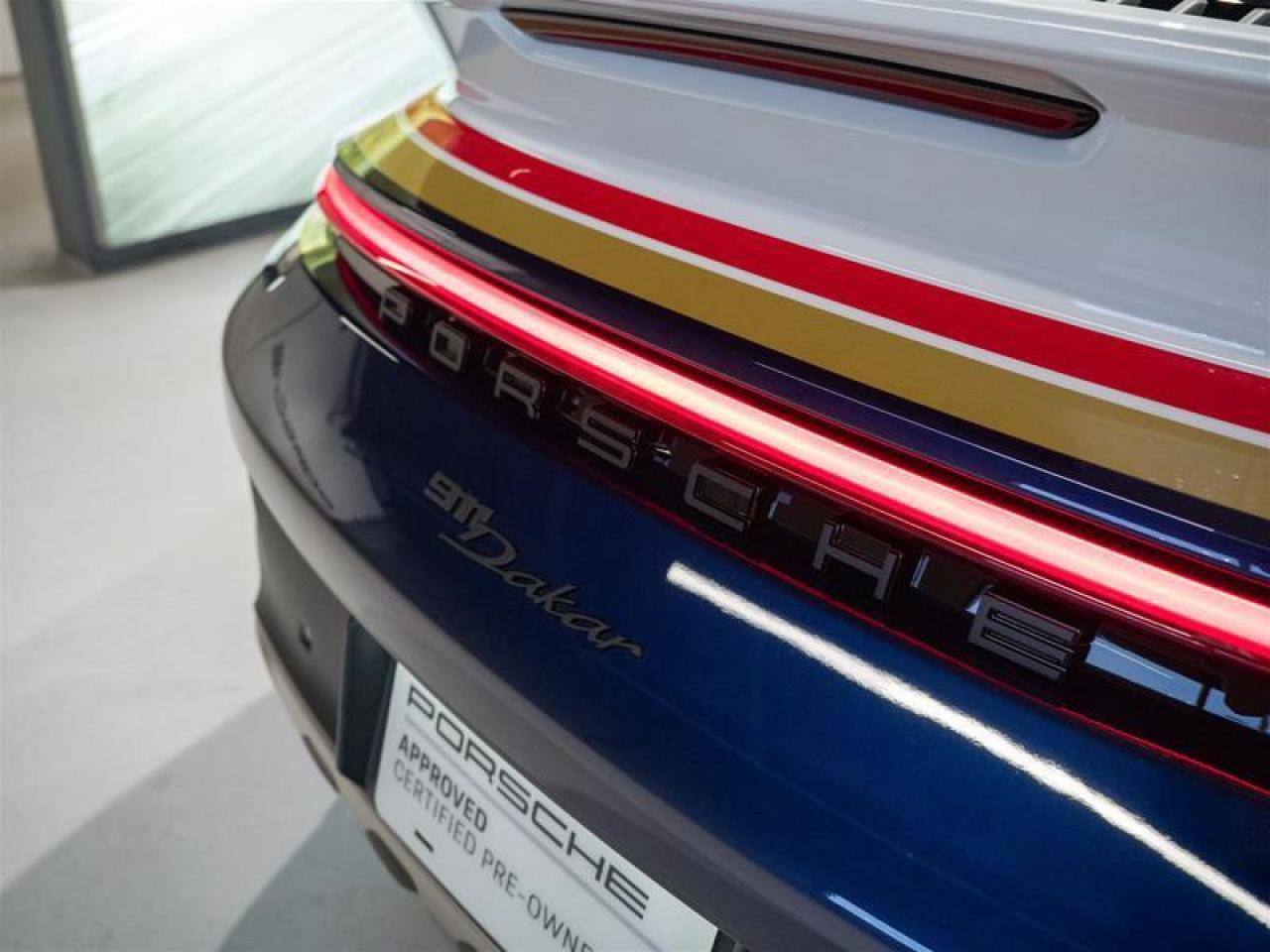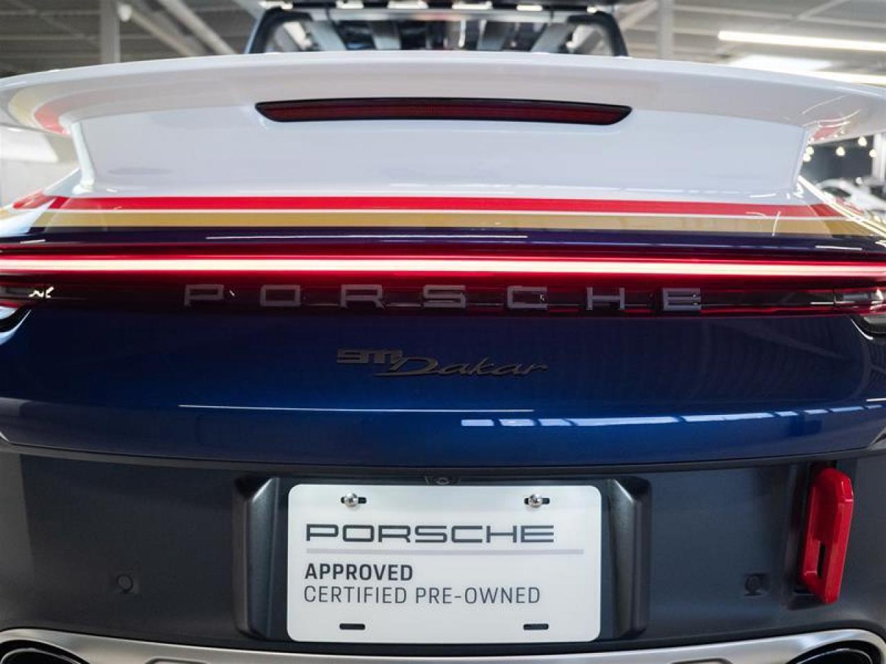 ***Leasing Options Available on Certified Pre-Owned Porsches*** The Porsche that you’ve always wanted. This 911 Dakar (MY24) has a Clean CarFax Report. With Rallye Design Package Interior with Stitching in Shark Blue, White/Gentian Blue Metallic, Rallye Design Package in White/Gentian Blue ($32,490), Personal Start Number, Adaptive Sport Seats Plus (18-way) with Memory Package, Heated Seats (Front), Burmester® High-End Surround Sound System ($4,540), Production Steering Code for Rallye Design Package, Limited Edition Number, Surround View ($1,640), Smoking Package, Full Clearshield, Ceramic Coated, Roof Rails - 99204401260, Outdoor Duffle - WAP0350060PACD, Fastening Pins - 99204401284, Recovery boards - 99204401285, Spade Holder - 99204401282, Folding Spade - 99204401288, Canister Holder x2 - 99204401283, and Water Canister x2 - 99204401286, this is the car for you! Look for the Porsche Approved seal when buying a pre-owned Porsche. Porsche Approved Pre-Owned Cars are inspected in compliance with our 111-point checklist and any work required is performed using only 100% Porsche Genuine Parts. As proof of the trust that we have in the quality of our vehicles, every certified pre-owned car comes with a minimum of 24 months Porsche Approved Warranty and Porsche Roadside Assistance. The Porsche Approved Warranty covers all components of your Porsche and offers the same level of security as our new car warranty. Luxury Tax is not charged on Certified Pre-Owned vehicles. Call us at 613-749-4275 and ask to speak to one of our Porsche Brand Executives. Serving the Ottawa & Gatineau region. *** Options de location disponibles pour les Porsche d'occasion certifiées *** La Porsche de vos rêves. Cette voiture 911 Dakar (MY24) a un bon rapport d’historique de véhicule de CarFax. Grâce à Rallye Design Package Interior with Stitching in Shark Blue, White/Gentian Blue Metallic, Rallye Design Package in White/Gentian Blue ($32,490), Personal Start Number, Adaptive Sport Seats Plus (18-way) with Memory Package, Heated Seats (Front), Burmester® High-End Surround Sound System ($4,540), Production Steering Code for Rallye Design Package, Limited Edition Number, Surround View ($1,640), Smoking Package, Full Clearshield, Ceramic Coated, Roof Rails - 99204401260, Outdoor Duffle - WAP0350060PACD, Fastening Pins - 99204401284, Recovery boards - 99204401285, Spade Holder - 99204401282, Folding Spade - 99204401288, Canister Holder x2 - 99204401283, and Water Canister x2 - 99204401286, cette voiture est parfaite pour vous! Trouvez le sceau d’approbation de Porsche lorsque vous achetez une Porsche d’occasion. Les voitures d’occasion approuvées par Porsche sont inspectées conformément à notre liste de vérification de 111 points. Tout travail requis est effectué en utilisant uniquement des pièces d’origine Porsche. Comme preuve de la confiance que nous avons dans la qualité de nos véhicules, chaque voiture d’occasion certifiée fait l’objet d’une garantie d’au moins 24 mois approuvée par Porsche et de l’assistance routière Porsche. La garantie approuvée par Porsche couvre tous les composants de votre Porsche et offre le même niveau de sécurité que notre garantie pour les véhicules neufs. La taxe de luxe n’est pas appliquée aux véhicules d’occasion certifiés. Appelez-nous au 613-749-4275 pour parler à l’un de nos directeurs de marque Porsche. Au service de la région d’Ottawa et du Gatineau.