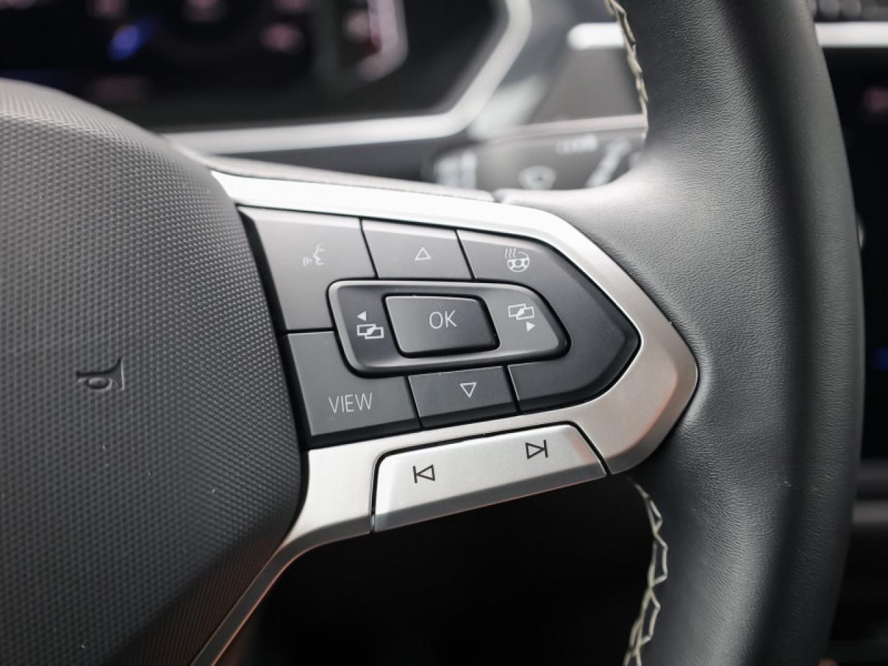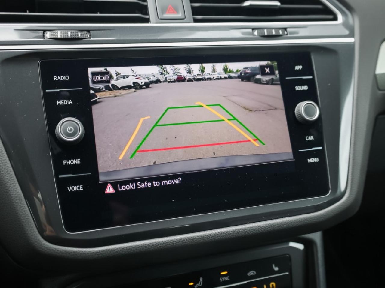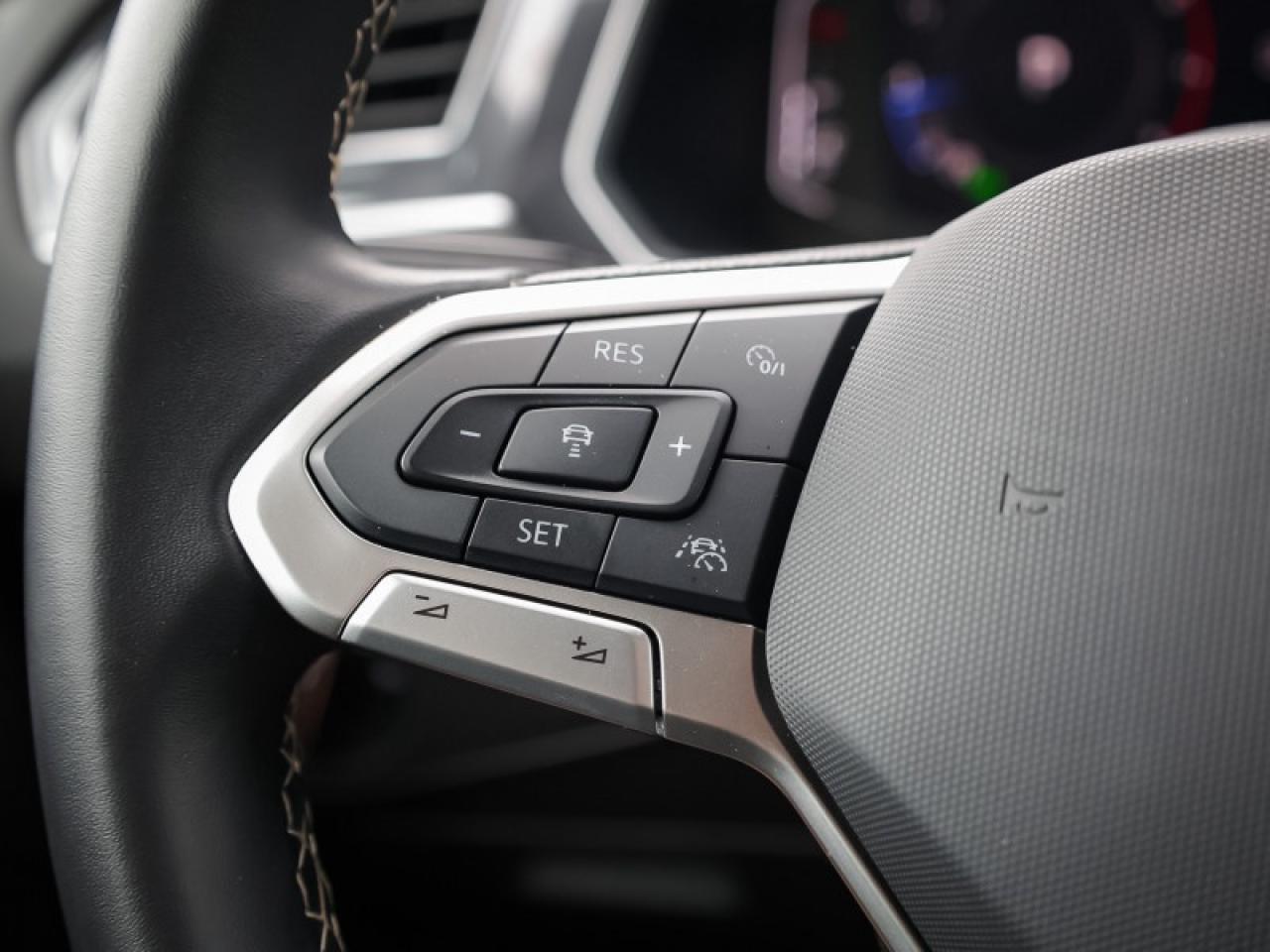 Our Tiguan's trim level is Comfortline. Stepping up to this Tiguan Comfortline rewards you with a power liftgate, mobile device wireless charging, adaptive cruise control, supportive heated synthetic leather-trimmed front seats, a heated leatherette-wrapped steering wheel, LED headlights with daytime running lights, and an upgraded 8-inch infotainment screen with SiriusXM satellite radio, Apple CarPlay, Android Auto, and a 6-speaker audio system. Additional features include front and rear cupholders, remote keyless entry with power cargo access, lane keep assist, lane departure warning, blind spot detection, front and rear collision mitigation, autonomous emergency braking, three 12-volt DC power outlets, remote start, a rear camera, and so much more.