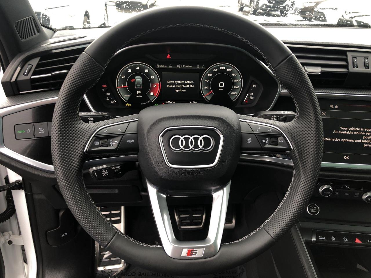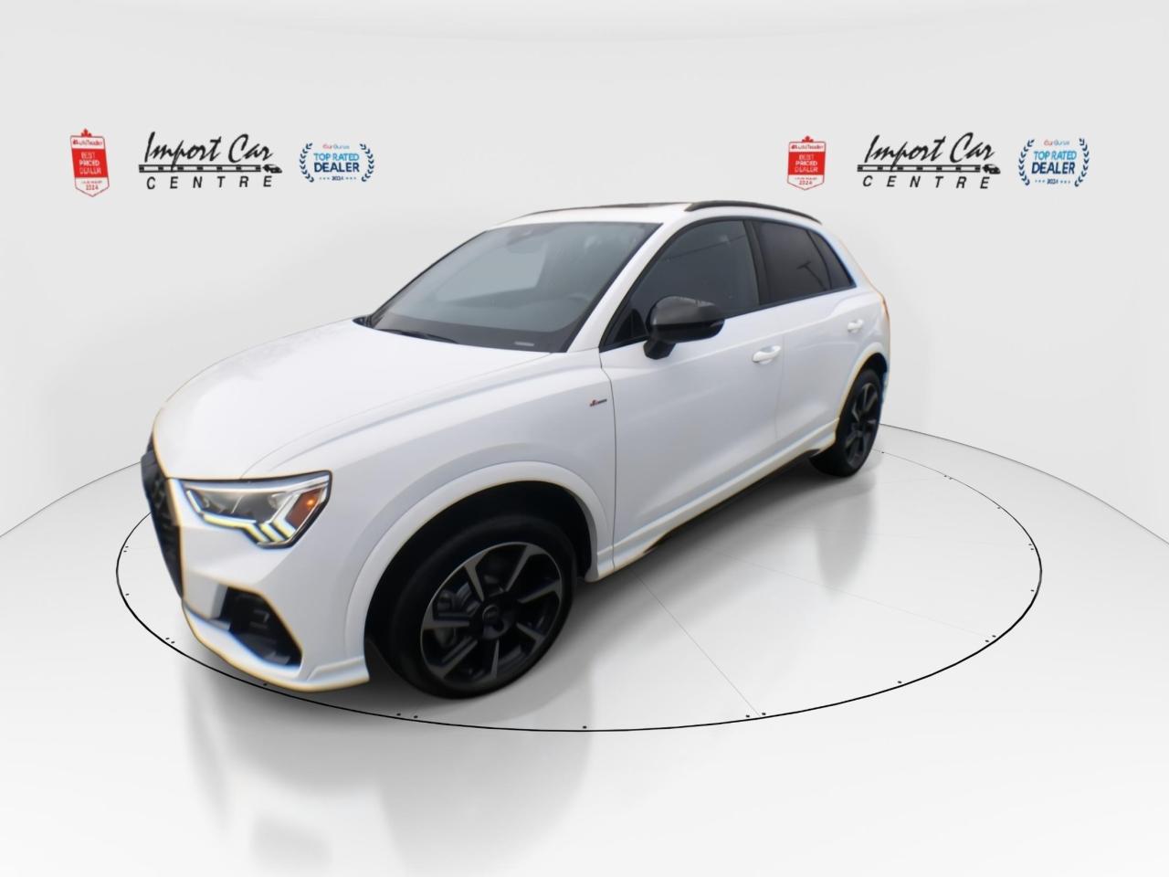 *** 2024 AUTOTRADER BEST PRICED DEALER AWARD 2024 * CARGURUS TOP RATED DEALER 2024 * SINGLE OWNER * NO ACCIDENTS * SMETANA APPROVED *** The Audi Q3 continues to be one of the most sought after and desirable suvs for a plethora of reasons...fun to drive, versatile, incredible Quattro handling, loaded with equipment and safety features!! Finished in White Glacier Metallic with gorgeous black leather seating surfaces, Audi advanced key, 360 camera, backup camera, 19 Audi Sport alloys, panoramic sunroof, privacy glass, power folding mirrors, Sonos sound system, 2 stage seat memory driver's seat, Audi virtual cockpit, heated seats, heated steering wheel, leather wrapped steering wheel, navigation, kick access power tailgate, thigh extensions, Audi Drive Select, traction control, start/stop technology, qi-wireless charging, park distance control, hill decent, rear cross traffic, speed warning, traffic light information, traffic sign speed warning, lane departure warning, Audi Pre-Sense, Audi Side Assist, adaptive cruise control, rain sensing wipers, only 5,257kms compliment this truly like new 2025 Audi Q3 Technik Black Optics package. Perfection and beyond!! Home of the Platinum up to 240,000kms warranty and financing is always available O.A.C Import Car Centre, proudly serving the Ottawa and surrounding area for over 42 years. Come down and experience Import Car Centre for yourself and see just why our customers are so happy!