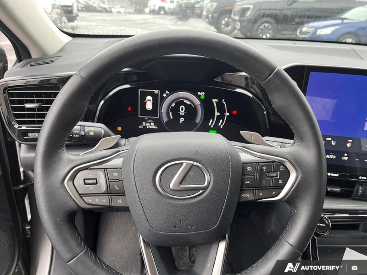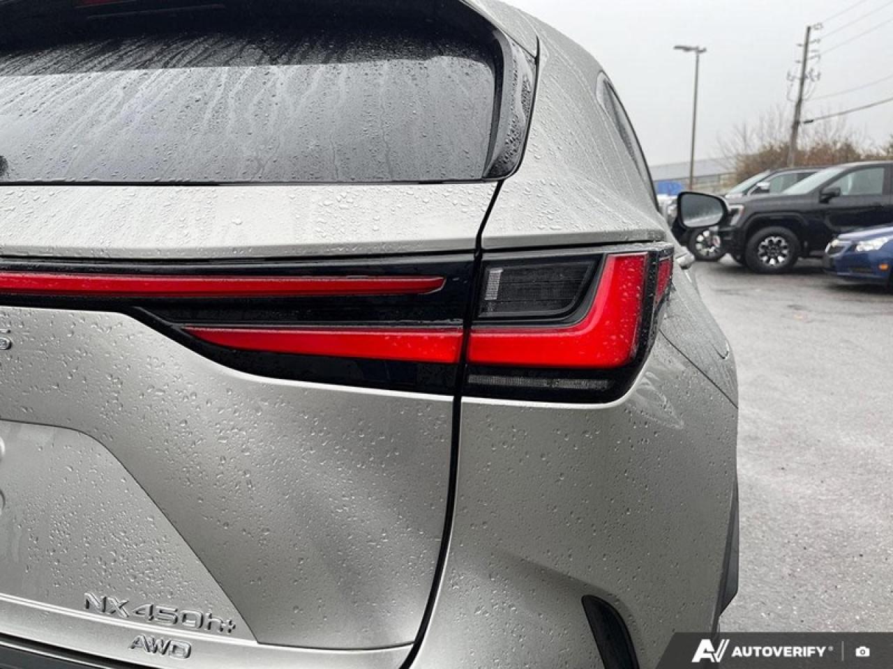 JUST IN - LIKE NEW 2025 NX 450H+- ATOMIC SILVER ON BLACK LEATHER, 60 KM EV RANGE, 304 HP, COMBINED FUEL ECONOMY OF 6.5 LITRES / 100 KM!!! APPLE CARPLAY, REMOTE START, POWER LIFTGATE, HEATED STEERING WHEEL, POWER MEMMORY SEAT, ADAPTIVE CRUISE, THE WORKS- CERTIFIED, NO ADMIN FEES, CLEAN CARFAX. ALMOST 80K NEW! NON SMOKER, ONE OWNER.