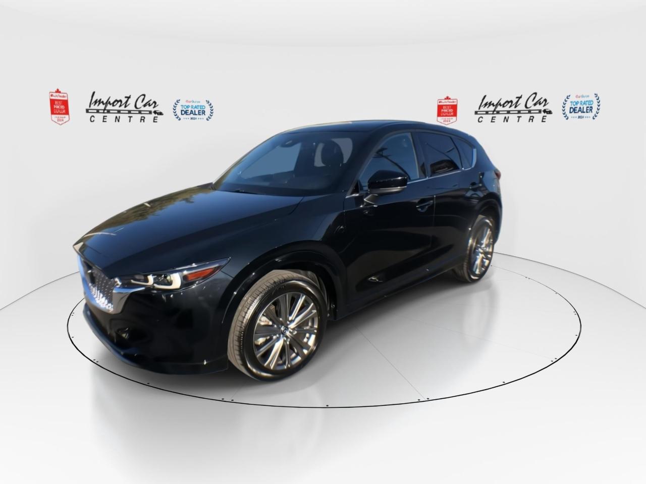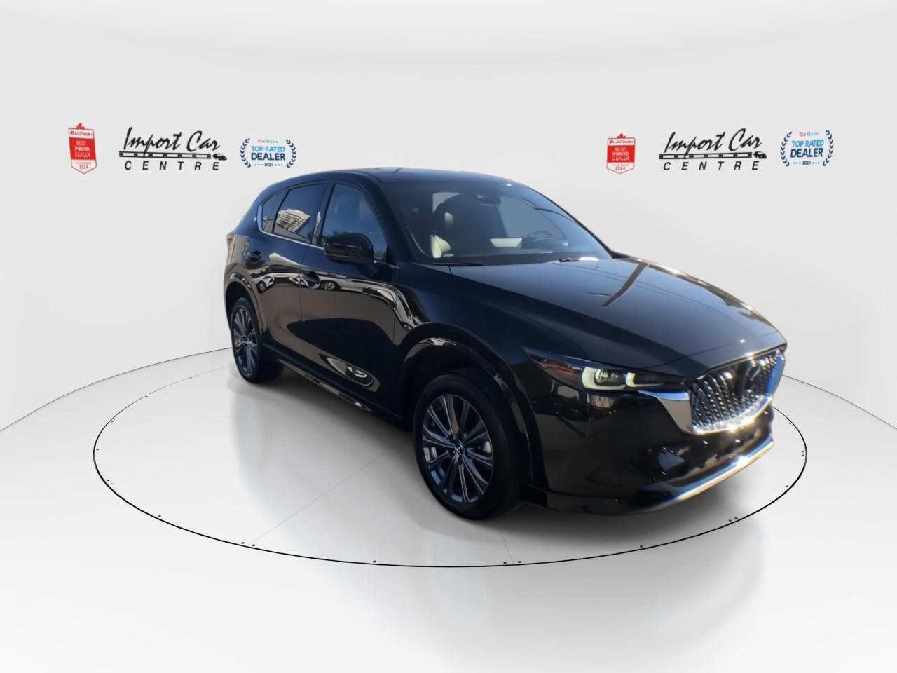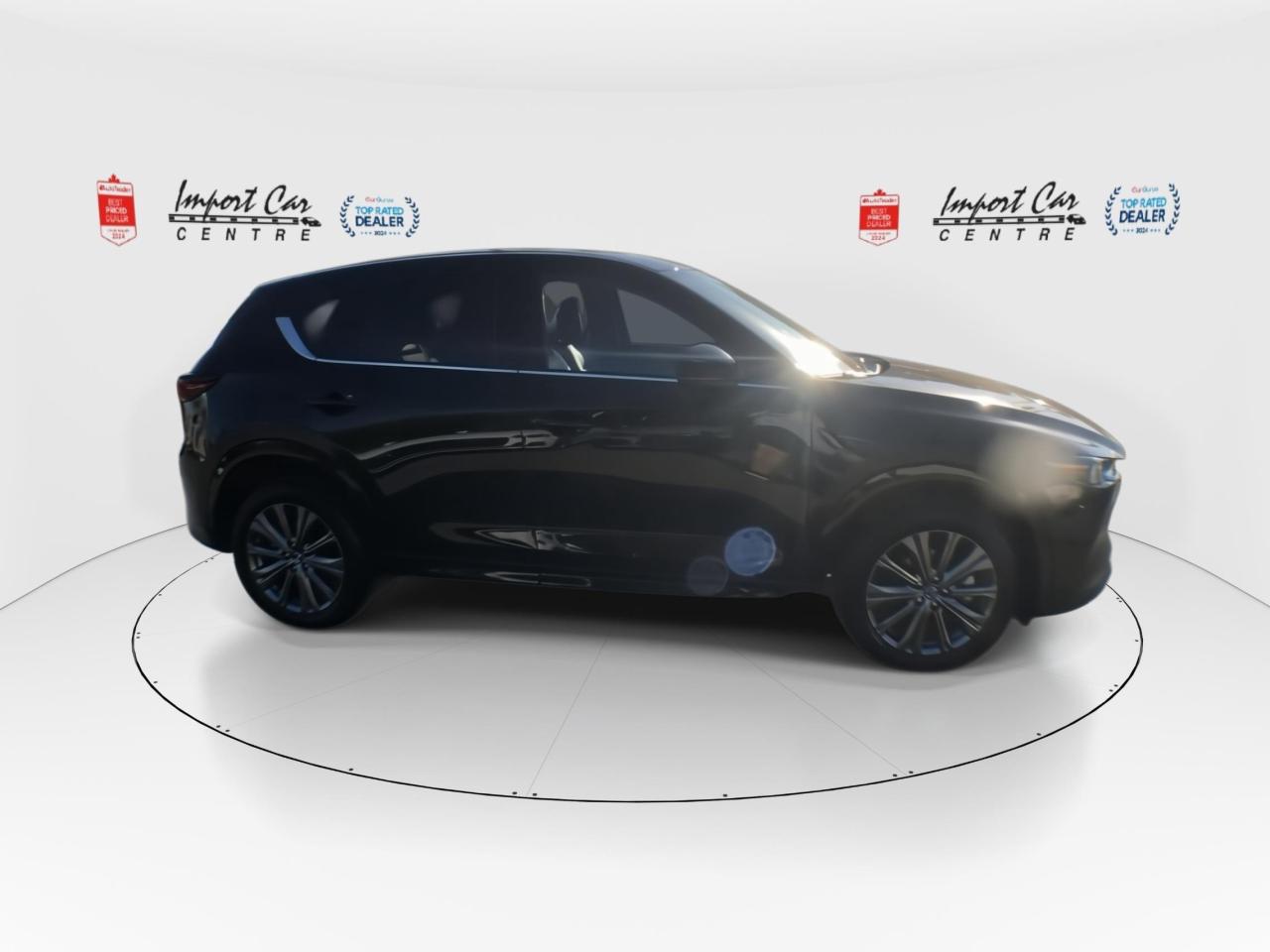 *** 2024 AUTOTRADER BEST PRICED DEALER AWARD 2024 * CARGURUS TOP RATED DEALER 2024 * NO ACCIDENTS * SMETANA APPROVED *** Zoom Zoom!! Mazda's represent fantastic value for your hard earned dollar...loaded with a plethora of equipment and safety features, fun to drive and won't break the bank!! Finished in Jet Black Mica with gorgeous matching black Nappa leather seating surfaces with grey stitching accents, incredible all wheel drive handling, up to 256 horses under the hood, paddle shifters, 360 view monitor, front and rear park distance sensors, driver attention alert, cruise and traffic support, Abachi wood trim interior, Homelink wireless control system, 19 alloys, heads up display, traffic sign recognition, adaptive headlamps, power folding mirrors, 10 speaker Bose sound system, SiriusXM radio, navigation, heated and ventilated front seats, heated rear seats, 2 stage driver's seat memory, power tailgate, windshield wiper deicer, leather wrapped steering wheel, moonroof, advanced keyless entry, wireless Apple Car Play and Android Auto, blind spot monitoring, rear cross traffic alert, Mazda radar cruise control, pedestrian detection, lane keep assist, distance support recognition system, lane departure warning, smart brake support front, high beam control system, dynamic stability control, traction control, hill launch assist system, LED headlamps, only 11,180kms all compliment this like new 2025 Mazda CX-5 AWD Signature. Perfection and beyond!! Home of the Platinum up to 240,000kms warranty and financing is always available O.A.C Import Car Centre, proudly serving the Ottawa and surrounding area for over 42 years. Come down and experience Import Car Centre for yourself and see just why our customers are so happy!