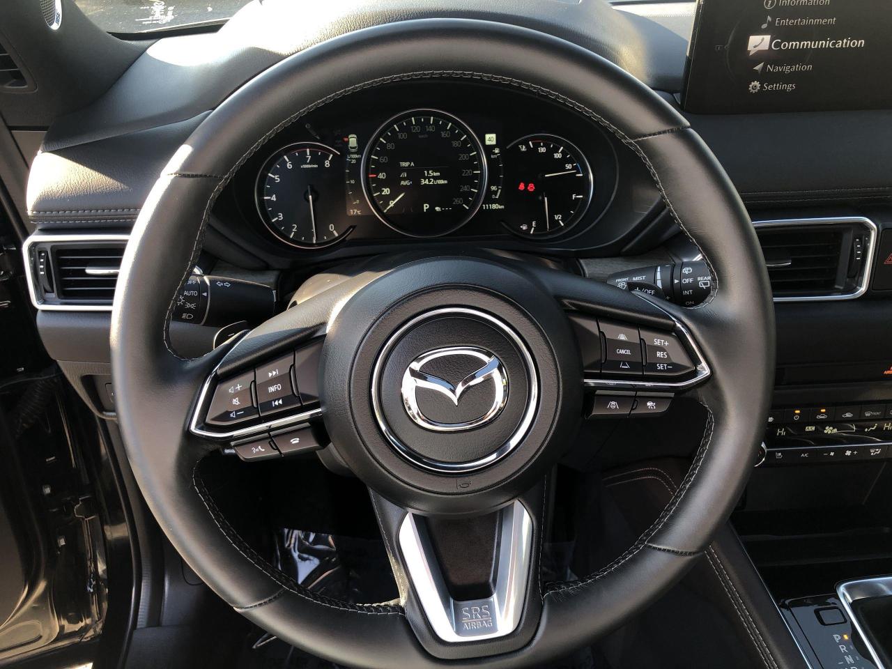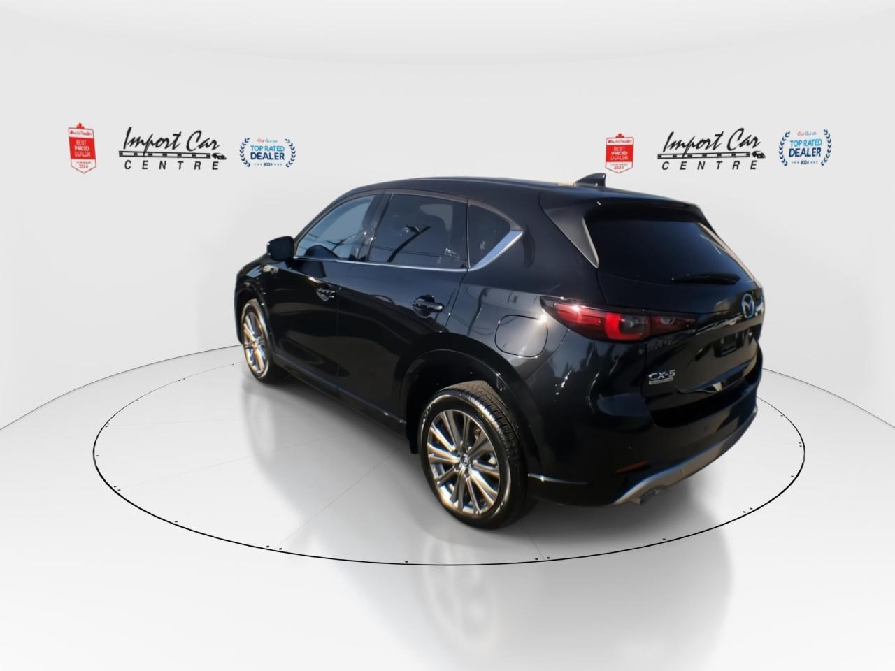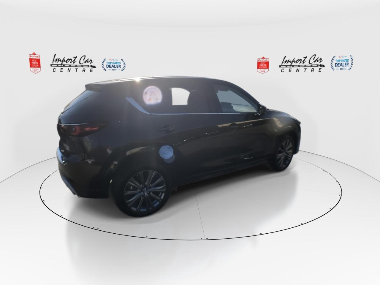 *** 2024 AUTOTRADER BEST PRICED DEALER AWARD 2024 * CARGURUS TOP RATED DEALER 2024 * NO ACCIDENTS * SMETANA APPROVED *** Zoom Zoom!! Mazda's represent fantastic value for your hard earned dollar...loaded with a plethora of equipment and safety features, fun to drive and won't break the bank!! Finished in Jet Black Mica with gorgeous matching black Nappa leather seating surfaces with grey stitching accents, incredible all wheel drive handling, up to 256 horses under the hood, paddle shifters, 360 view monitor, front and rear park distance sensors, driver attention alert, cruise and traffic support, Abachi wood trim interior, Homelink wireless control system, 19 alloys, heads up display, traffic sign recognition, adaptive headlamps, power folding mirrors, 10 speaker Bose sound system, SiriusXM radio, navigation, heated and ventilated front seats, heated rear seats, 2 stage driver's seat memory, power tailgate, windshield wiper deicer, leather wrapped steering wheel, moonroof, advanced keyless entry, wireless Apple Car Play and Android Auto, blind spot monitoring, rear cross traffic alert, Mazda radar cruise control, pedestrian detection, lane keep assist, distance support recognition system, lane departure warning, smart brake support front, high beam control system, dynamic stability control, traction control, hill launch assist system, LED headlamps, only 11,180kms all compliment this like new 2025 Mazda CX-5 AWD Signature. Perfection and beyond!! Home of the Platinum up to 240,000kms warranty and financing is always available O.A.C Import Car Centre, proudly serving the Ottawa and surrounding area for over 42 years. Come down and experience Import Car Centre for yourself and see just why our customers are so happy!
