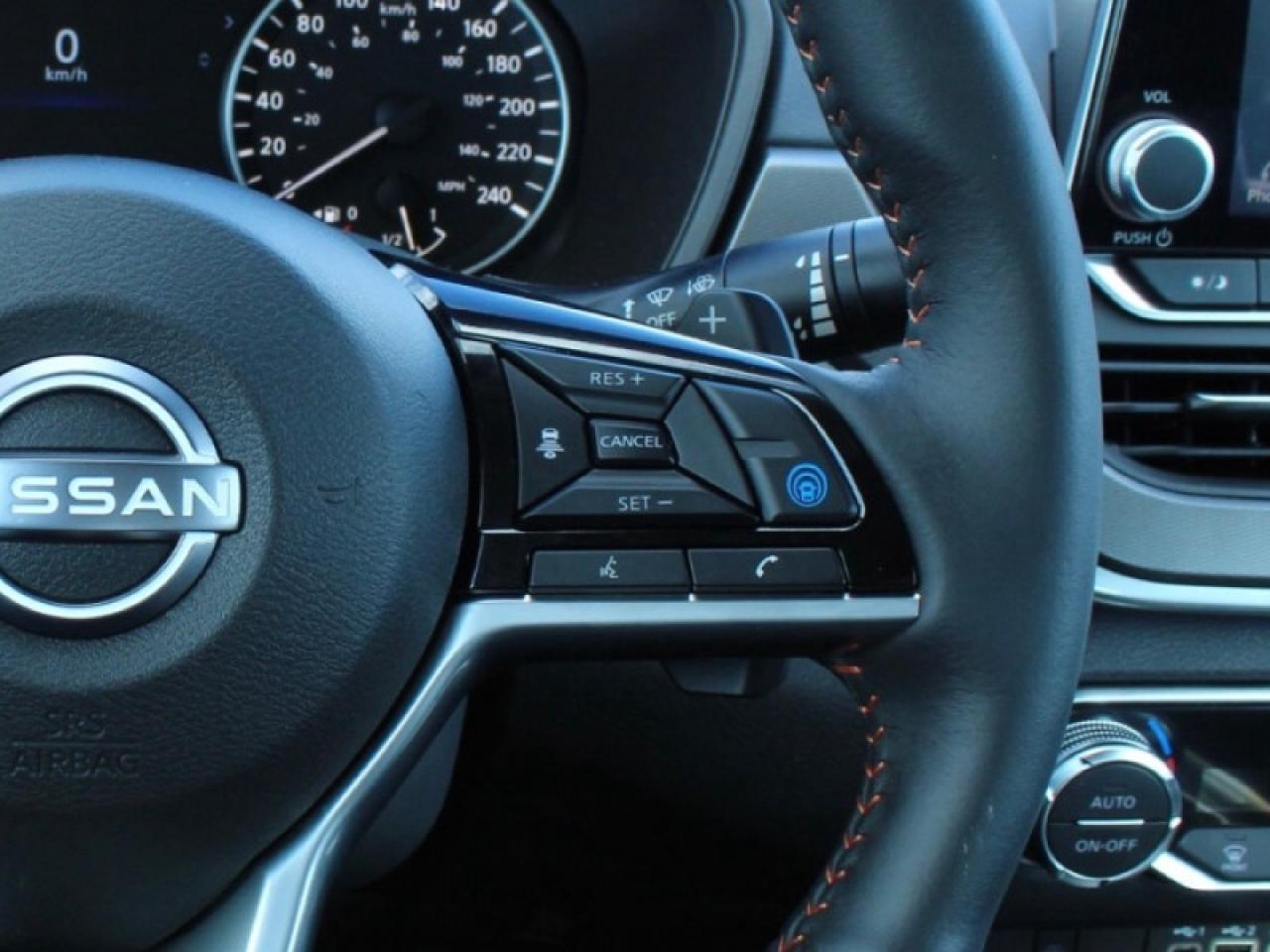 Our Altima's trim level is SR. This Altima SR comes with a moonroof, remote start with intelligent climate control, a heated steering wheel, navigation, dual zone temperature control, fog lights, and paddle shifters. With heated seats for comfort and the Nissan Intelligent key for convenience this Altima offers an elevated experience for everyone. An advanced safety suite including brake assist, collision warning, emergency braking, lane departure warning, blind spot warning, rearview camera, and rear parking sensors helps inspire confidence on every drive. Touchscreen infotainment with Apple CarPlay, Android Auto, and a texting assistant provides technology that knows what you like. This vehicle has been upgraded with the following features: Sunroof, Aluminum Wheels, Navigation, Climate Control, Heated Seats, Apple Carplay, Android Auto. This is a demonstrator vehicle driven by a member of our staff and has just 2861 kms.