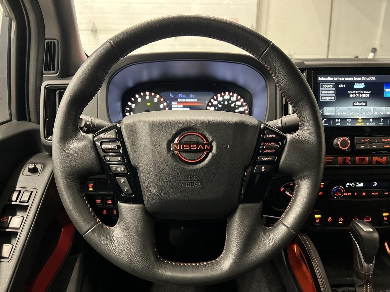 PRO-4X IN STUNNING AFTERBURN ORANGE!! 4X4 Crew Cab w/ Sunroof, heated seats & steering, Android Auto/ Apple CarPlay, 360 camera w/ rear park sensors, remote start, 17-inch alloys, adaptive cruise control, blind spot monitor, rear cross-traffic alert, pre-collision system, lane departure warning, tow package, 5-foot box w/ spray-bedliner, tonneau cover, running boards, wireless charger, dual-zone climate control, keyless entry w/ push start, full power group incl. power seat, automatic headlights, Bluetooth and Sirius XM!!