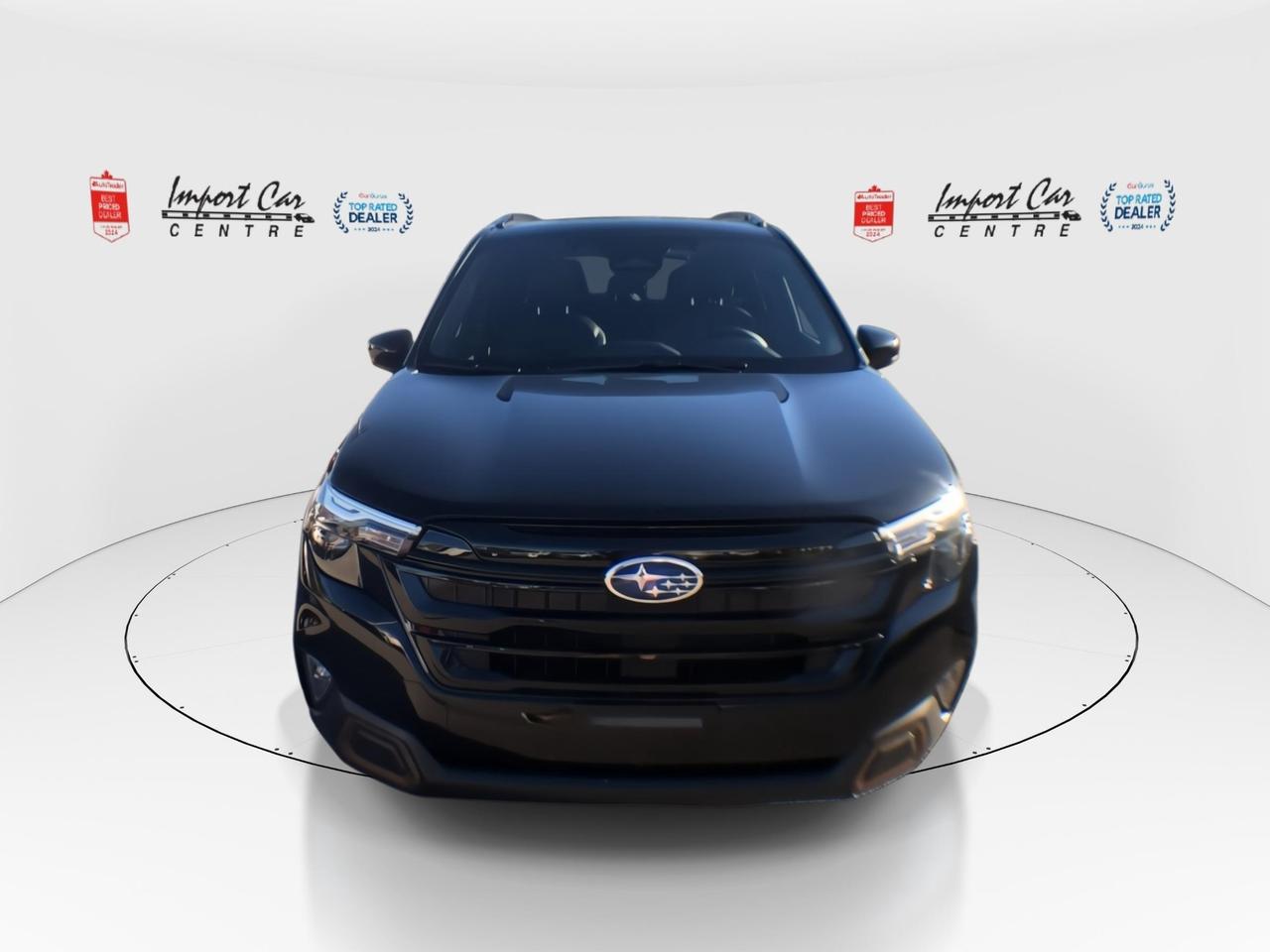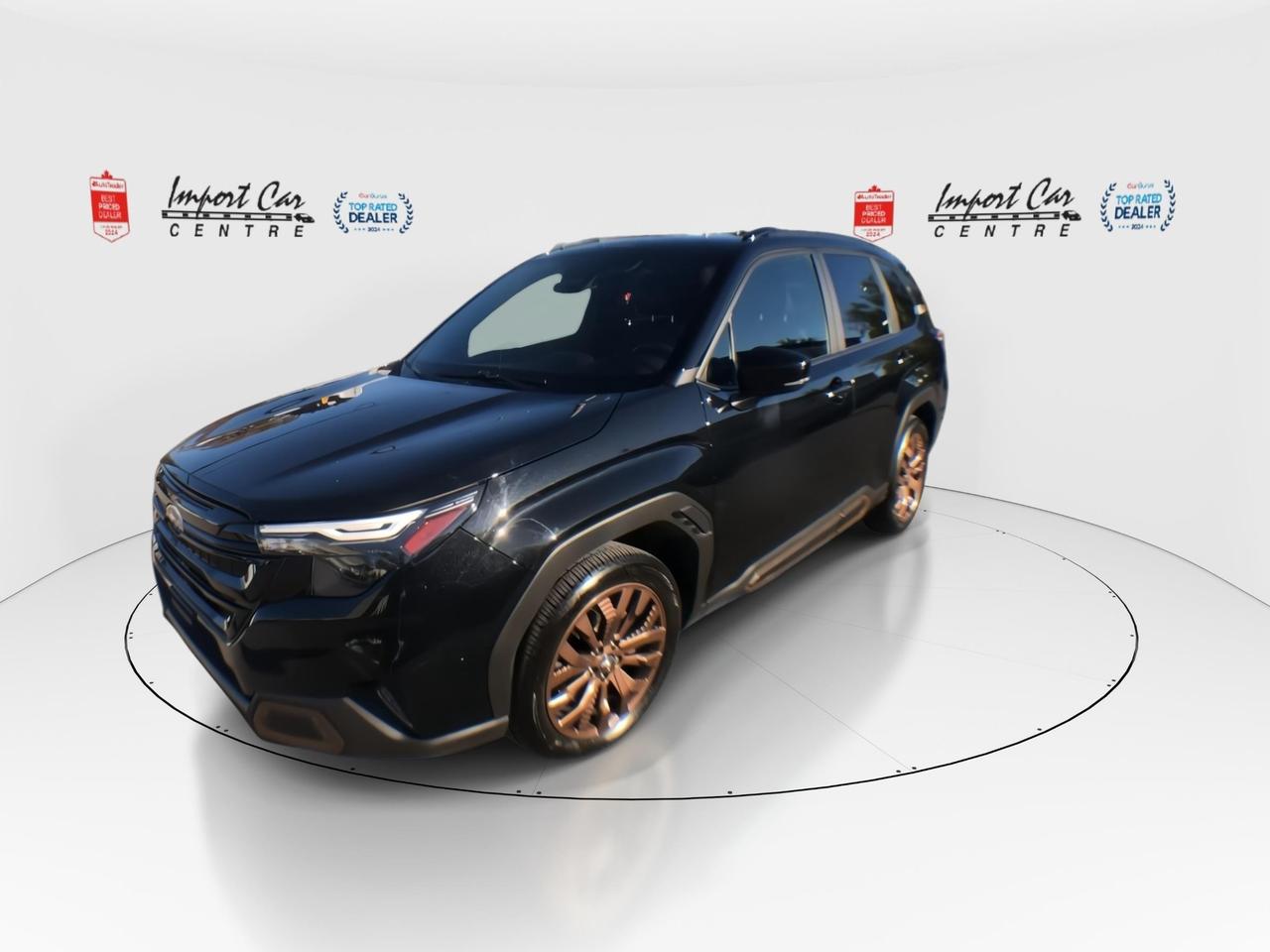 *** 2024 AUTOTRADER BEST PRICED DEALER AWARD 2024 * CARGURUS TOP RATED DEALER 2024 * SINGLE OWNER * NO ACCIDENTS * SMETANA APPROVED *** In stock and ready for delivery!! Winter is here and with the Subaru symmetrical all wheel drive found in this Forester Sport will get you though just about anything thrown your way!! Finished in Crystal Black Silica with complimenting grey sport soft touch all weather seating surfaces, dual function X-Mode, SI-Drive with Sport sharp mode, 19 alloy wheel, 11 speaker Harmon Kardon sound system, low profile roof rails, bronze exterior accents, bronze stitching and interior accents, suspension tuning with Stablex dampers, sport gauges, windshield wiper deicer, heated steering wheel, 10 way power driver's seat with lumbar, dual zone climate control, proximity key with push start button, reverse automatic braking, power tailgate, panoramic sunroof, Apple Car Play, Android Auto, backup camera, LED steering responsive headlamps, high beam assist, EyeSight Driver's Assist Technology, LED fog lights, Subaru side/rear vehicle detection with blind spot detection, rear cross traffic alert all compliment this like new 2025 Subaru Forester Sport. Perfection and beyond!! Home of the Platinum up to 240,000kms warranty and financing is always available O.A.C Import Car Centre, proudly serving the Ottawa and surrounding area for over 45 years. Come down and experience Import Car Centre for yourself and see just why our customers are so happy! Advertised price includes $22 OMVIC fee and $40 Carproof. Excludes taxes and licensing.<