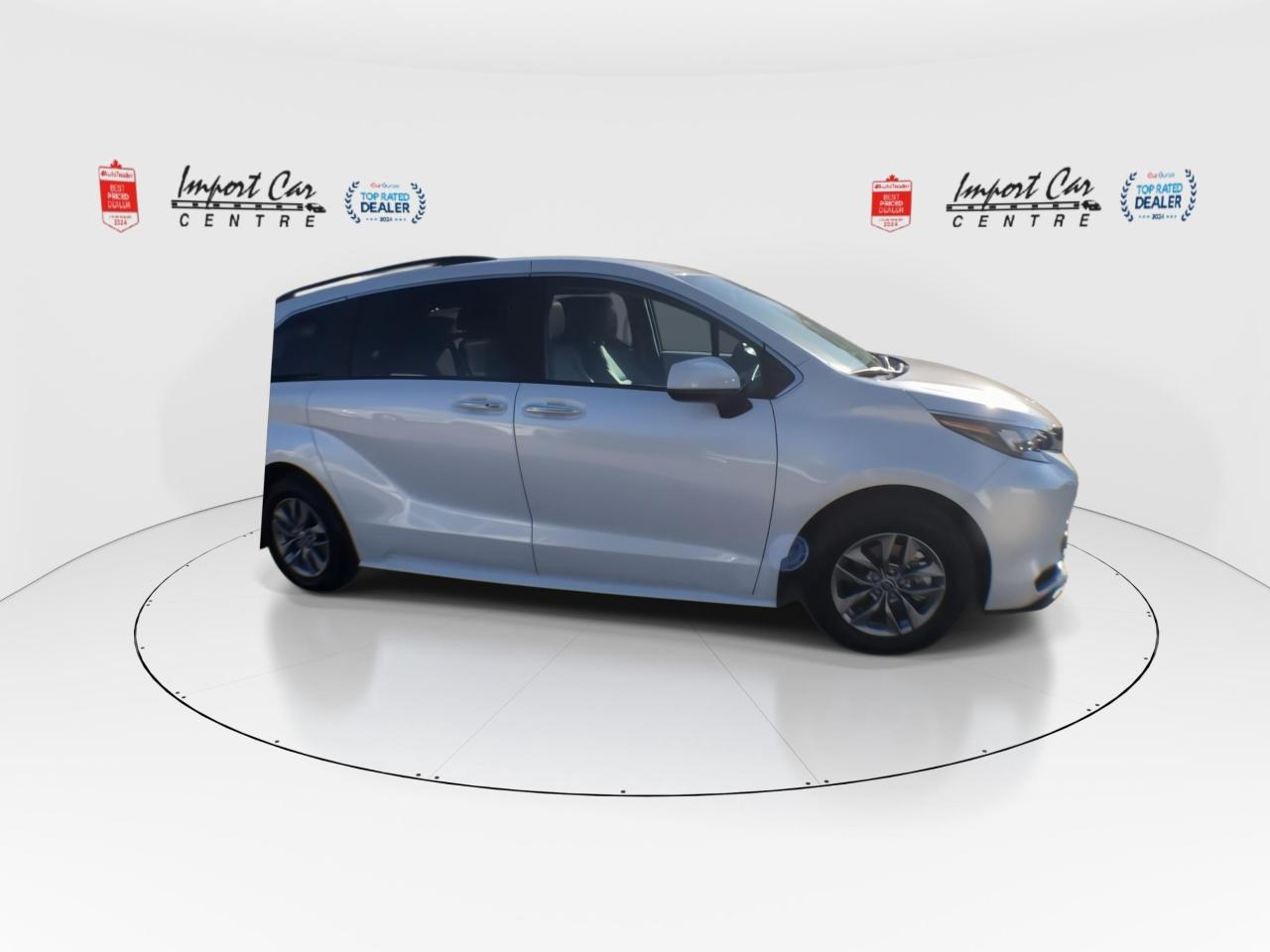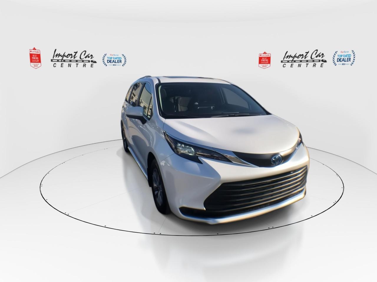 *** 2024 AUTOTRADER BEST PRICED DEALER AWARD 2024 * CARGURUS TOP RATED DEALER 2024 * NO ACCIDENTS * SMETANA APPROVED *** In stock and no waiting!! One of he most sought after family haulers found on the roadways...loaded with equipment, room for 8 passengers and you will be lowering your carbon footprint!! Finished in Celestial Silver Metallic with matching grey Softex seating surfaces, Toyota Safety Sense 2.0, full range dynamic radar cruise control, lane tracing assist, pre-collision braking system with pedestrian and bicycle detection, auto high beam, lane departure alert with steering assist and road edge detection, blind spot monitor with rear cross traffic alert, backup camera, start safety system, smart stop technology, vehicle stability assist, traction control, power rear sliding doors with kick sensors, Apple Car Play, Android Auto, Bluetooth, 7 USB charging ports, SiriusXM radio, Audio Plus, heated front seats, power seats, heated leather wrapped steering wheel, quad zone climate control system, windshield wiper deicer, moonroof, 17 alloys, LED headlamps, Drive Mode Select all compliment this like new 2025 Toyota Sienna XLE 8 passenger hybrid. Perfection and beyond!! Home of the Platinum up to 240,000kms warranty and financing is always available O.A.C Import Car Centre, proudly serving the Ottawa and surrounding area for over 42 years. Come down and experience Import Car Centre for yourself and see just why our customers are so happy!