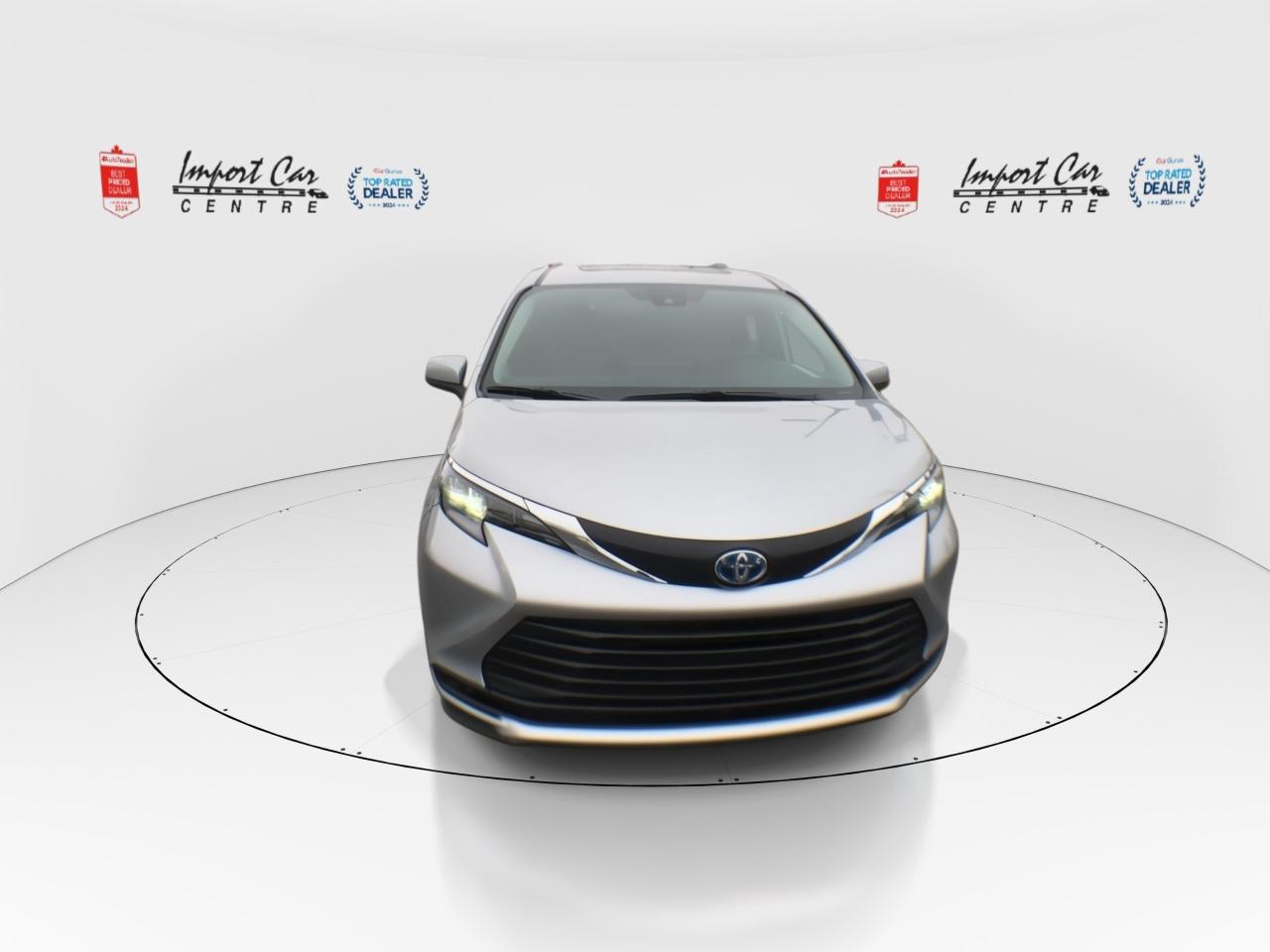 OTTAWA’S ORIGINAL IMPORT DEALER! *** NO ACCIDENTS * SMETANA APPROVED *** In stock and no waiting!! One of he most sought after family haulers found on the roadways...loaded with equipment, room for 8 passengers and you will be lowering your carbon footprint!! Finished in Celestial Silver Metallic with matching grey Softex seating surfaces, Toyota Safety Sense 2.0, full range dynamic radar cruise control, lane tracing assist, pre-collision braking system with pedestrian and bicycle detection, auto high beam, lane departure alert with steering assist and road edge detection, blind spot monitor with rear cross traffic alert, backup camera, start safety system, smart stop technology, vehicle stability assist, traction control, power rear sliding doors with kick sensors, Apple Car Play, Android Auto, Bluetooth, 7 USB charging ports, SiriusXM radio, Audio Plus, heated front seats, power seats, heated leather wrapped steering wheel, quad zone climate control system, windshield wiper deicer, moonroof, 17 alloys, LED headlamps, Drive Mode Select, only 460kms all compliment this like new 2025 Toyota Sienna XLE 8 passenger hybrid. Perfection and beyond!! Home of the Platinum up to 240,000kms warranty and financing is always available O.A.C Import Car Centre, proudly serving the Ottawa and surrounding area for over 42 years. Come down and experience Import Car Centre for yourself and see just why our customers are so happy!