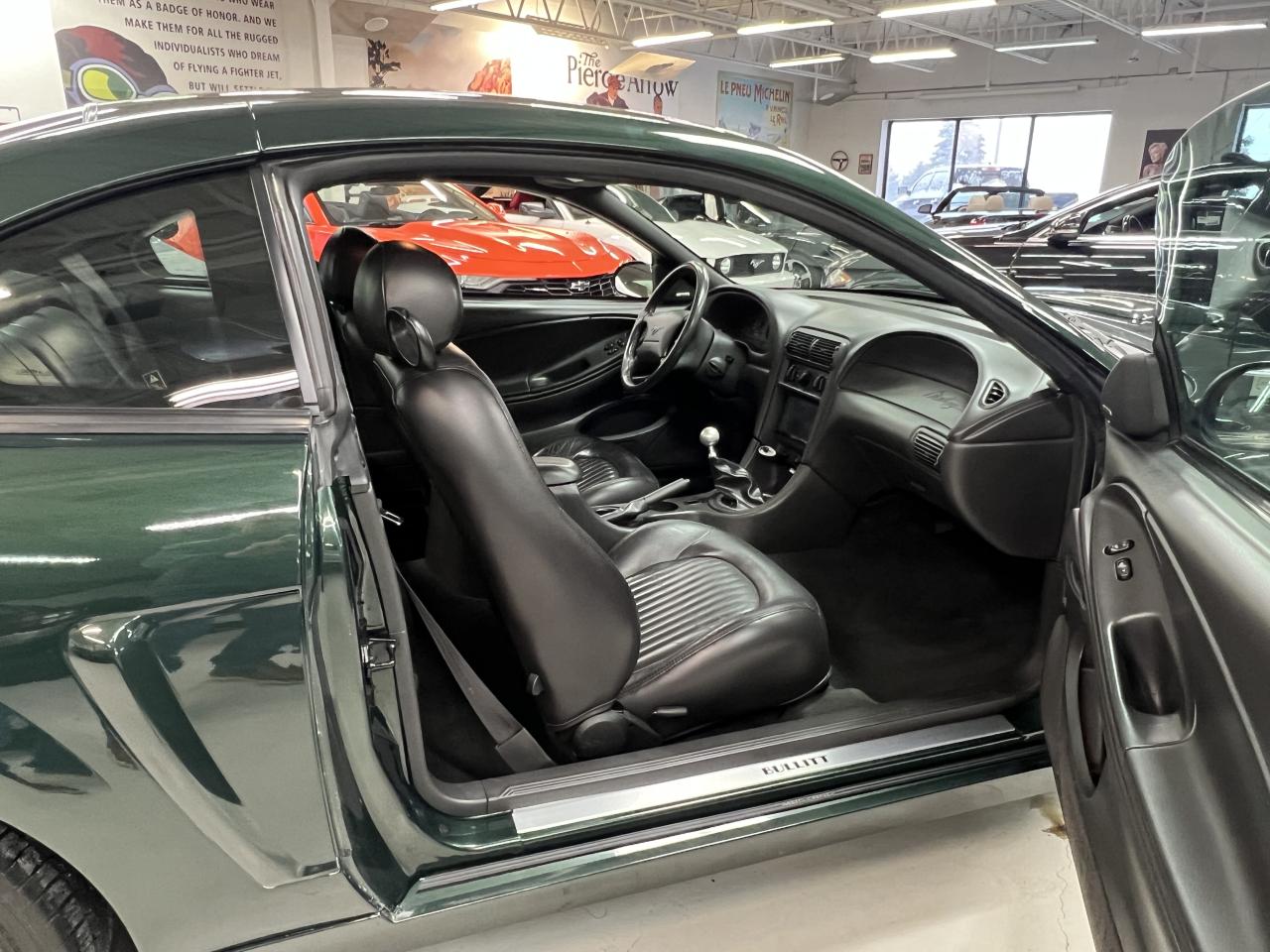 Fourth Generation Mustang that featured unique styling, performance, and collectibility. Ford partnered with Warner Bros to offer a special version of its GT with the Bullitt nameplate, as an homage to the First Generation Mustang driven by Steve McQueen in the 1968 movie Bullitt. The special edition Bullitt cost $3,500 more than a stock GT coupe, and many of the 5,582 produced sold new at or above MSRP ($28,230 USD). The exterior, which was offered in green, black, or blue finish featured a unique hood scoop, rear roof trim, lower rocker moldings, unique rear side windows, as well as a variety of other cosmetic changes. The handling-focused Bullitt featured larger brakes, lowered suspension, and sub-frame connectors. Interior features include aluminum pedals and shifter, gauge facings, leather seat upholstery patterned after the 1968 model. The 4.6L V-8 generated 305hp which powered the rear wheels via a 5 speed manual transmission. This was a one-year only special edition for the Fourth Generation Mustang.